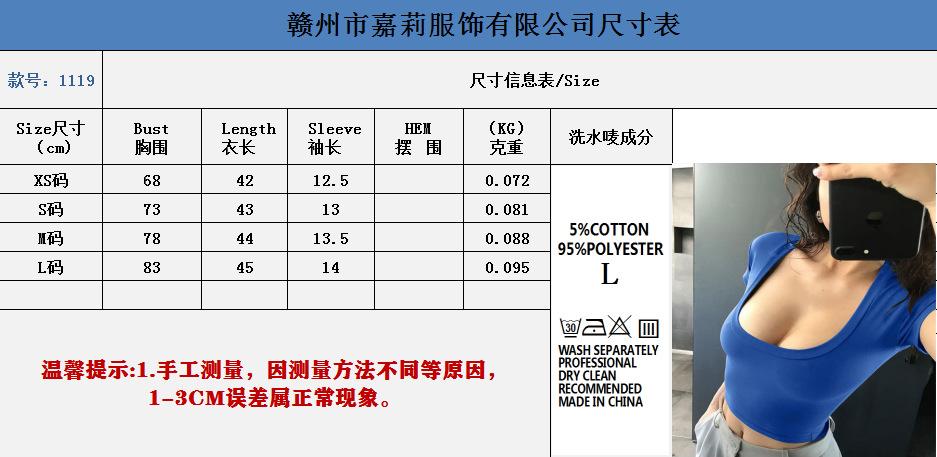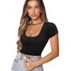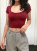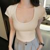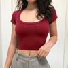 Camiseta de manga corta de verano y otoño para mujer transfronteriza europea y americana, suéter de color sólido con cuello en U, top sexy de chica caliente ajustado al ombligo para mujer