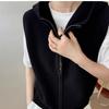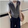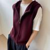 Chaleco de punto de cachemira con capucha y cremallera para mujer, suéter holgado sin mangas estilo coreano, chaleco de lana