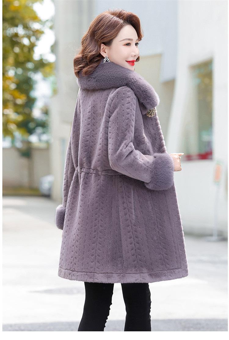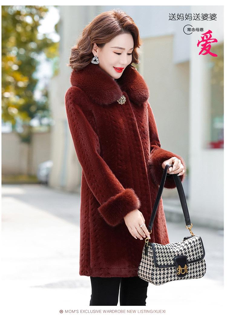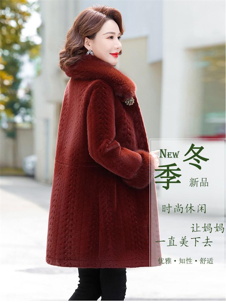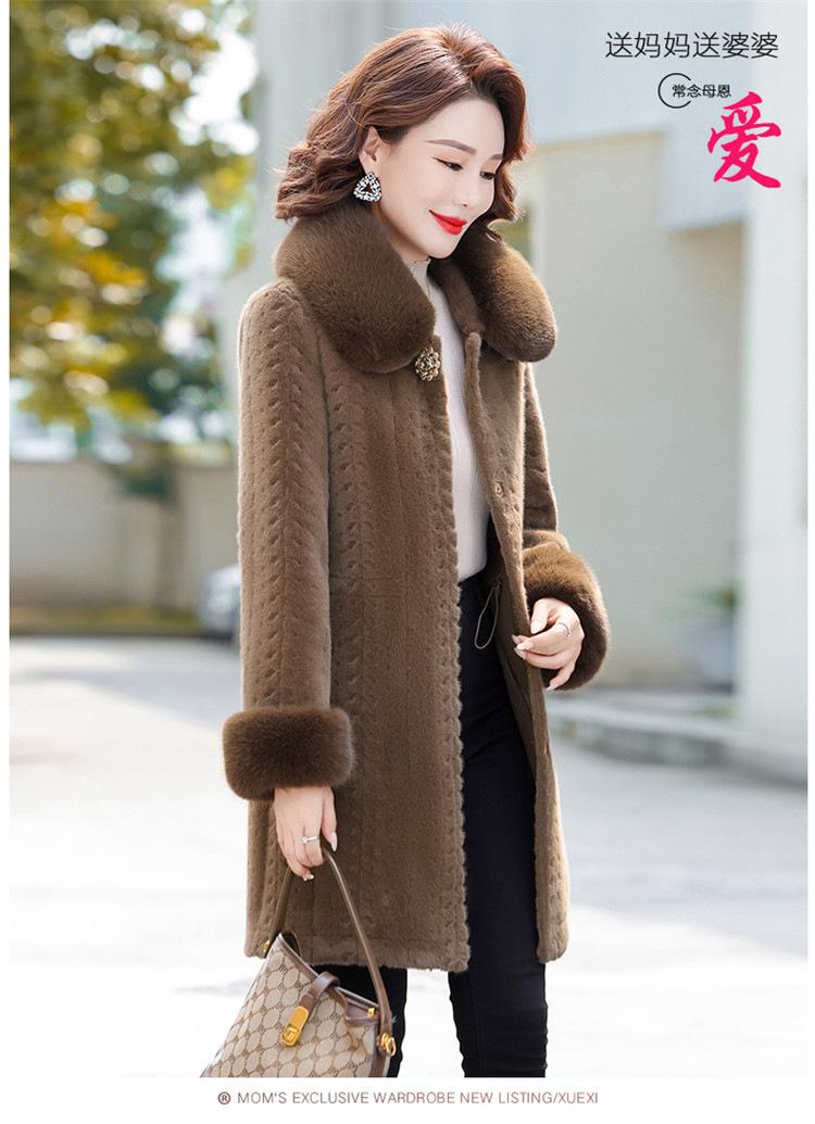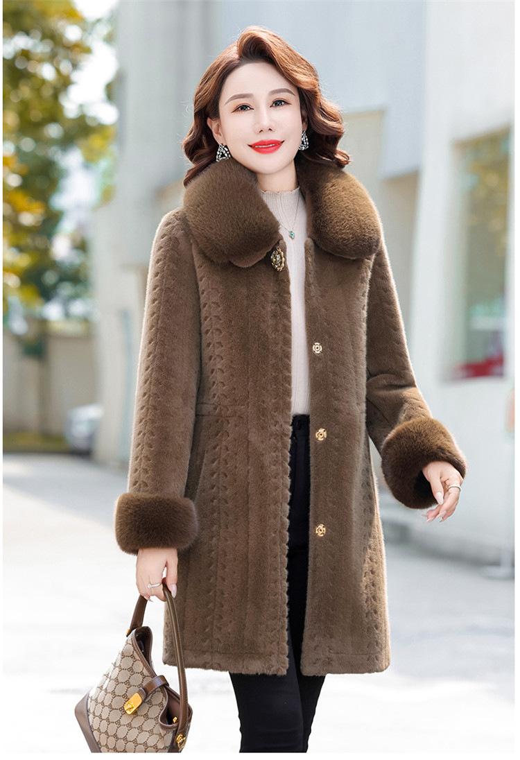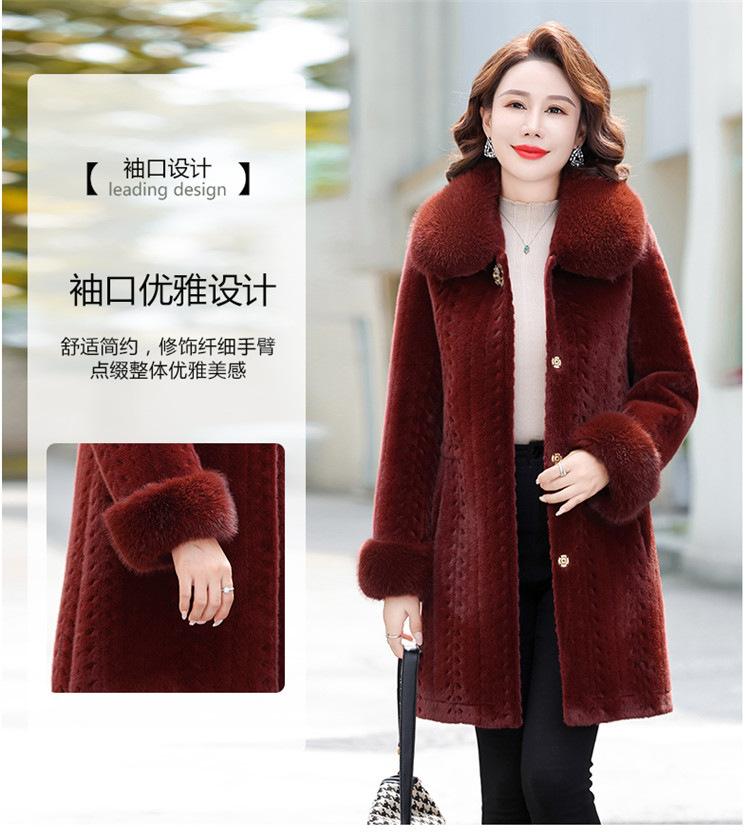 Abrigo de visón de imitación de invierno para madres Abrigo de piel sintética de longitud media estilo occidental para mujeres de mediana edad y mayores Piel Uno