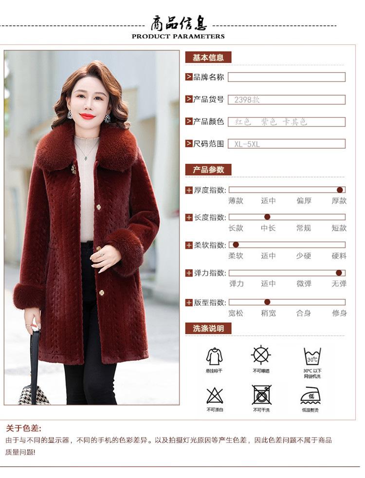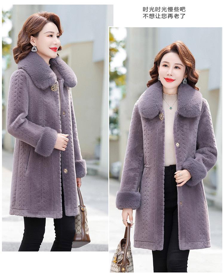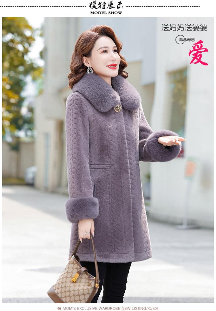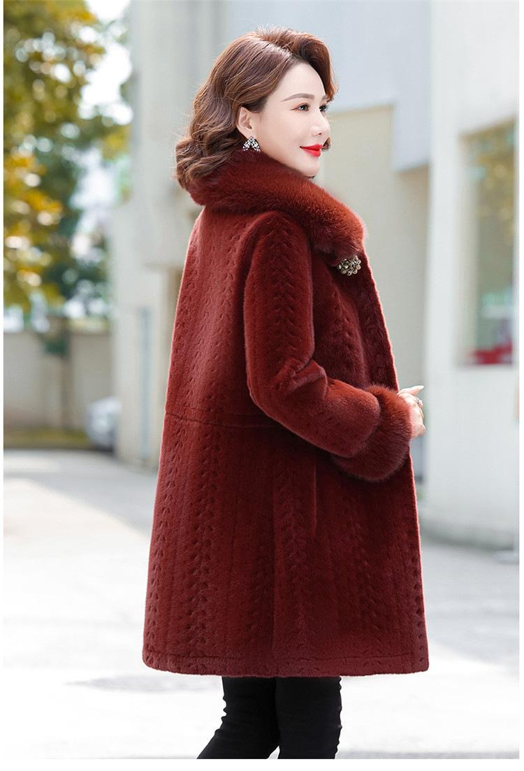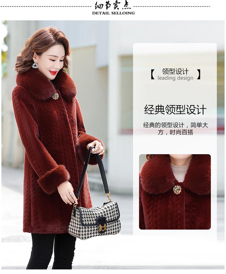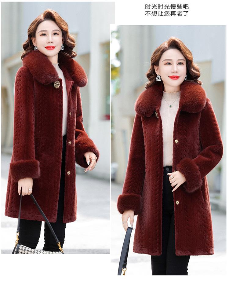 Abrigo de visón de imitación de invierno para madres Abrigo de piel sintética de longitud media estilo occidental para mujeres de mediana edad y mayores Piel Uno