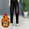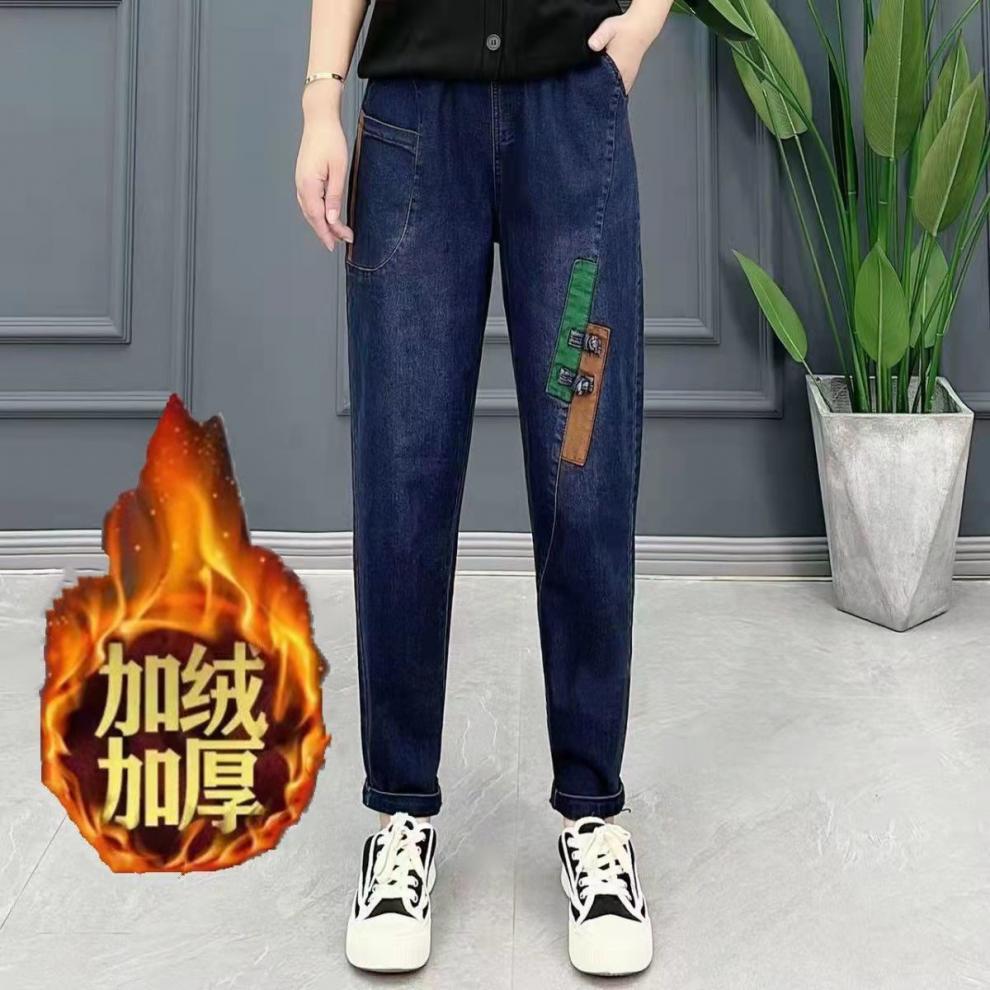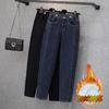 Pantalones vaqueros blancos para mujer, forrados de vellón, gruesos, de invierno, recién llegados, modernos, versátiles, retro, elásticos, de cintura alta, pantalones harén