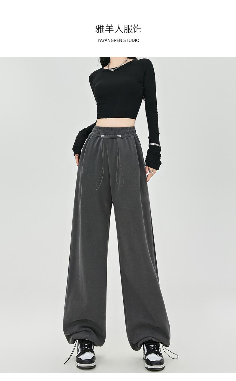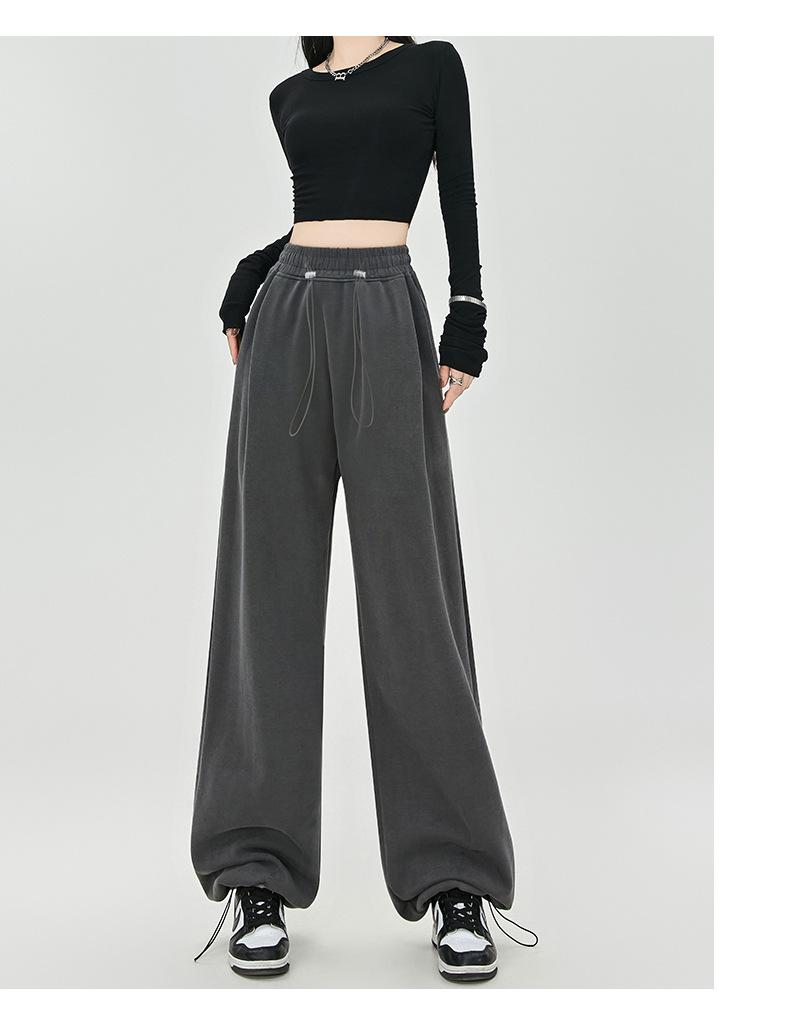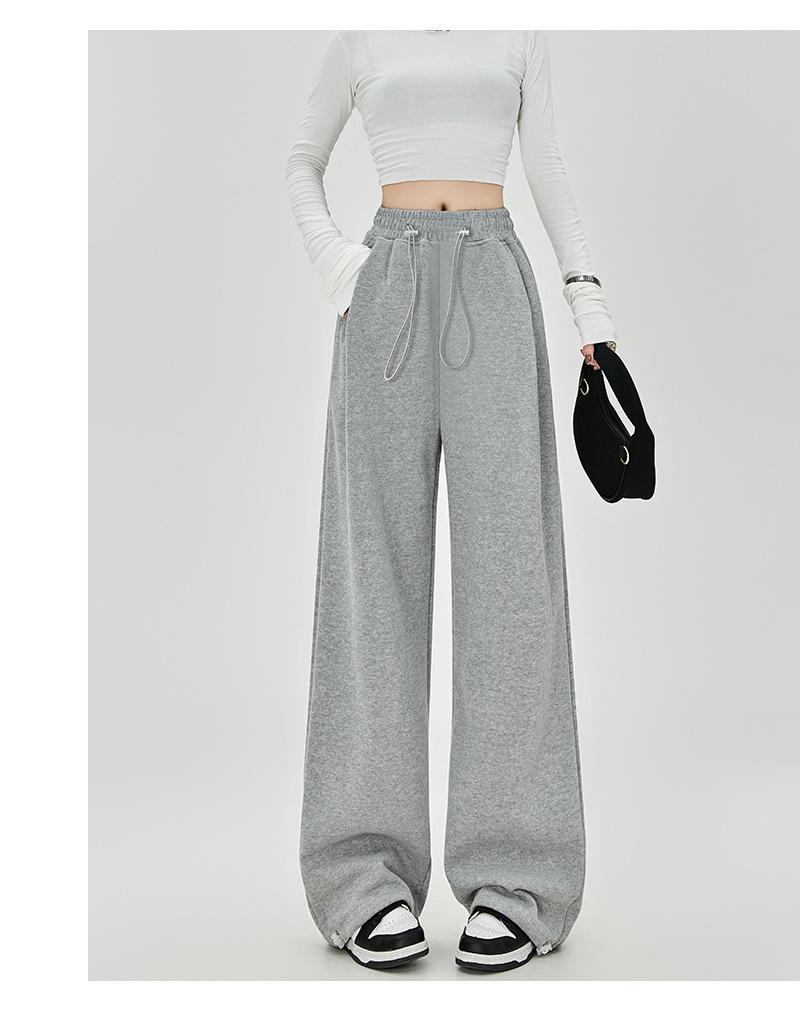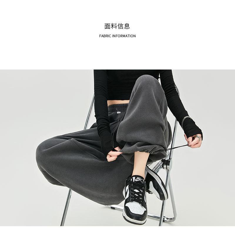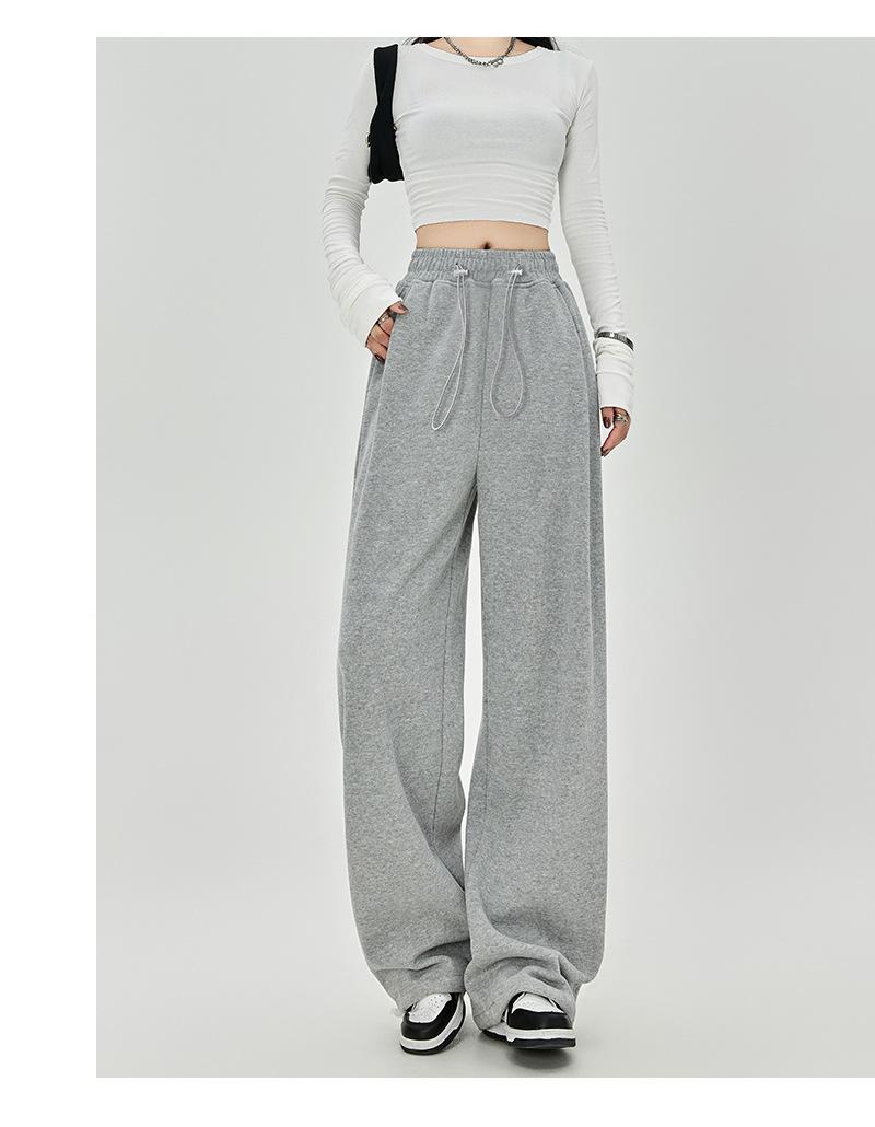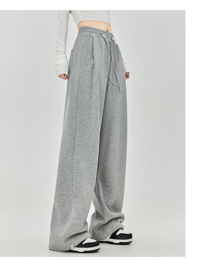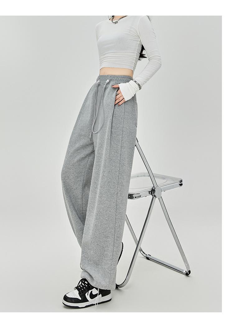 Pantalones de Sudor Grises Pantalones de Mujer Otoño e Invierno 2025 Nuevos Pantalones de Sudor Rectos Sueltos Casual Otoño Americanos de Pierna Ancha