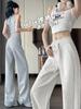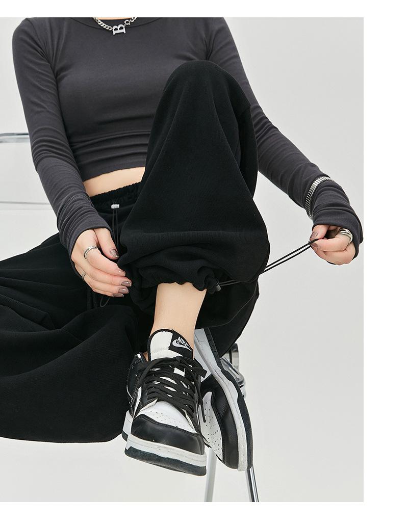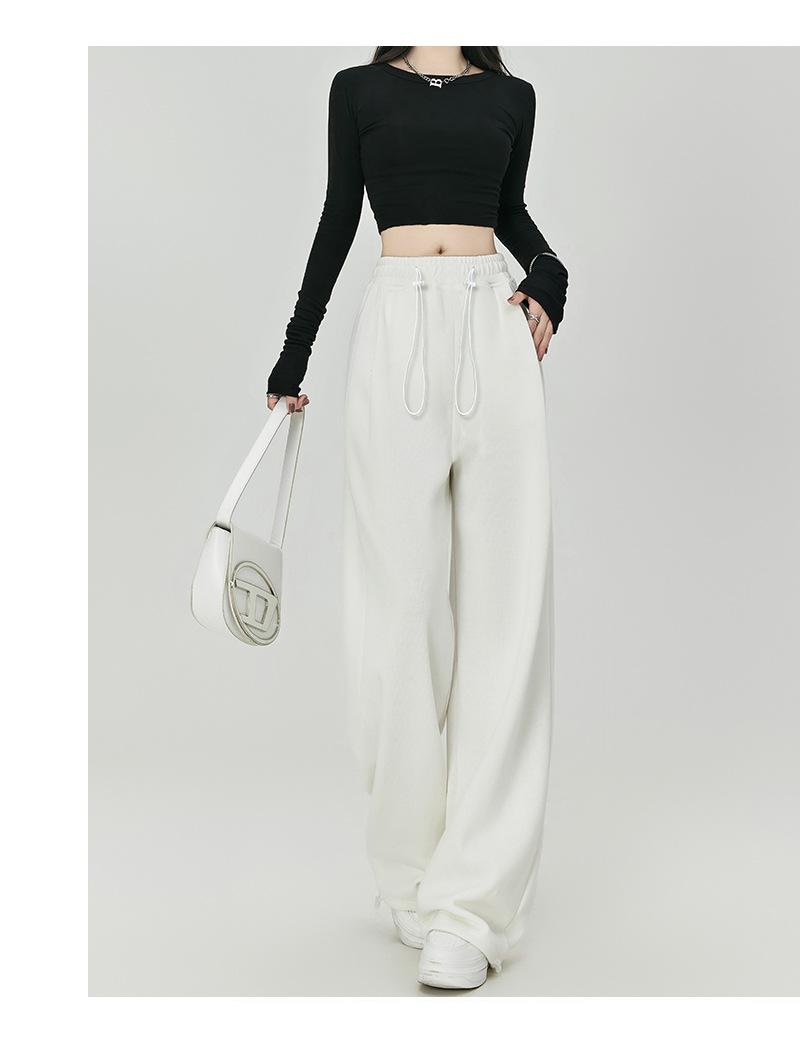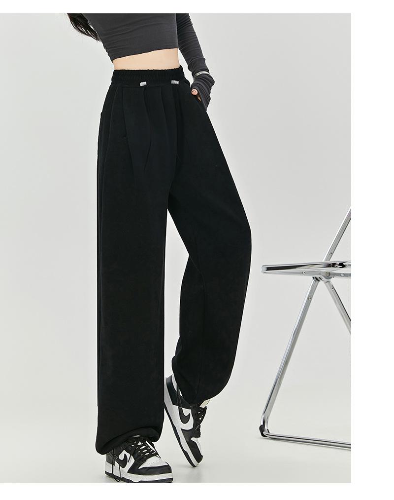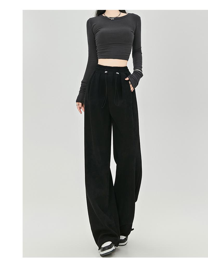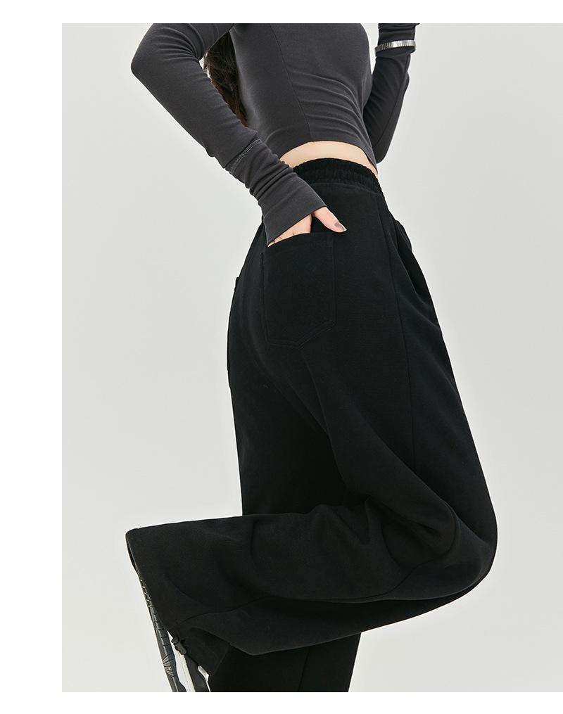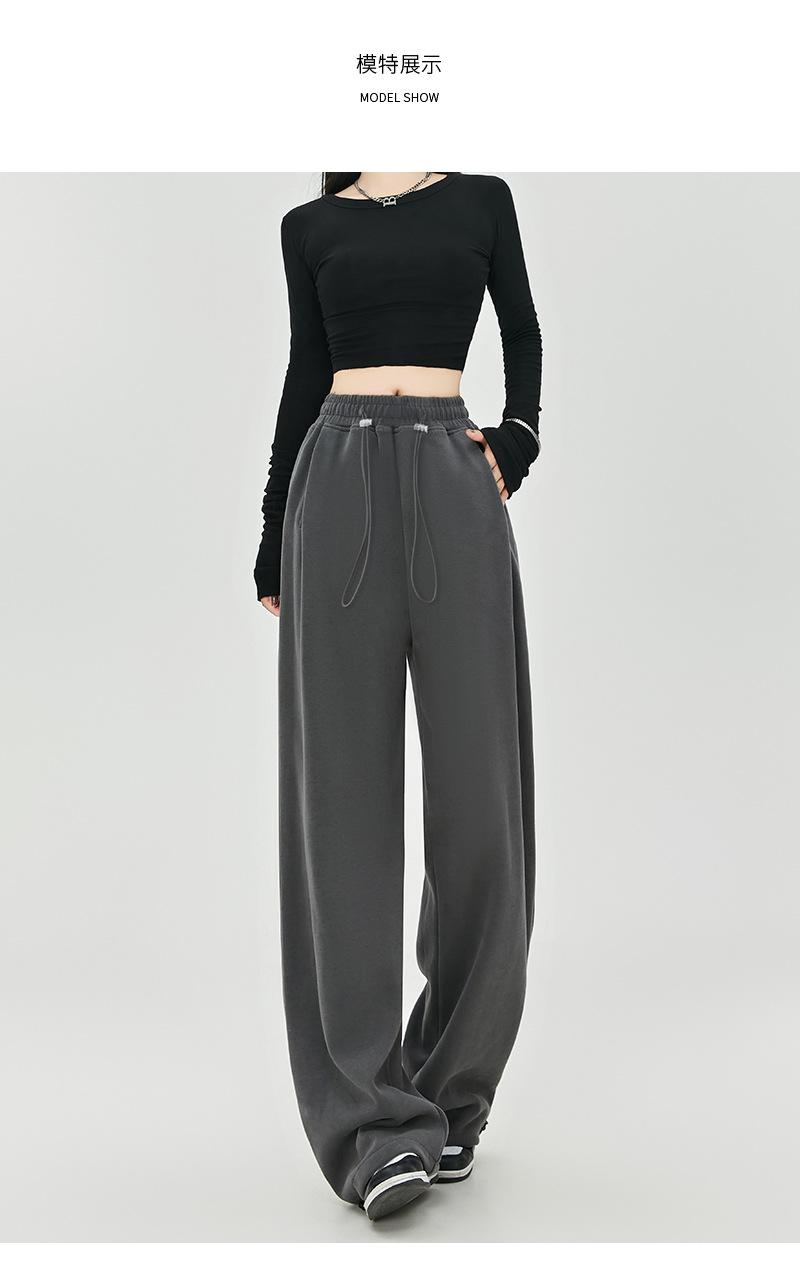 Pantalones de Sudor Grises Pantalones de Mujer Otoño e Invierno 2025 Nuevos Pantalones de Sudor Rectos Sueltos Casual Otoño Americanos de Pierna Ancha