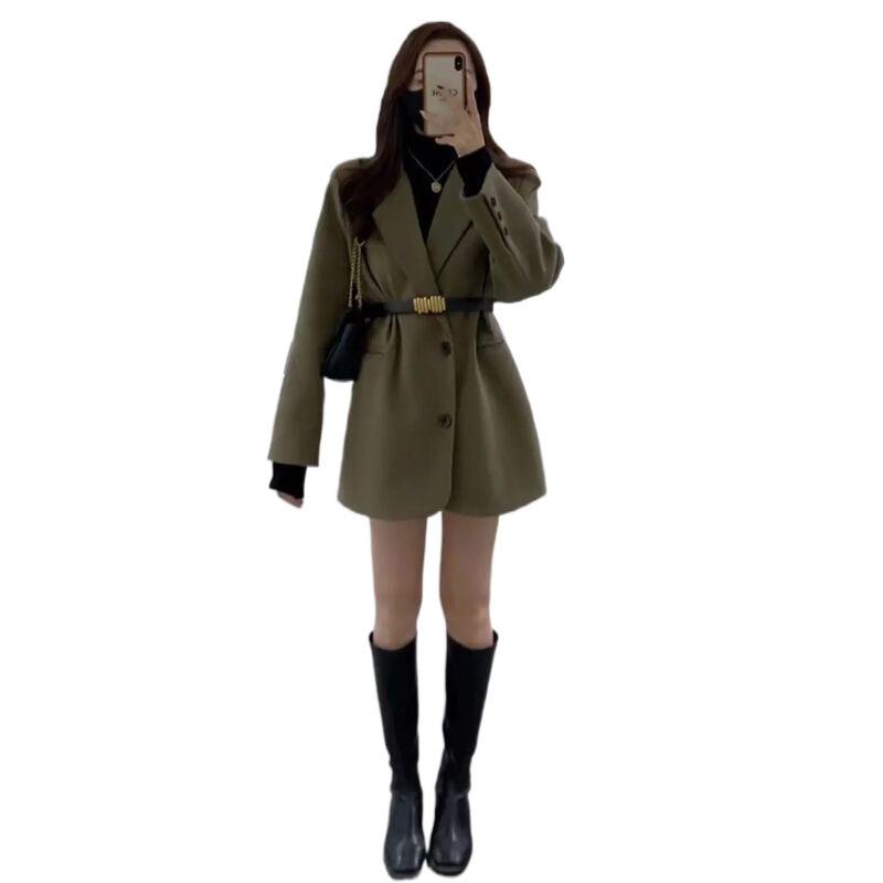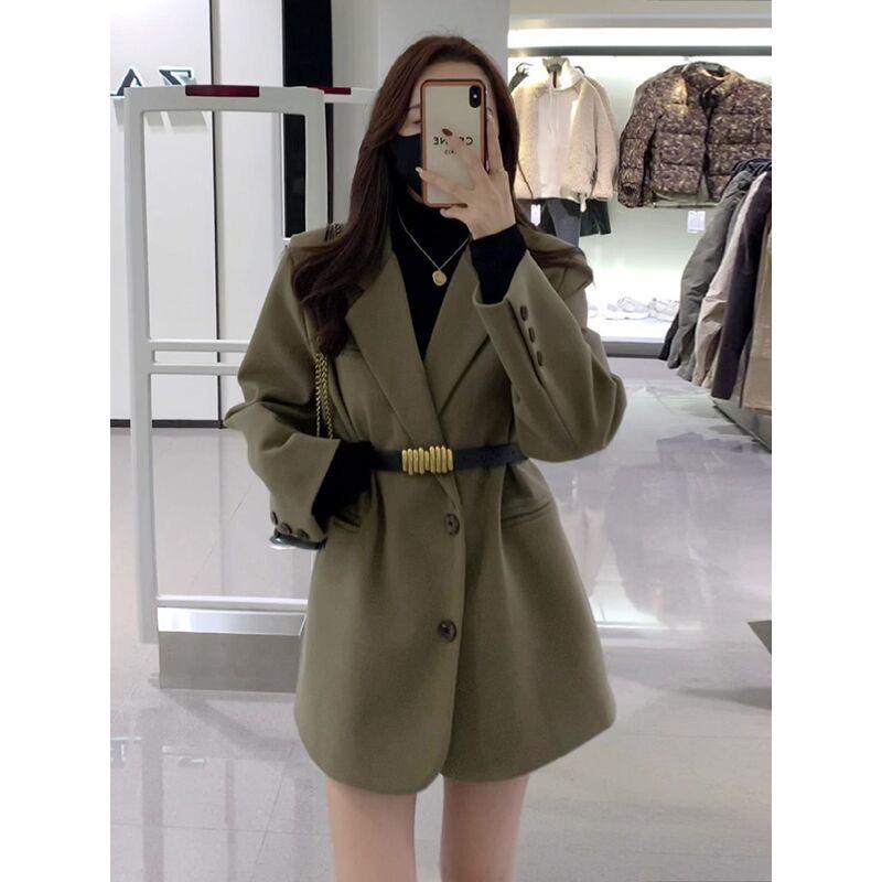 Chaqueta de traje para mujer 2024, nueva, holgada, de longitud media, estilo coreano, combina con todo, elegante y casual.