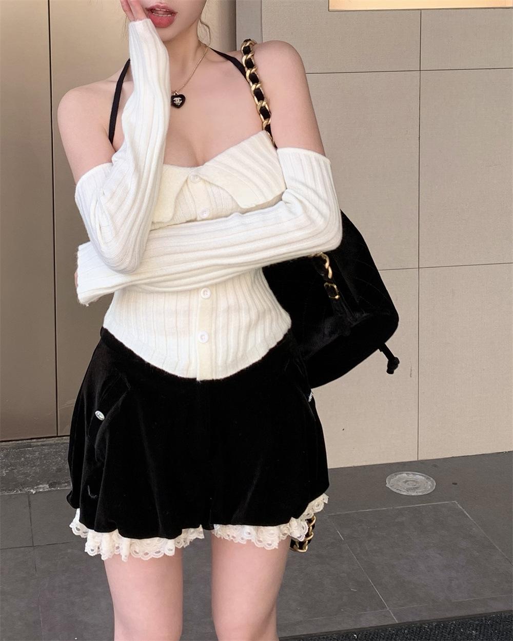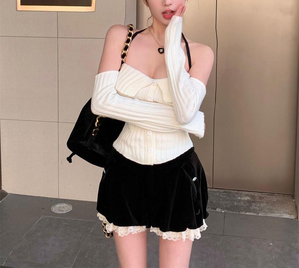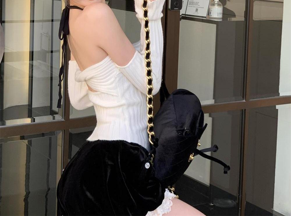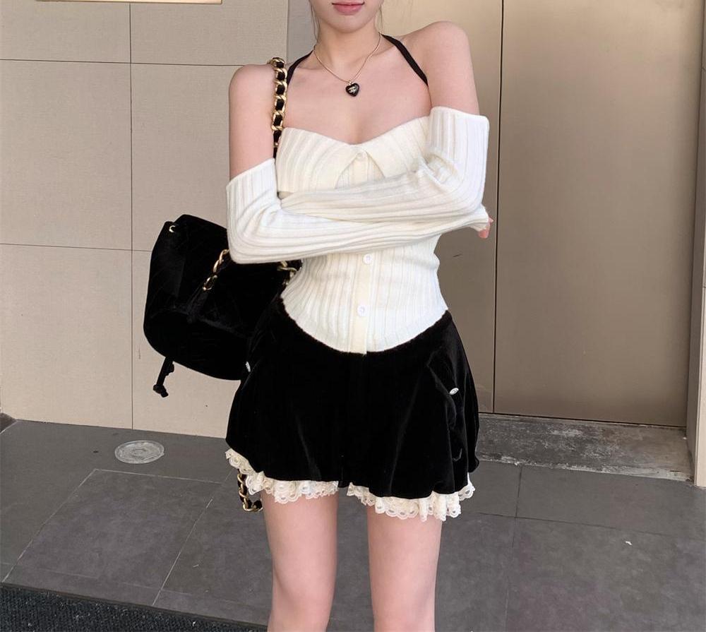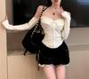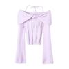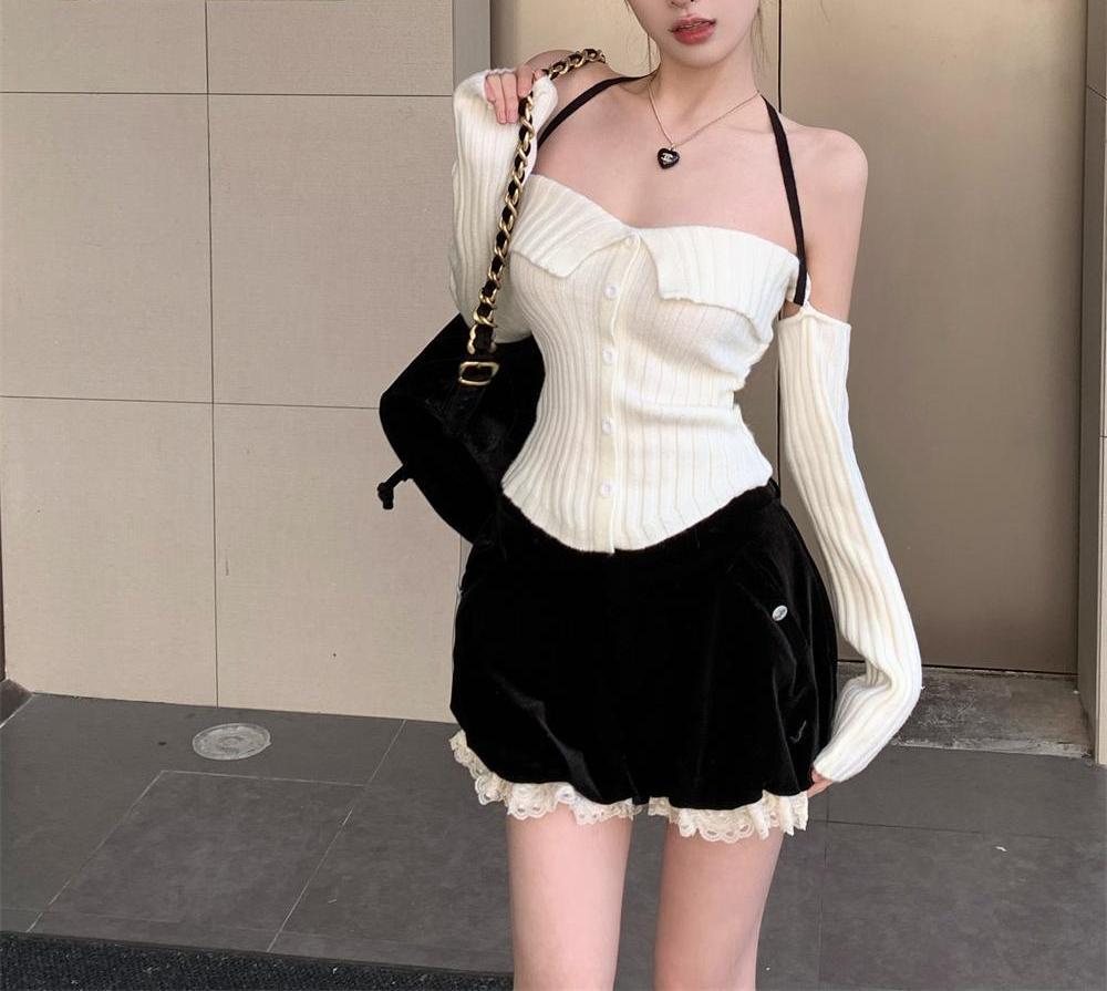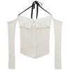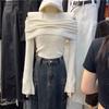 Top corto de manga larga ajustado con cuello alto y hombros descubiertos para mujer, estilo Spice Girl, color blanco, invierno 2024