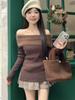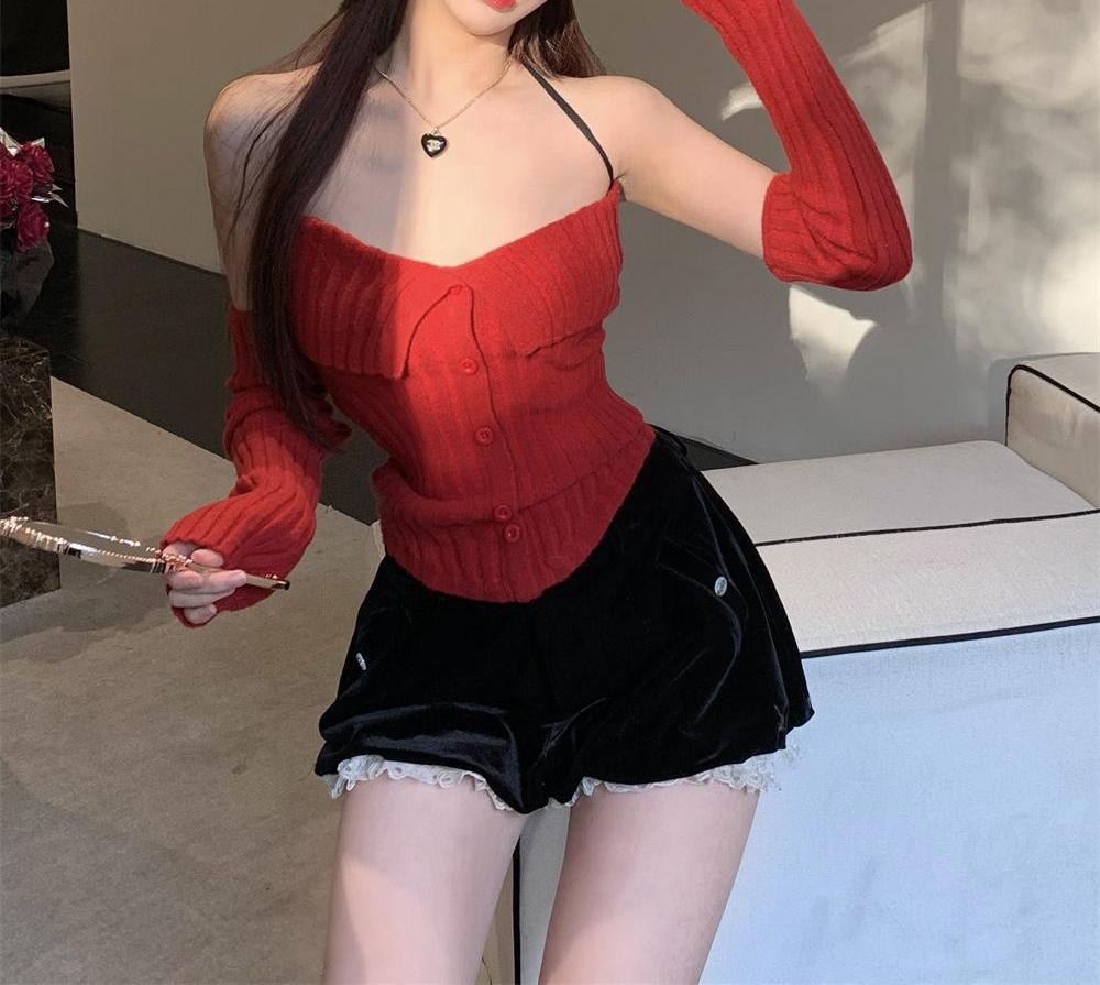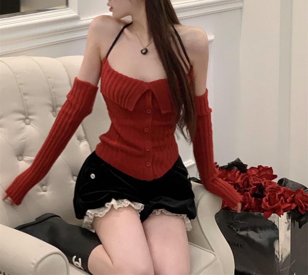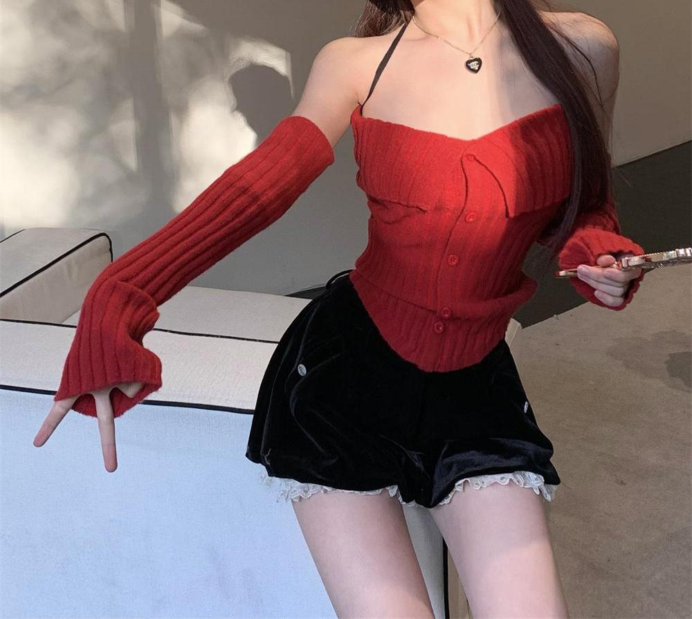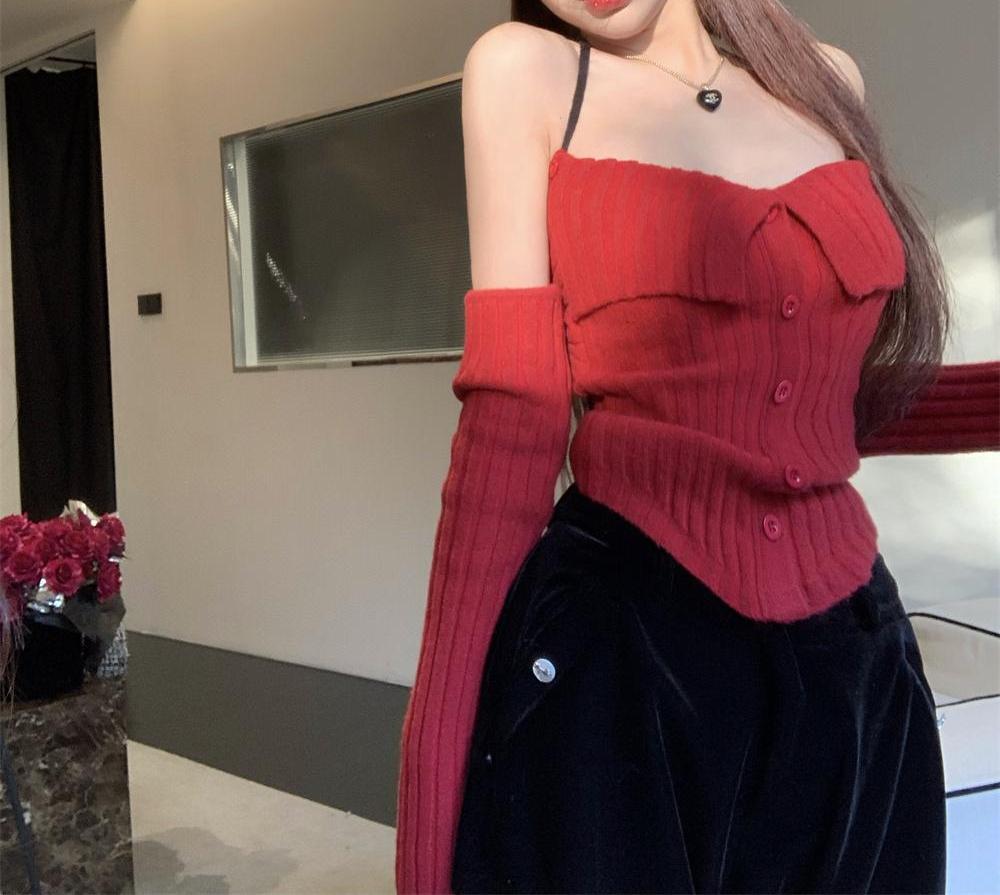 Top corto de manga larga ajustado con cuello alto y hombros descubiertos para mujer, estilo Spice Girl, color blanco, invierno 2024