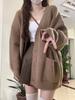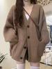 Suéter Cárdigan de Punto con Cuello en V Estilo Perezoso de Otoño e Invierno para Mujer Nueva Chaqueta Casual Holgada para Personas Pequeñas