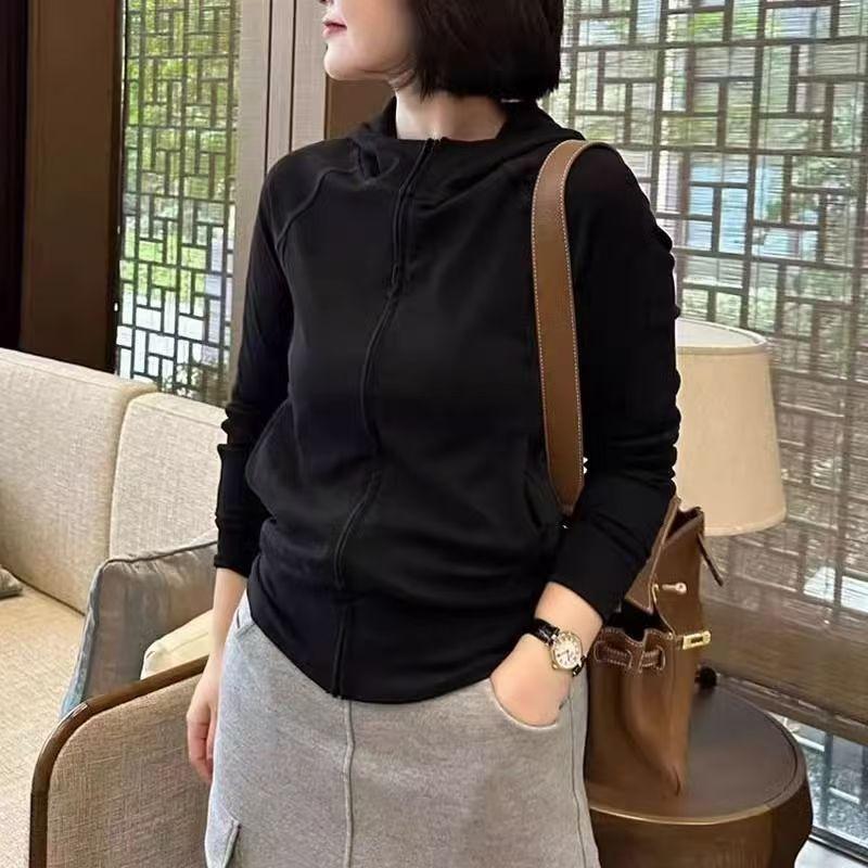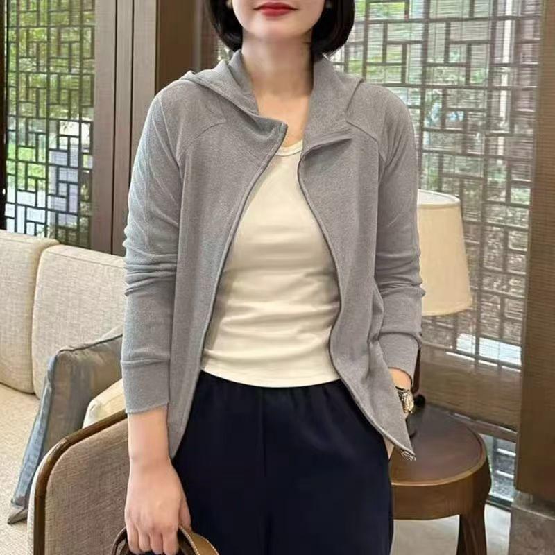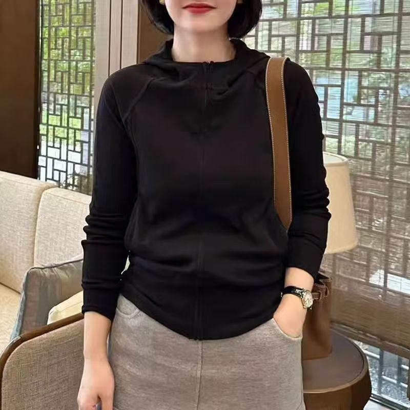 Suéter polar con capucha para mujer, primavera y otoño, nuevo, casual, sencillo, manga larga, cárdigan, moda coreana, combinable