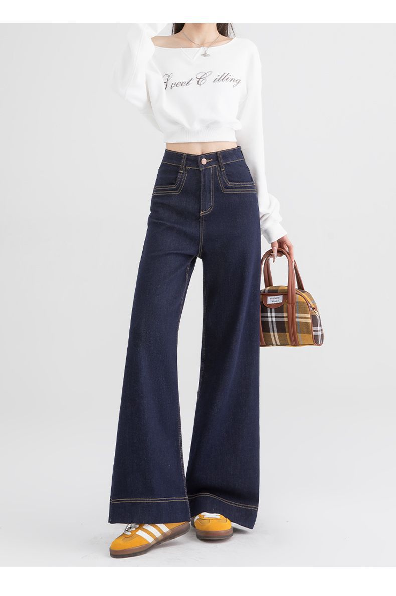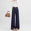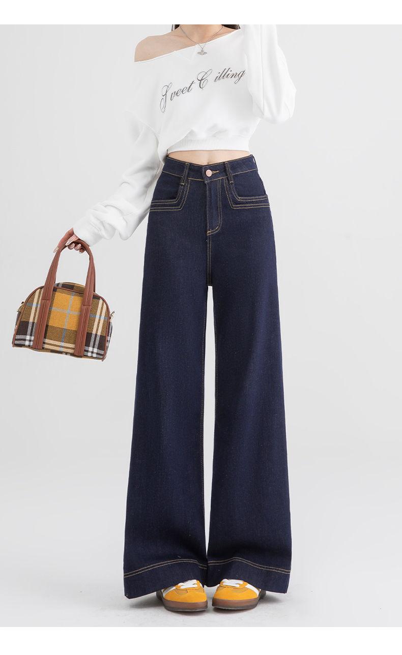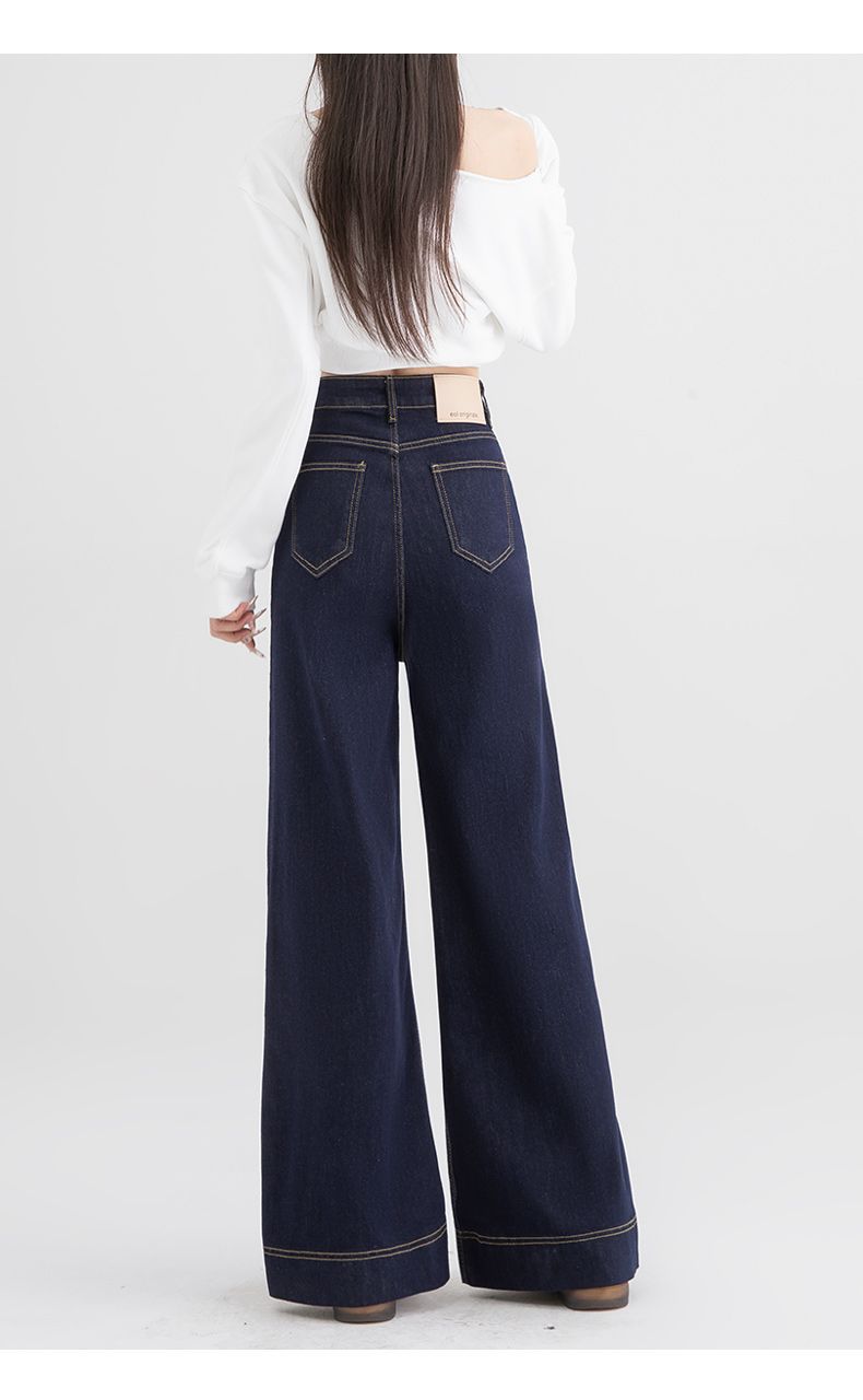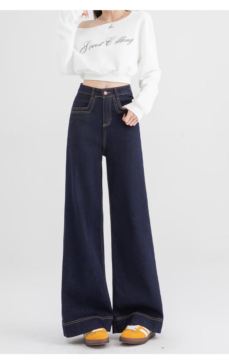 Jeans de pierna ancha azul tanino para mujer, nuevos de primavera y otoño, pantalones rectos holgados, cintura alta, elásticos, favorecedores
