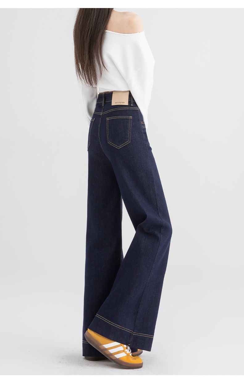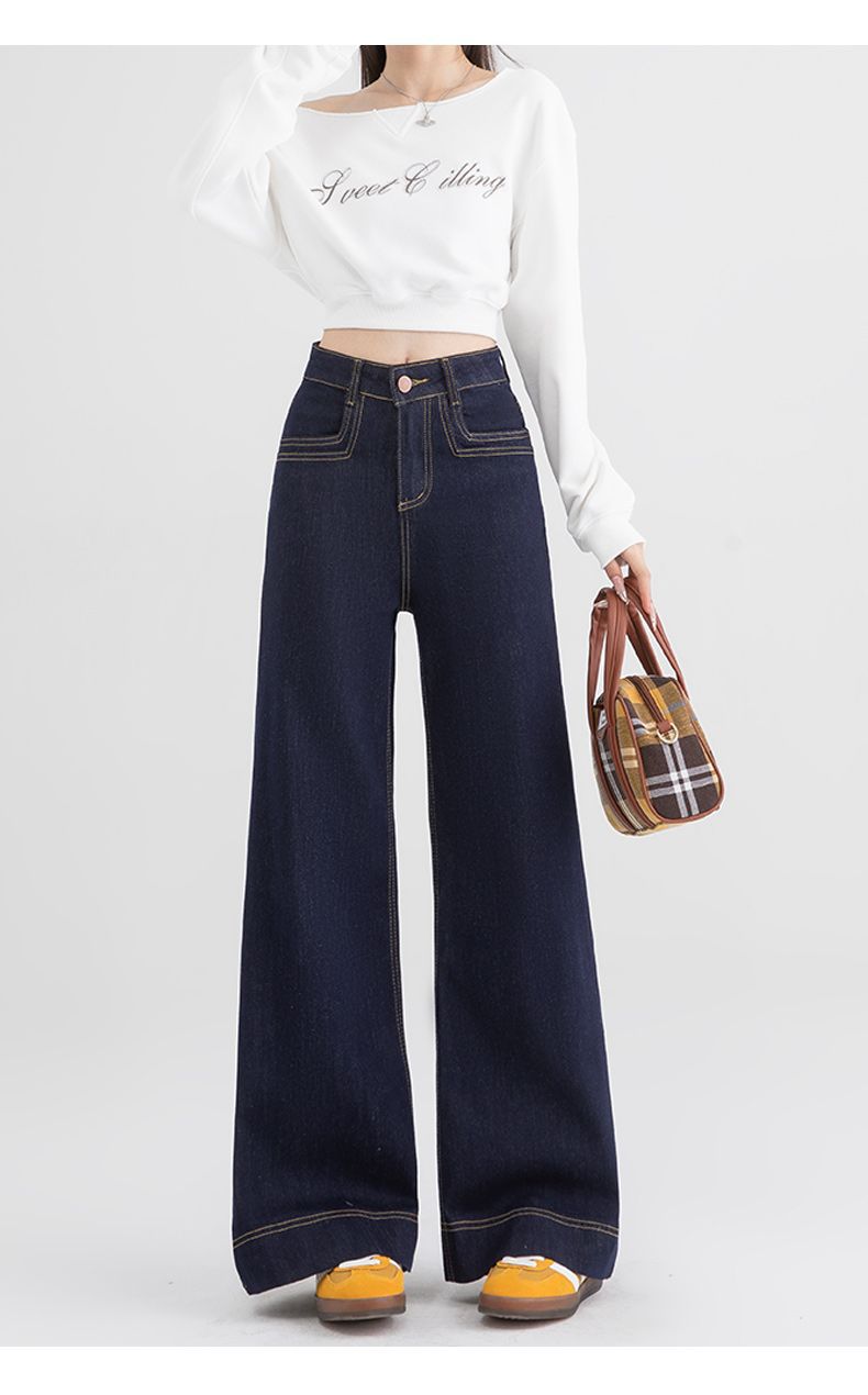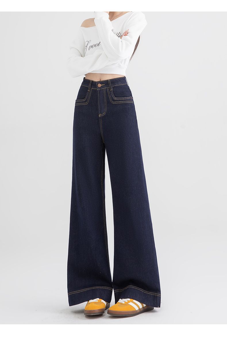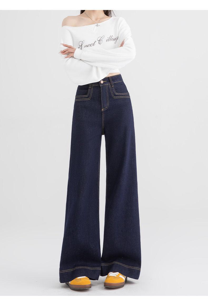 Jeans de pierna ancha azul tanino para mujer, nuevos de primavera y otoño, pantalones rectos holgados, cintura alta, elásticos, favorecedores