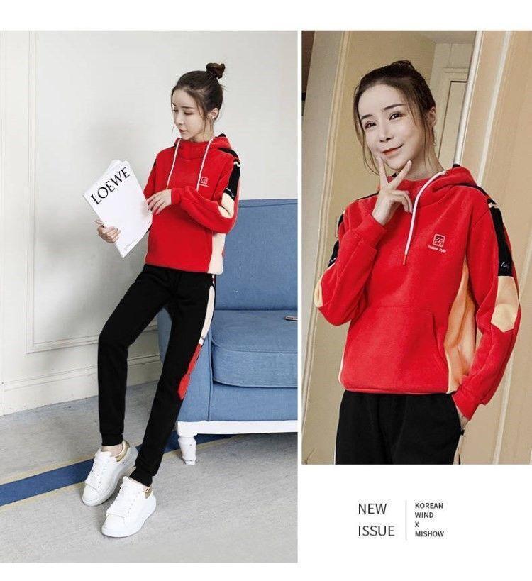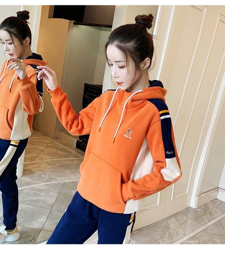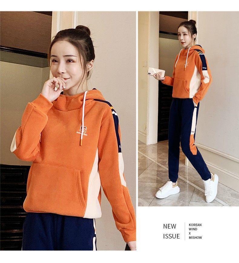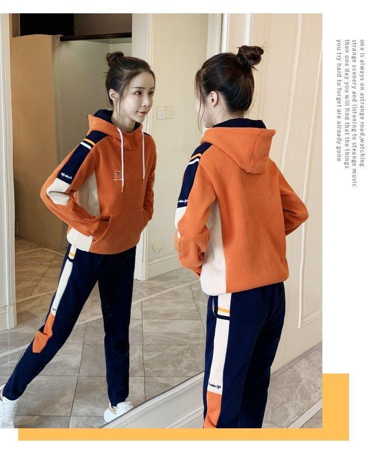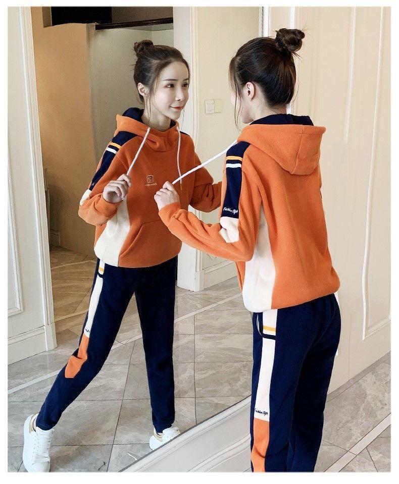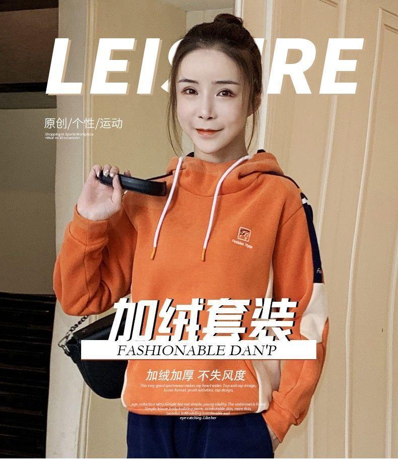 Conjunto de dos piezas con capucha y forro polar grueso para mujer, popular en Internet, nuevo, informal, para otoño e invierno