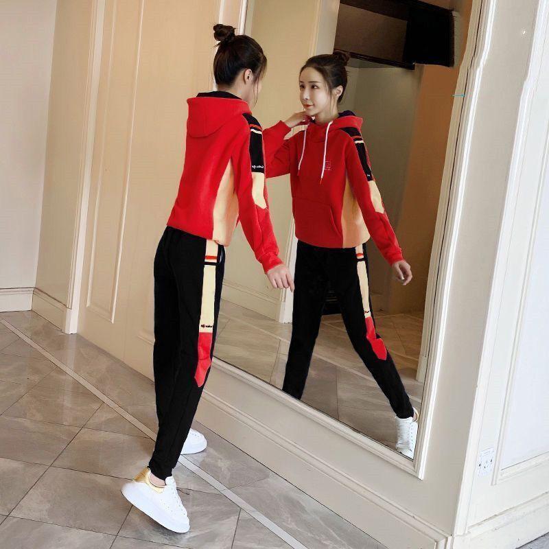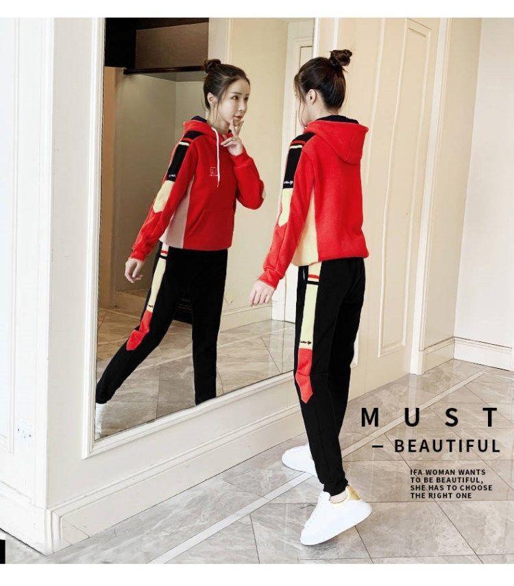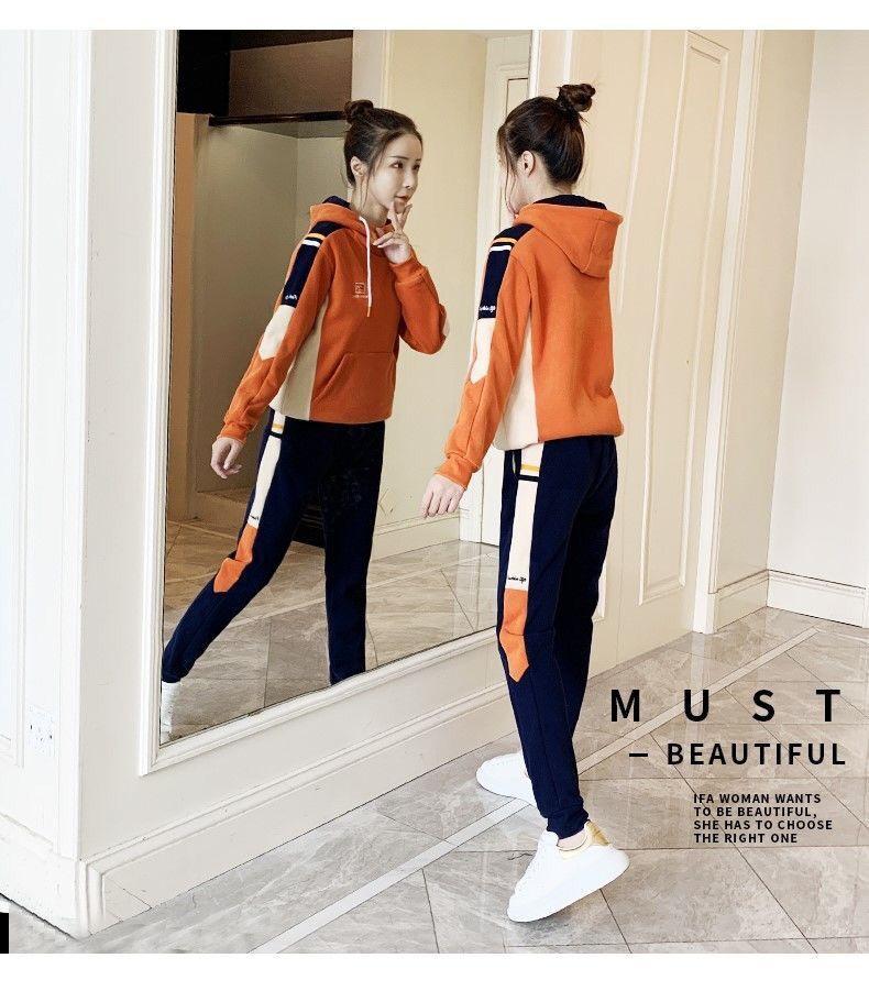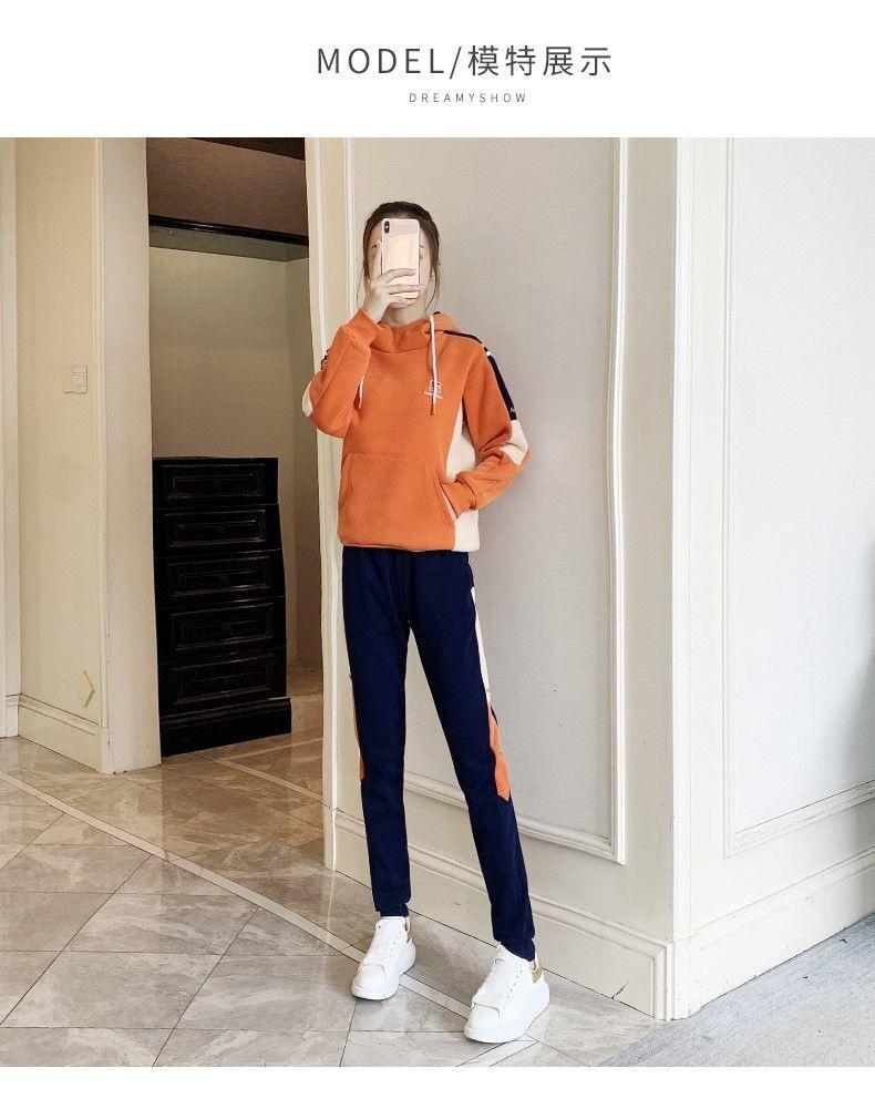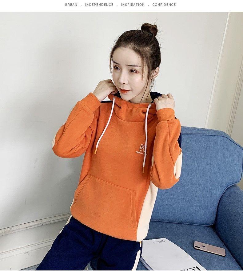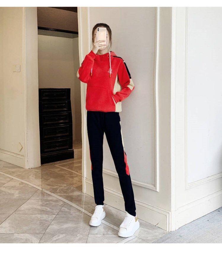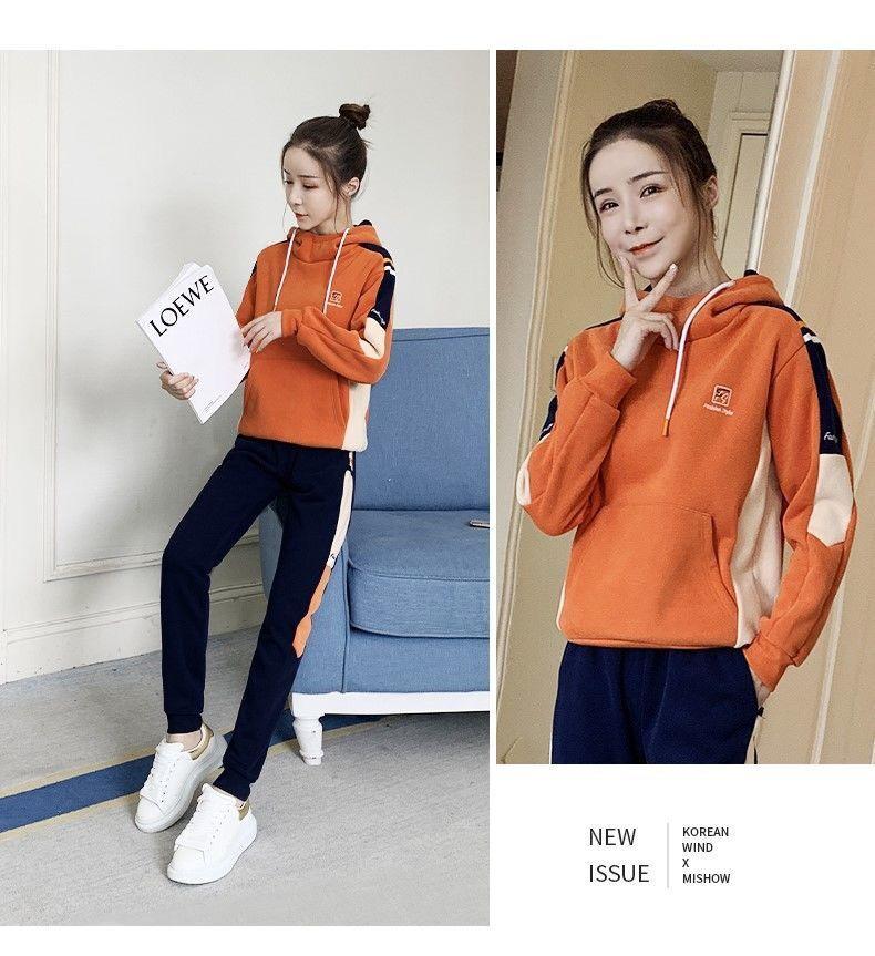 Conjunto de dos piezas con capucha y forro polar grueso para mujer, popular en Internet, nuevo, informal, para otoño e invierno