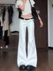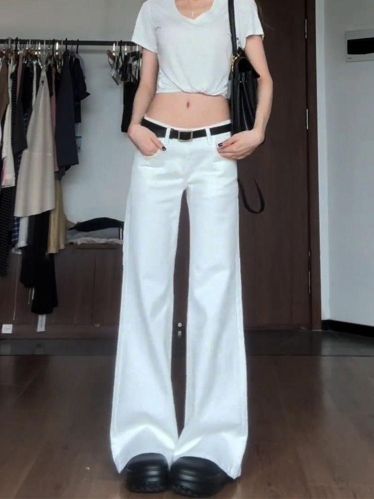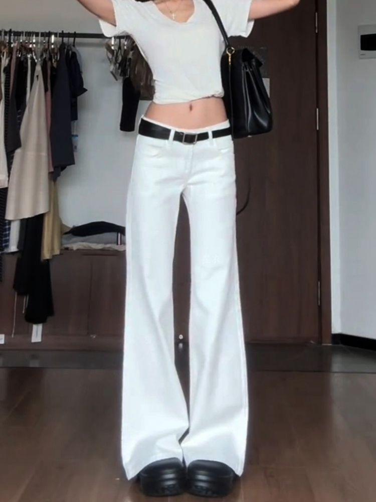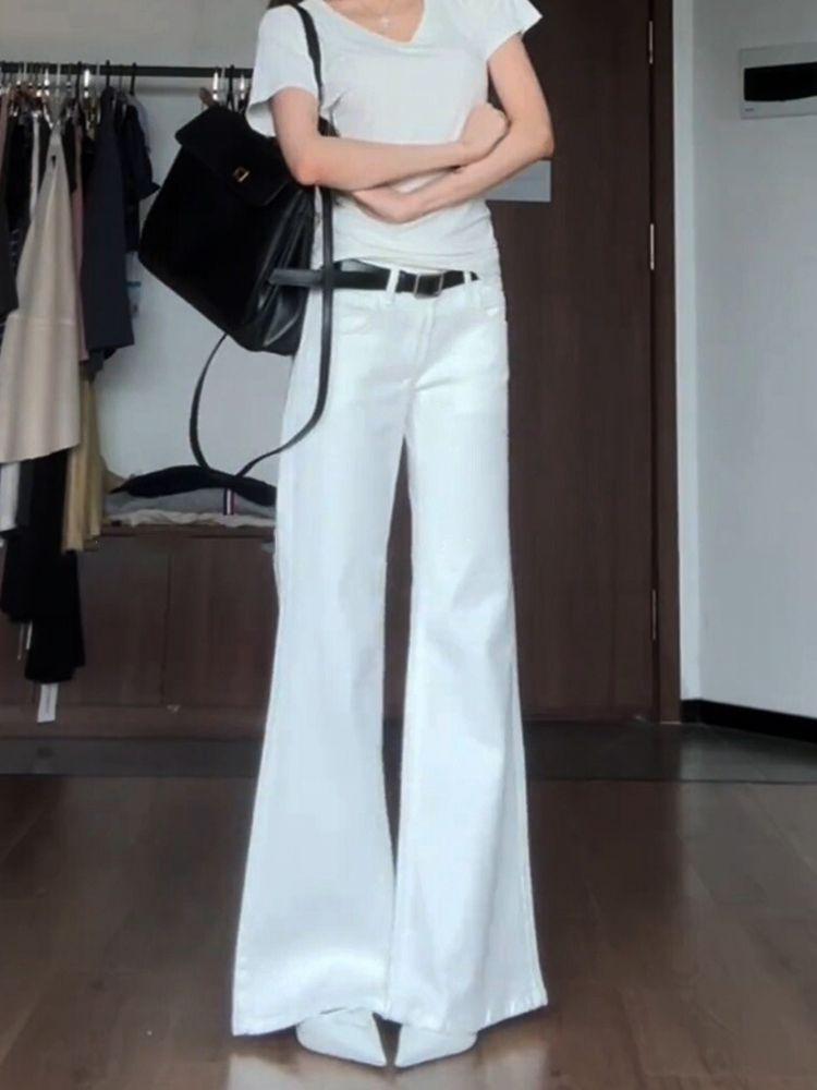 Vaqueros blancos elásticos acampanados para mujer, novedad de otoño, cintura alta, corte entallado, combinables, modernos, con estilo, con estilo, con estilo y con trucos.