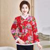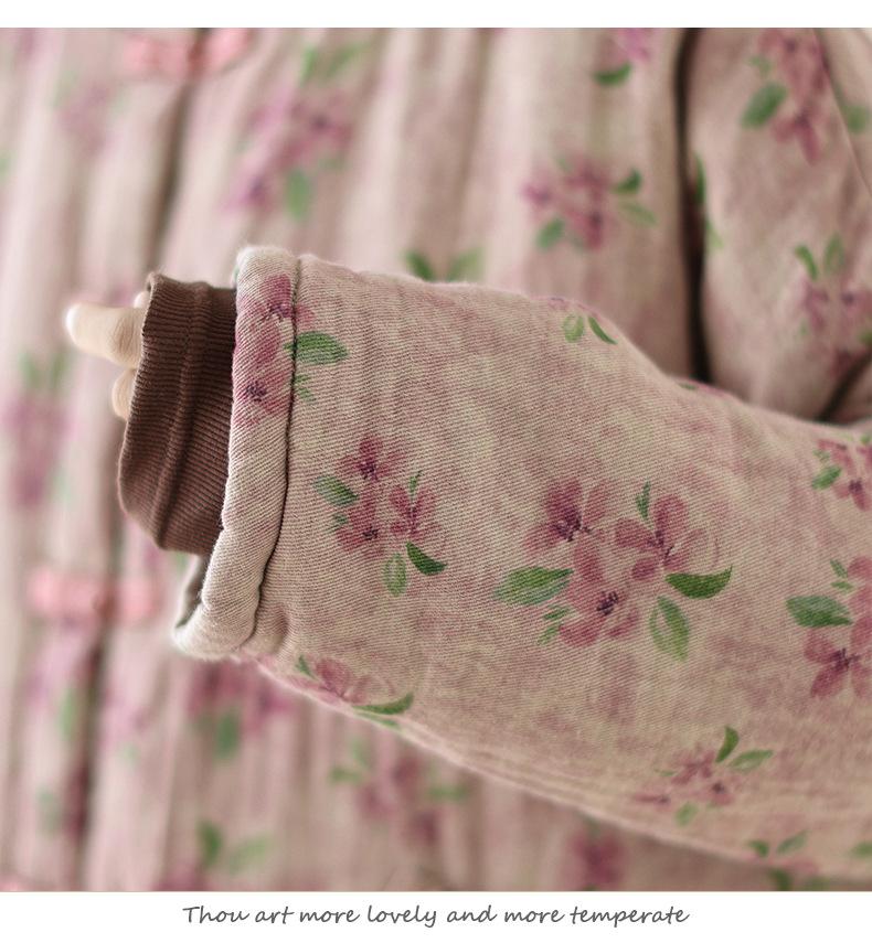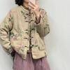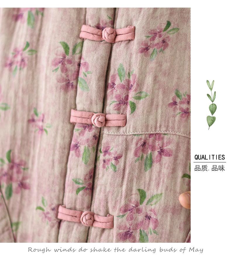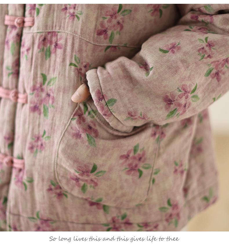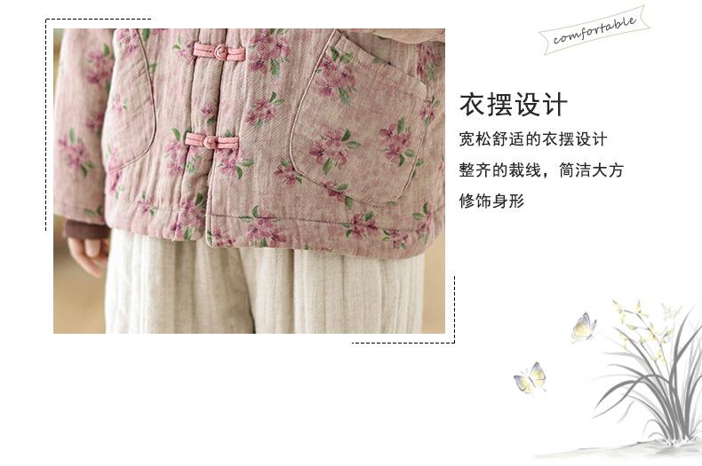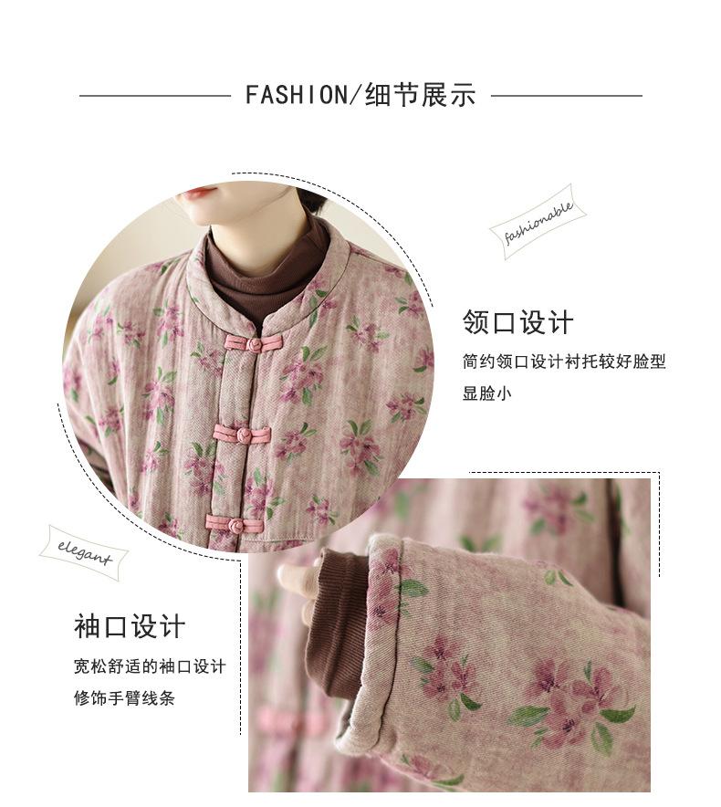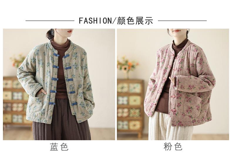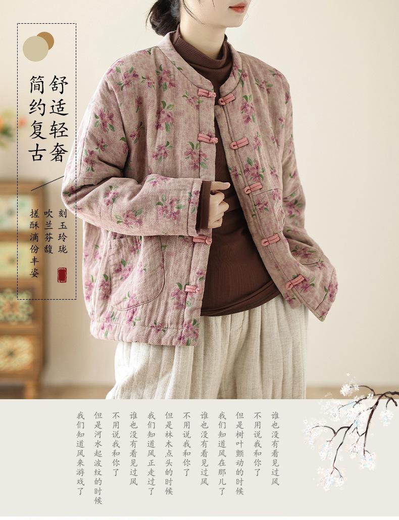 Nueva chaqueta acolchada de algodón estilo chino con botones retro, abrigo cálido holgado y acolchado de algodón con estampado artístico para mujer