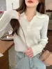 Suéter de Punto para Mujer Otoño e Invierno 2024 Nuevo Cuello Polo Botonadura Base Manga Larga Interior Suéter Corto Hermosa Parte Superior