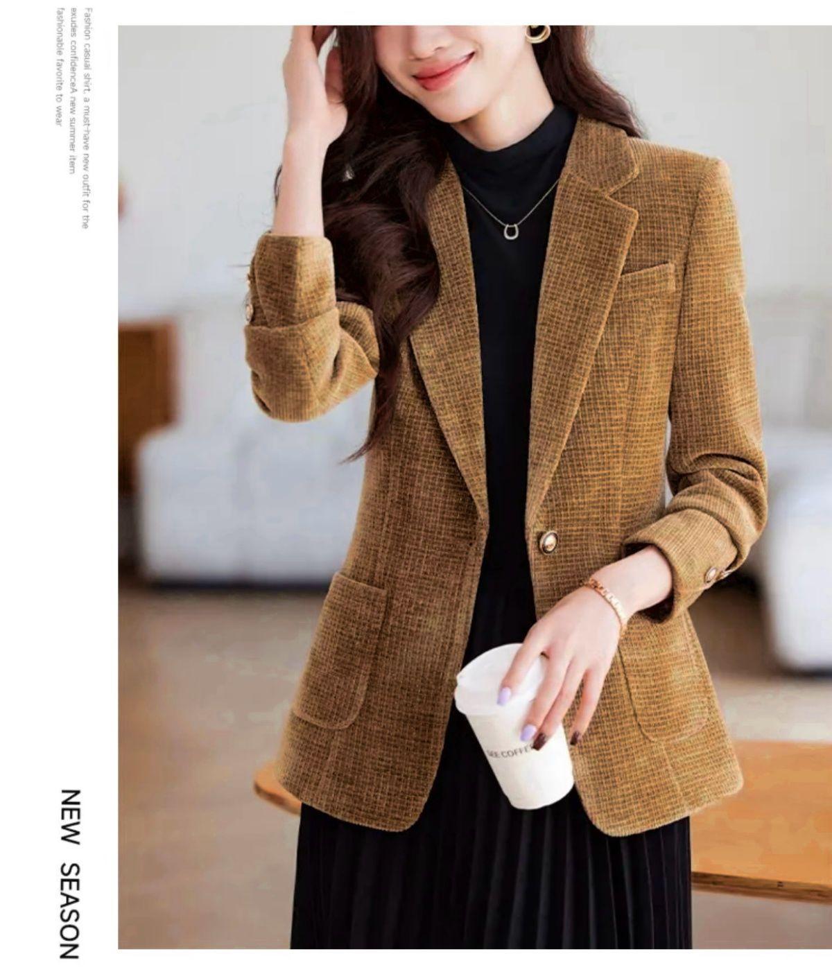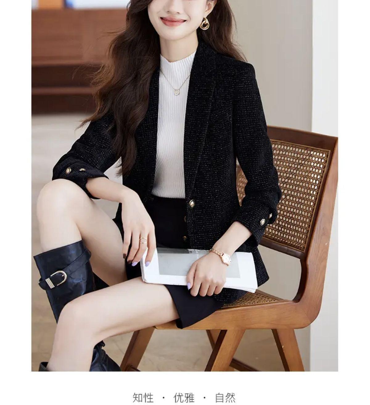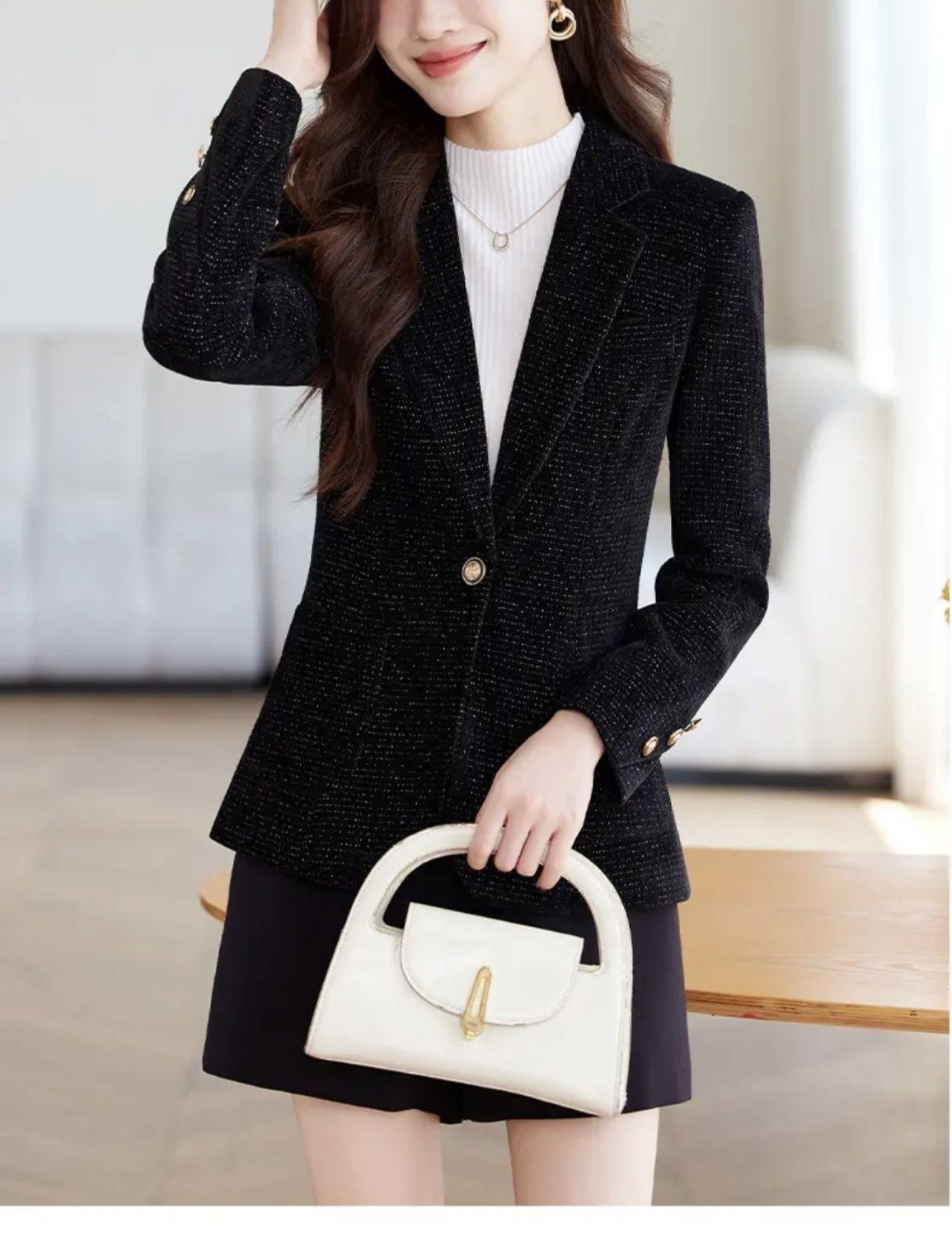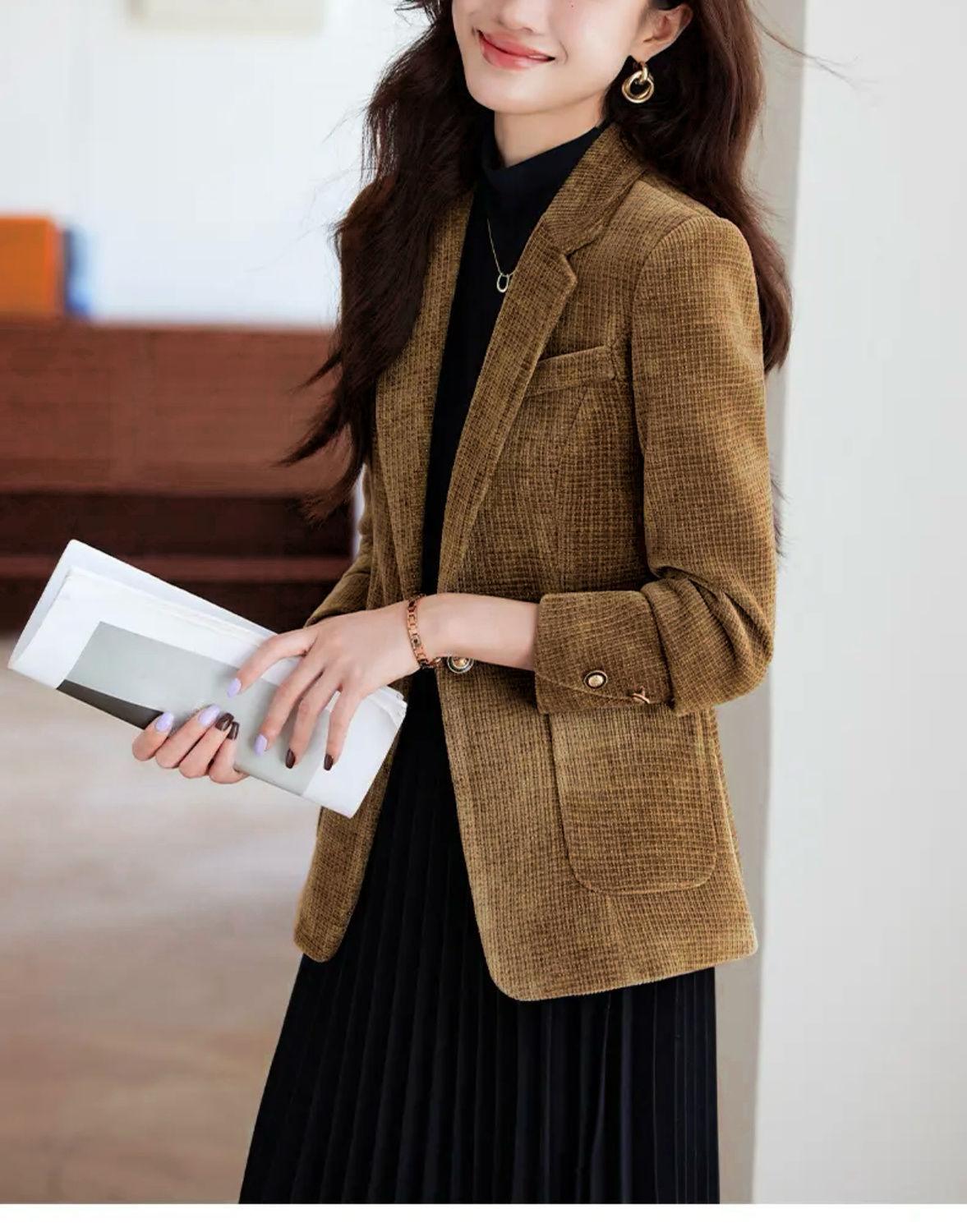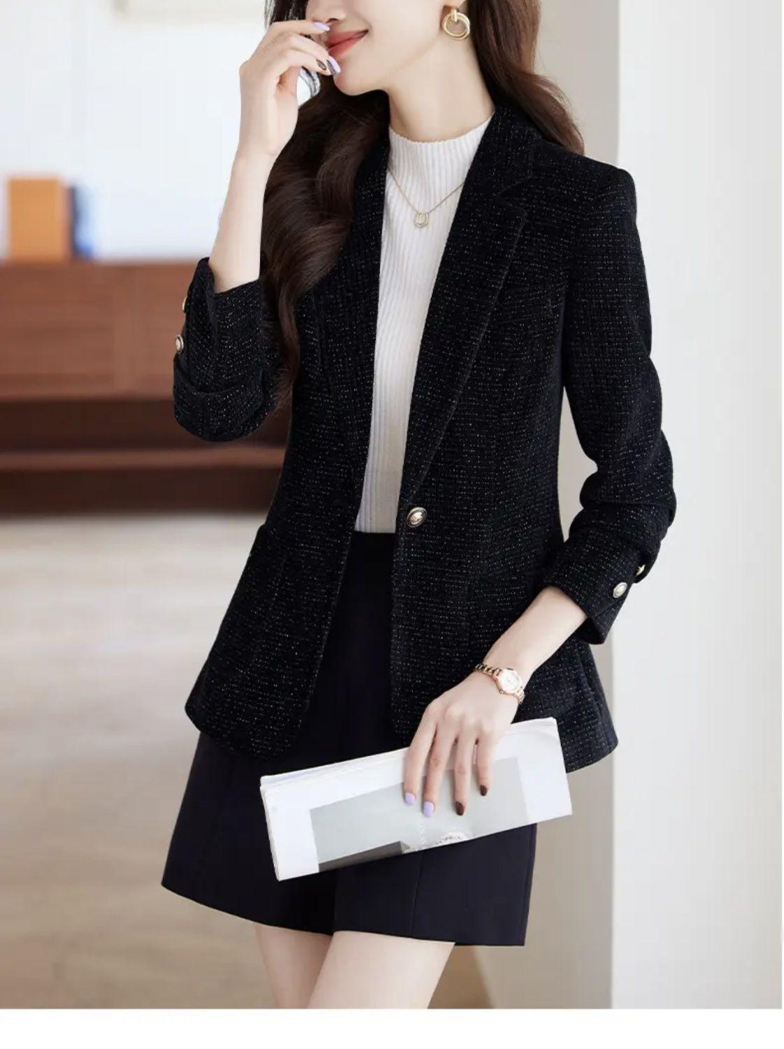 Chaqueta de traje nueva de otoño 2024, elegante, combina con todo, primavera y otoño, de seda brillante, elegante, informal, top adelgazante.
