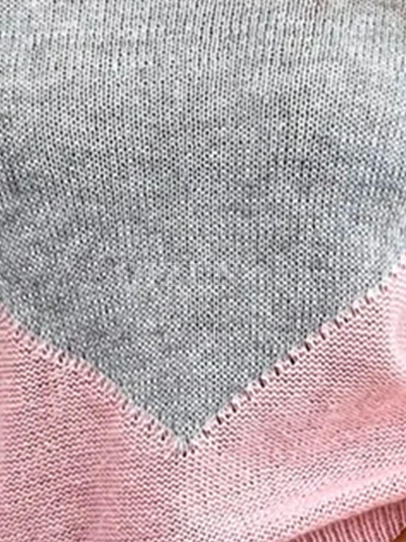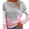 Suéter cruzado europeo y americano de otoño e invierno con cuello redondo en contraste, costuras ahuecadas, corte entallado, manga larga, top de punto fino para mujer