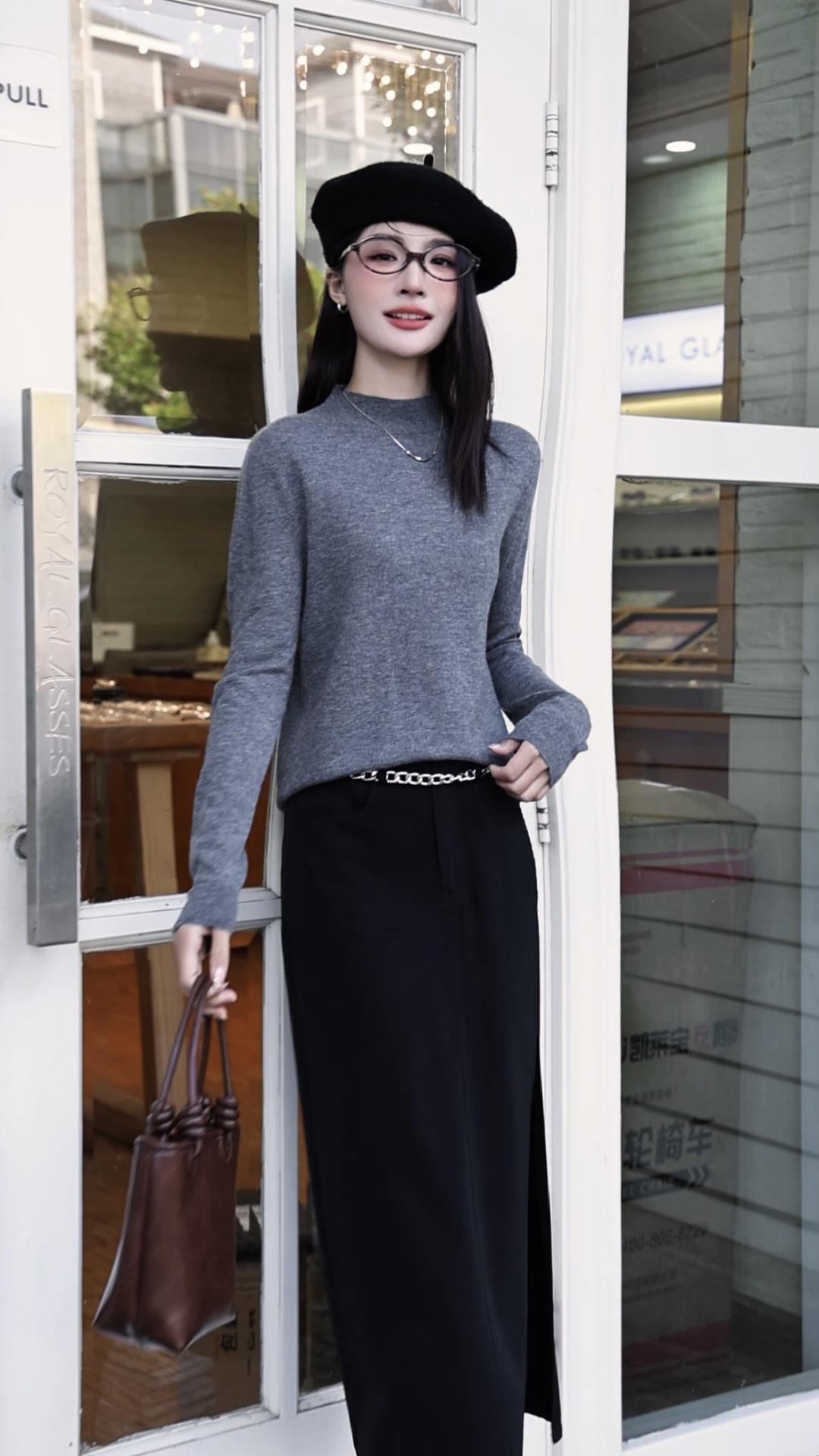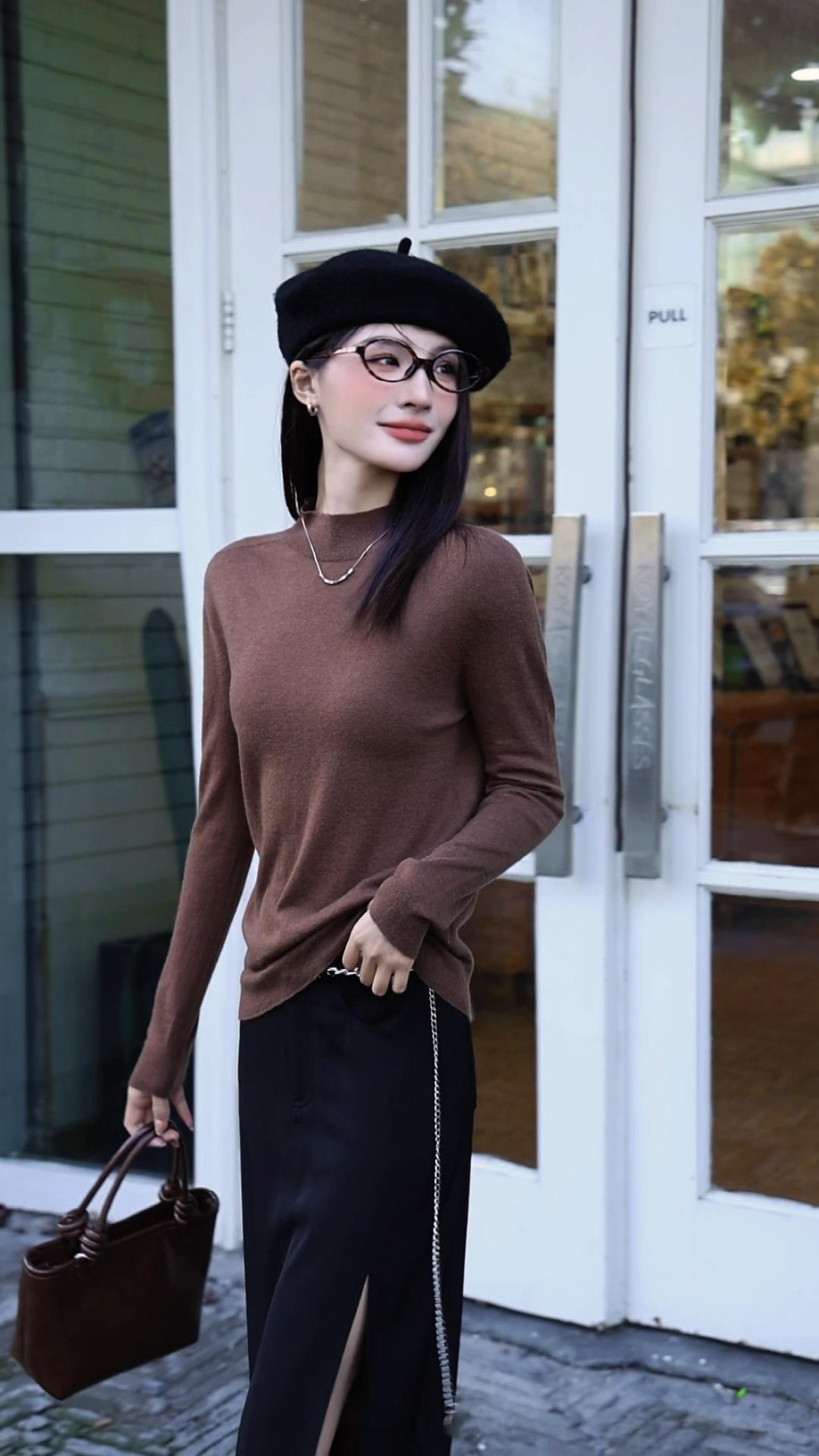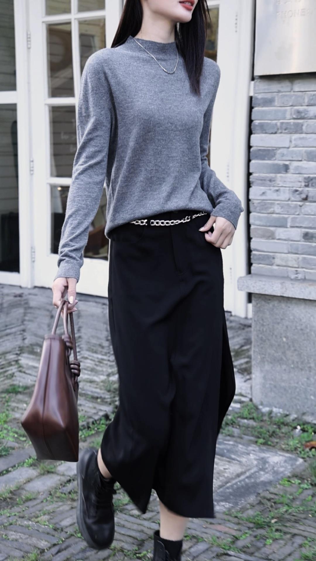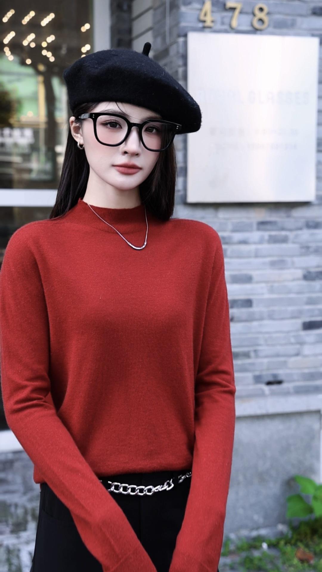 Suéter de Punto de Cuello Alto Medio de Una Pieza Sin Costuras Listo para Usar para Mujer, Nuevo Estilo Otoño e Invierno 2025, Top de Capa Base de Cachemira de Manga Larga y Corte Ajustado