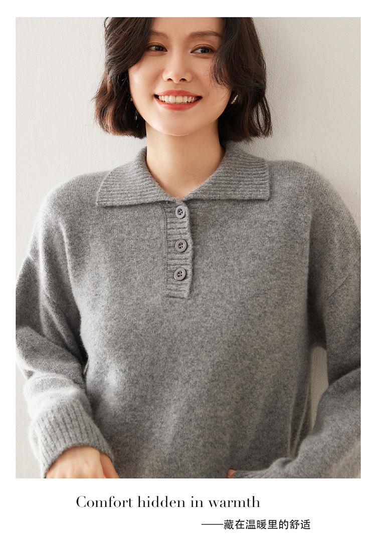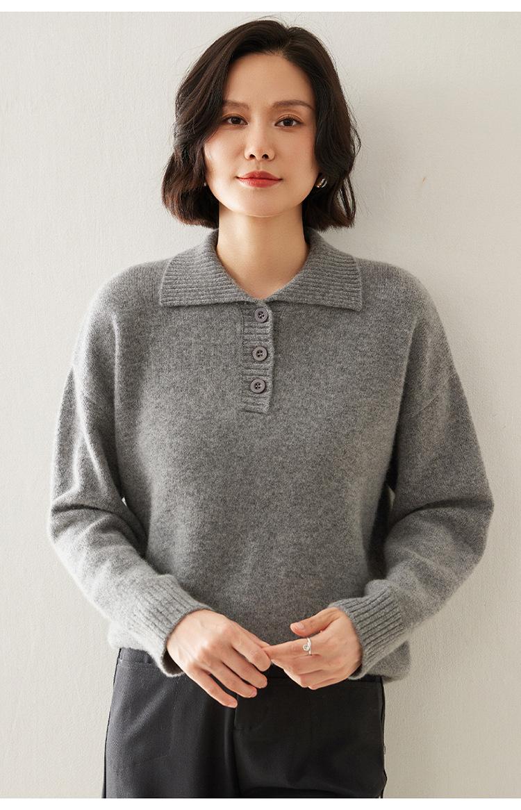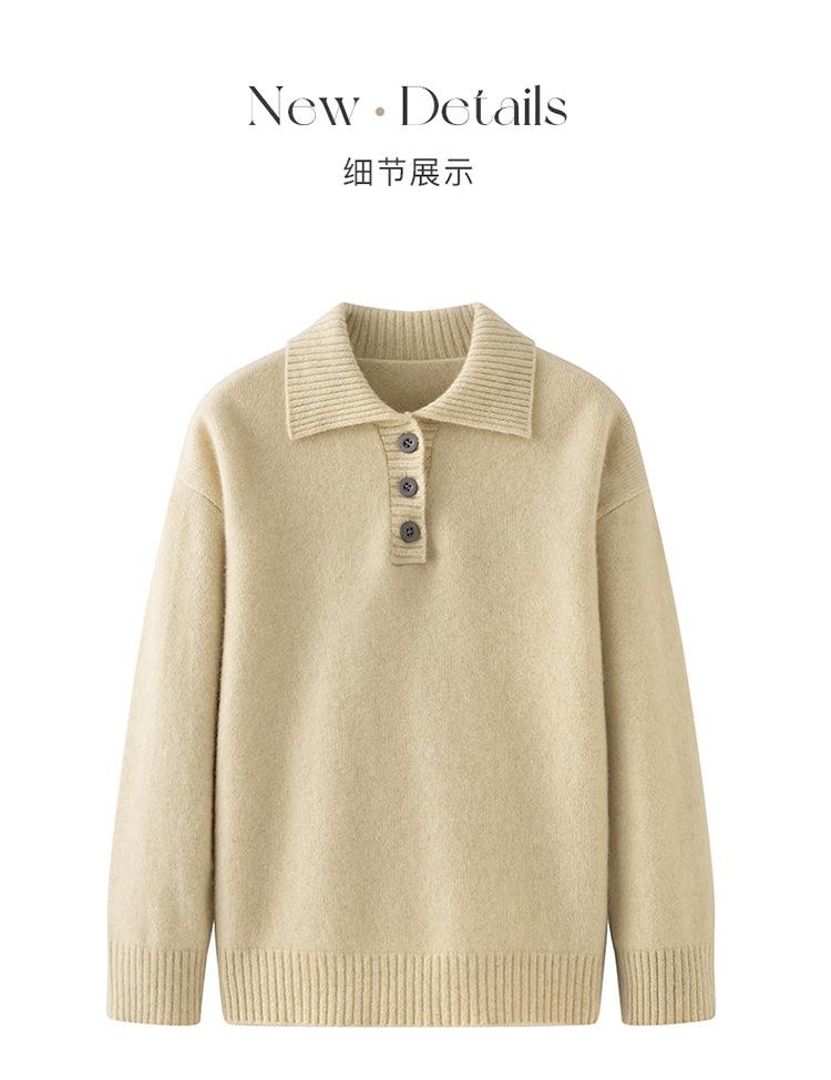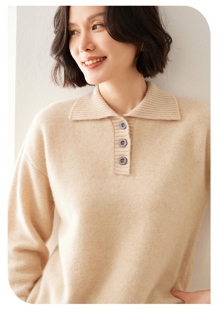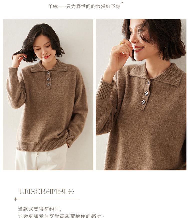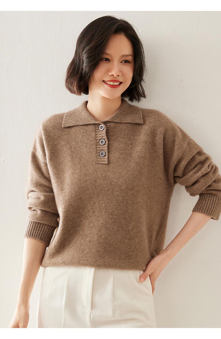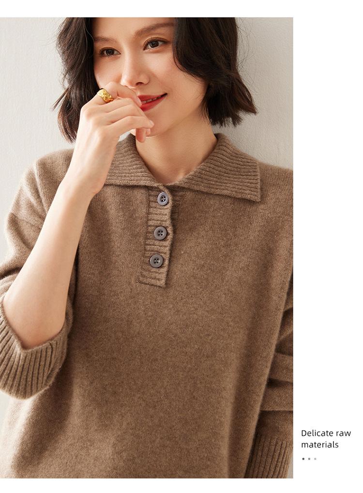 Suéter de cachemira con solapa gruesa, manga larga, nuevo botón, suelto, color sólido, camisa básica combinable para otoño e invierno 2024