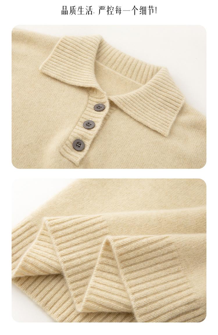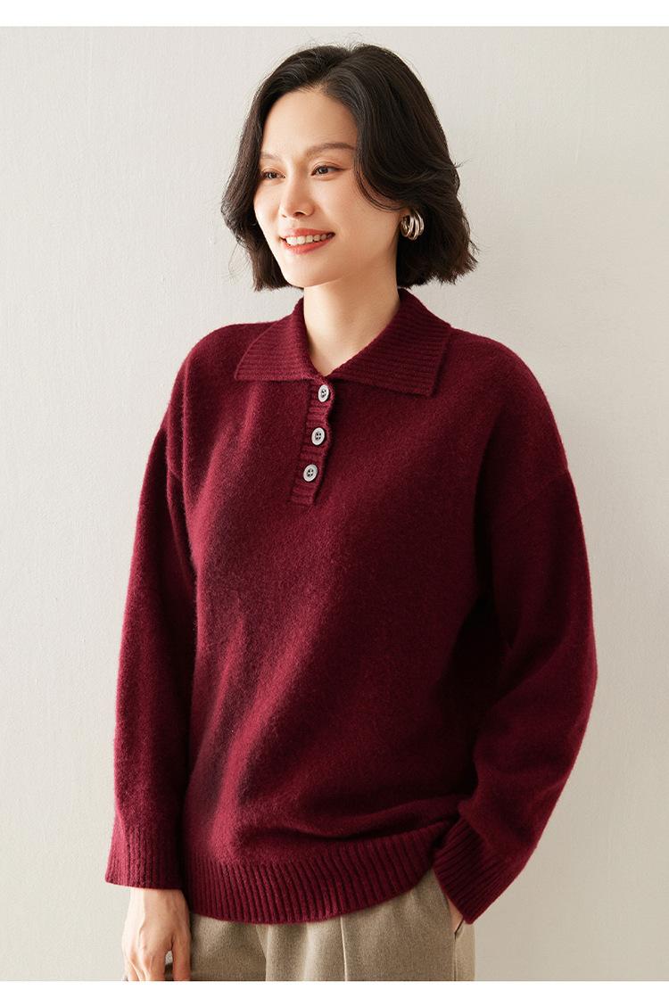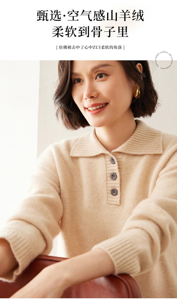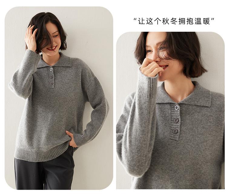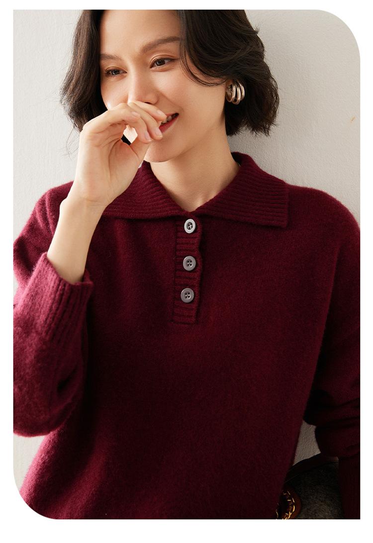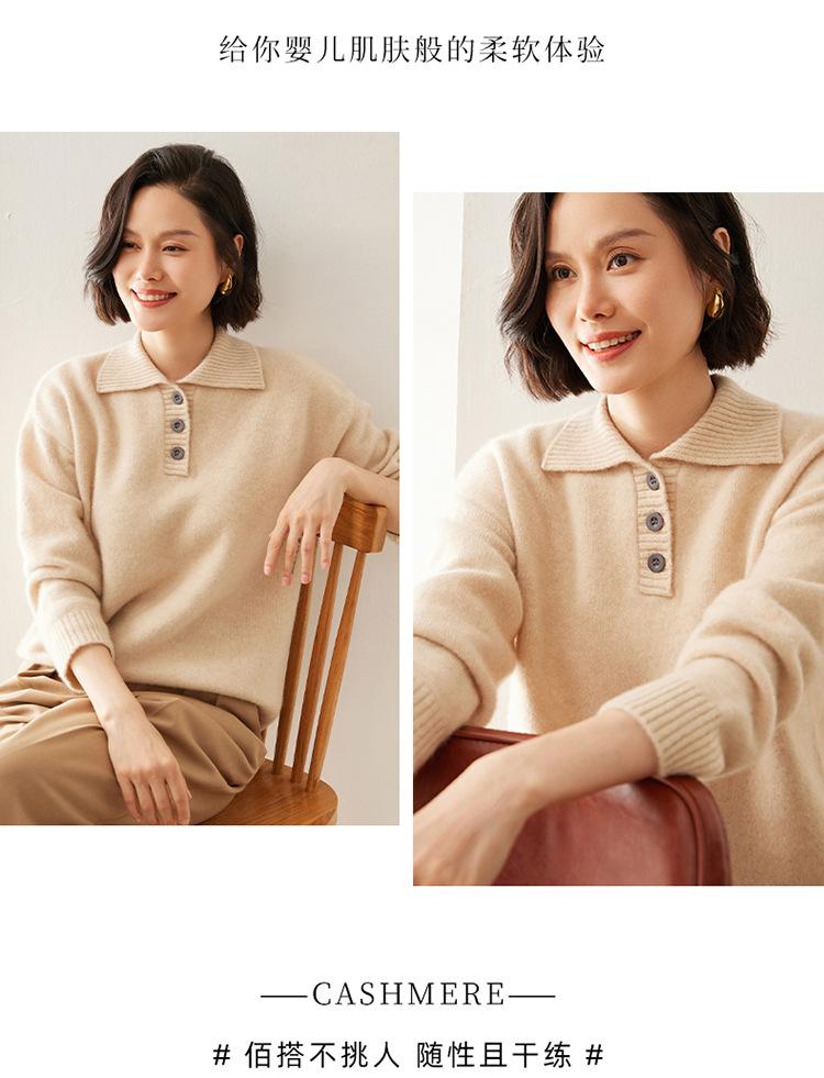 Suéter de cachemira con solapa gruesa, manga larga, nuevo botón, suelto, color sólido, camisa básica combinable para otoño e invierno 2024