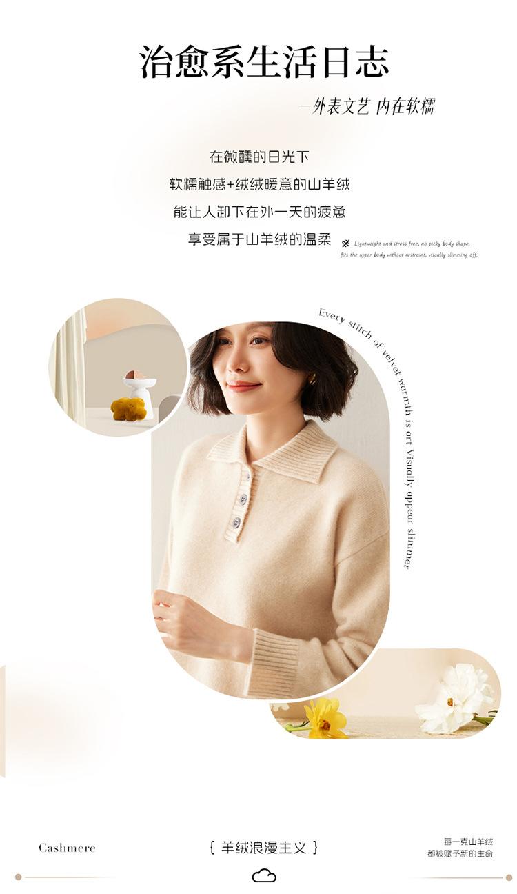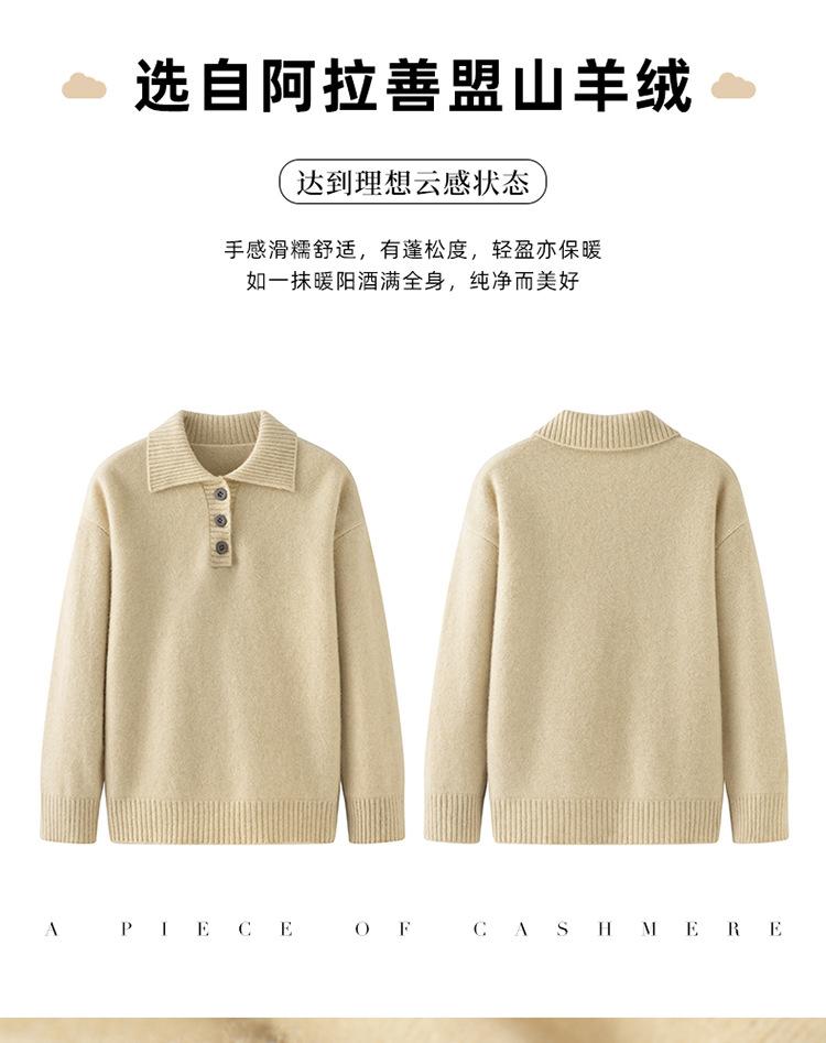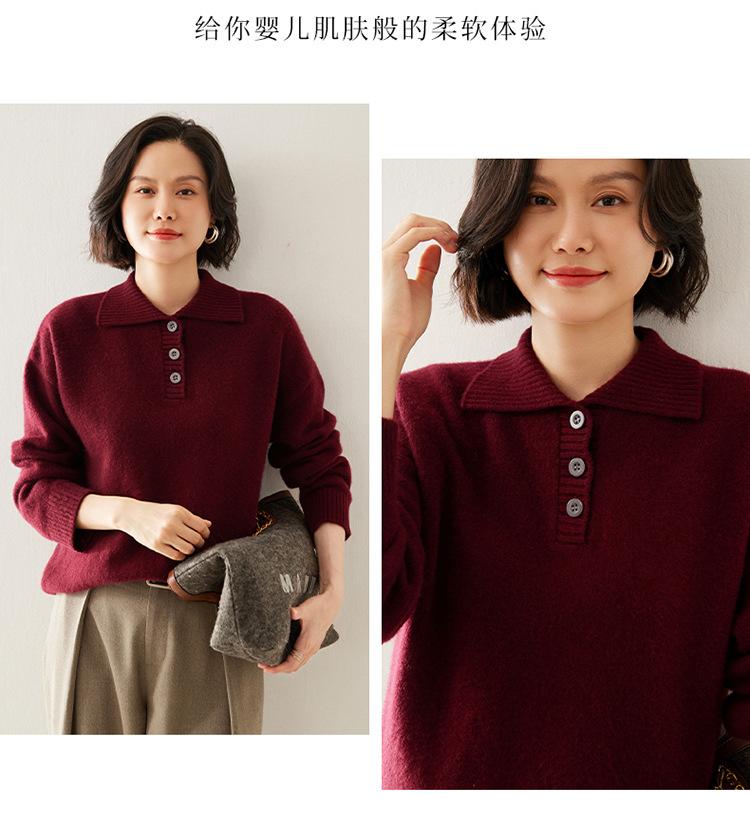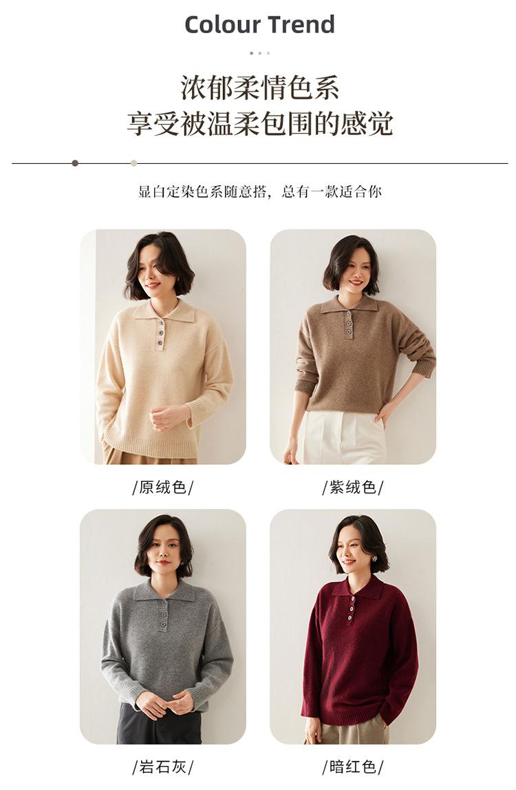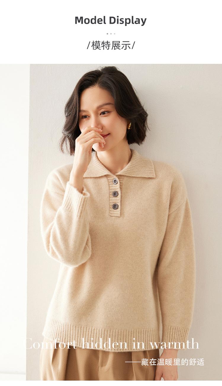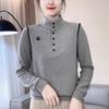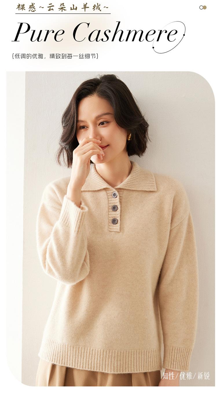 Suéter de cachemira con solapa gruesa, manga larga, nuevo botón, suelto, color sólido, camisa básica combinable para otoño e invierno 2024