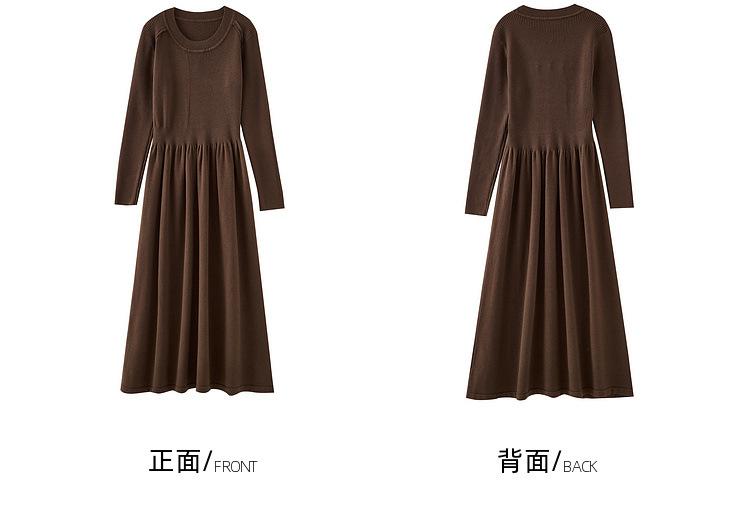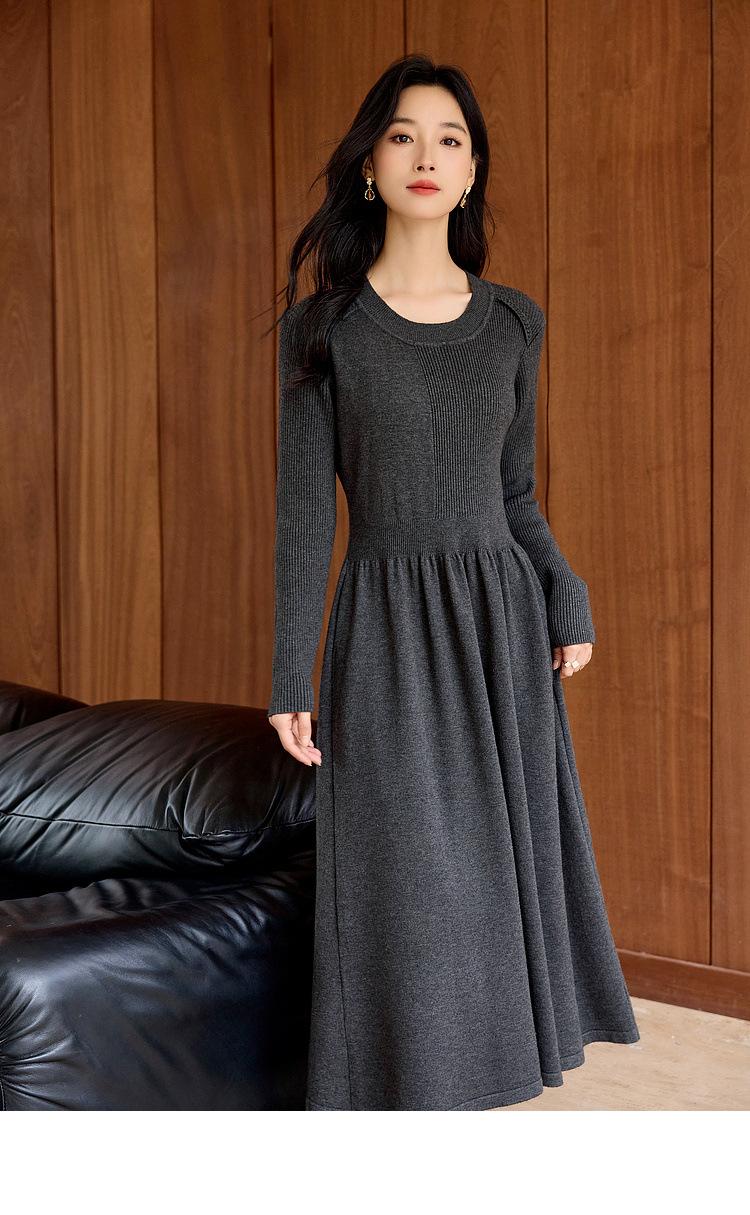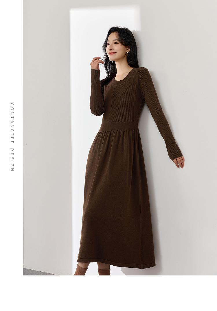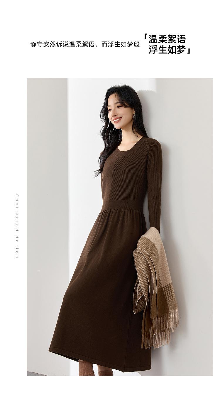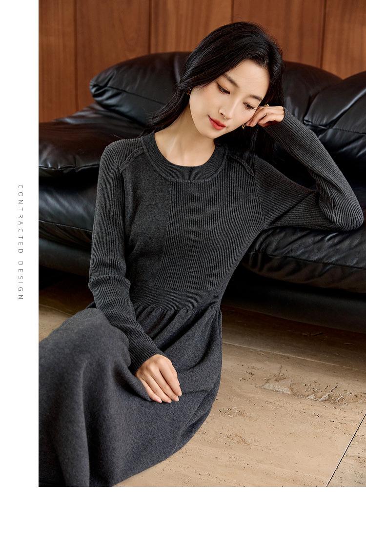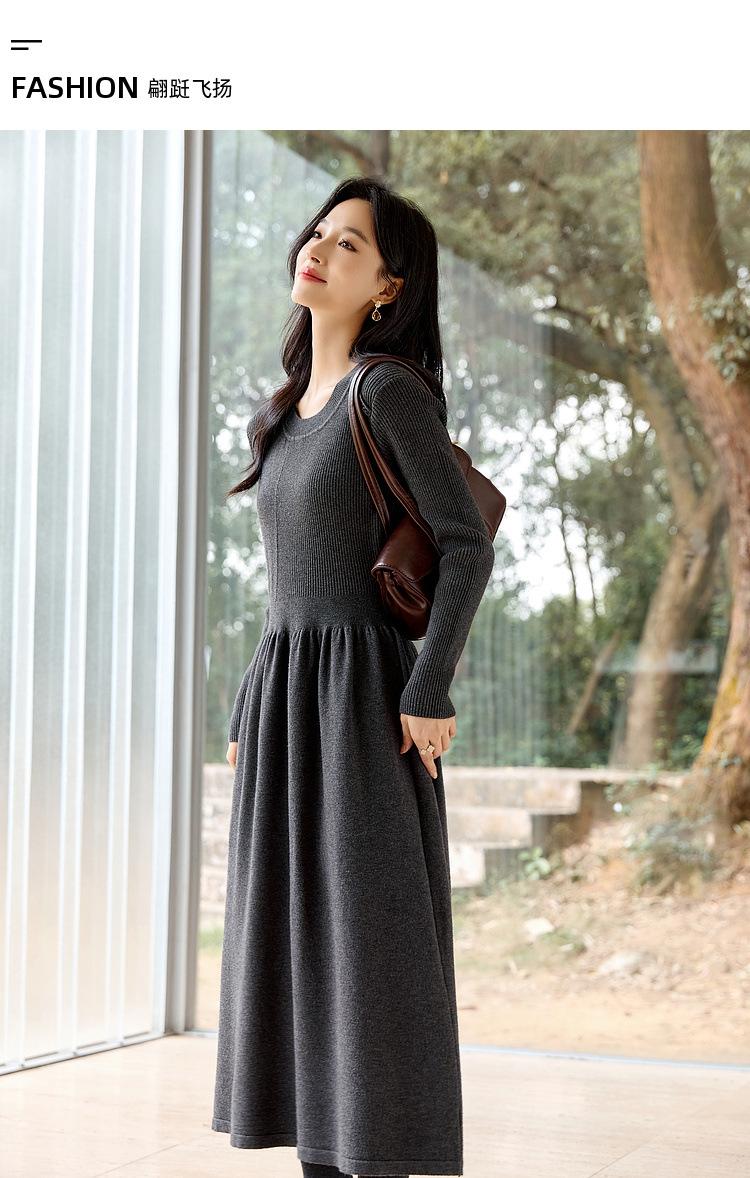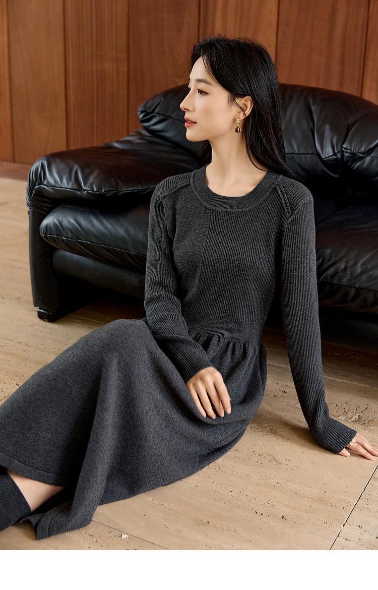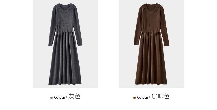 Zhen Xi Nuevo Vestido Suéter de Base Casual Holgado de Moda de Cuello Redondo Acanalado de Manga Larga para Mujer DQ290