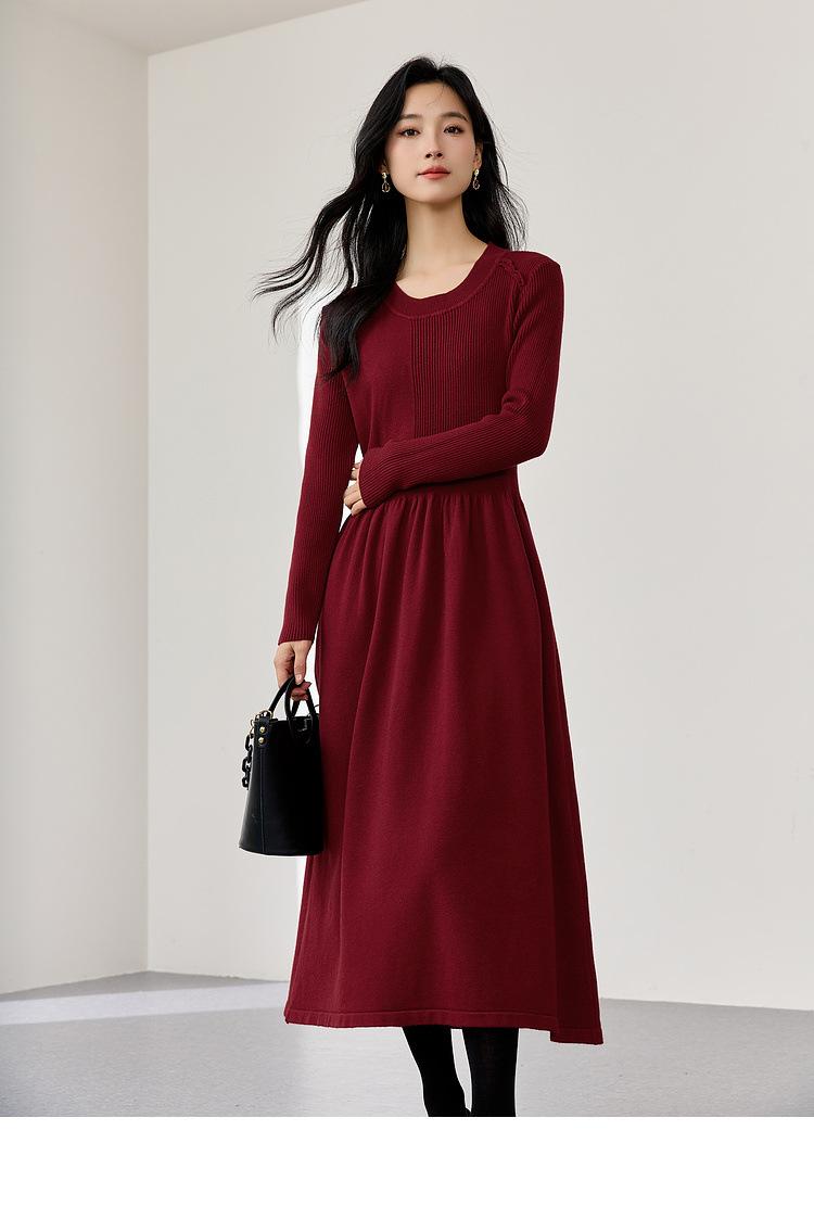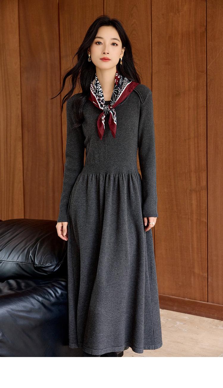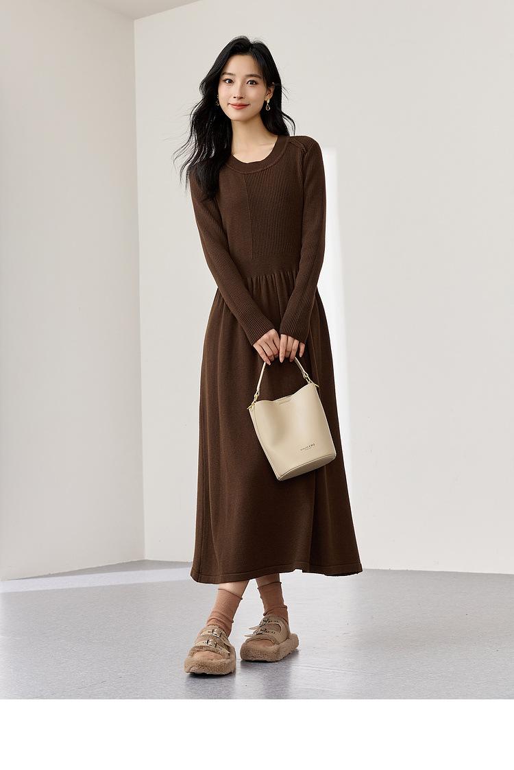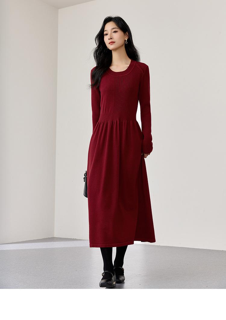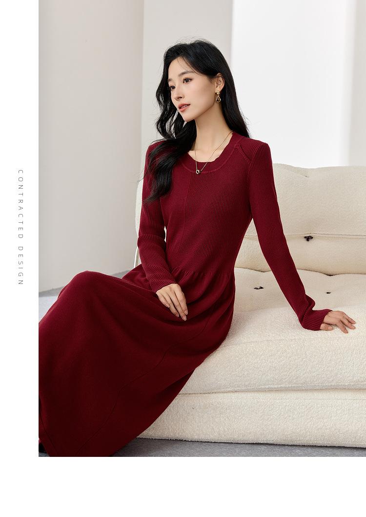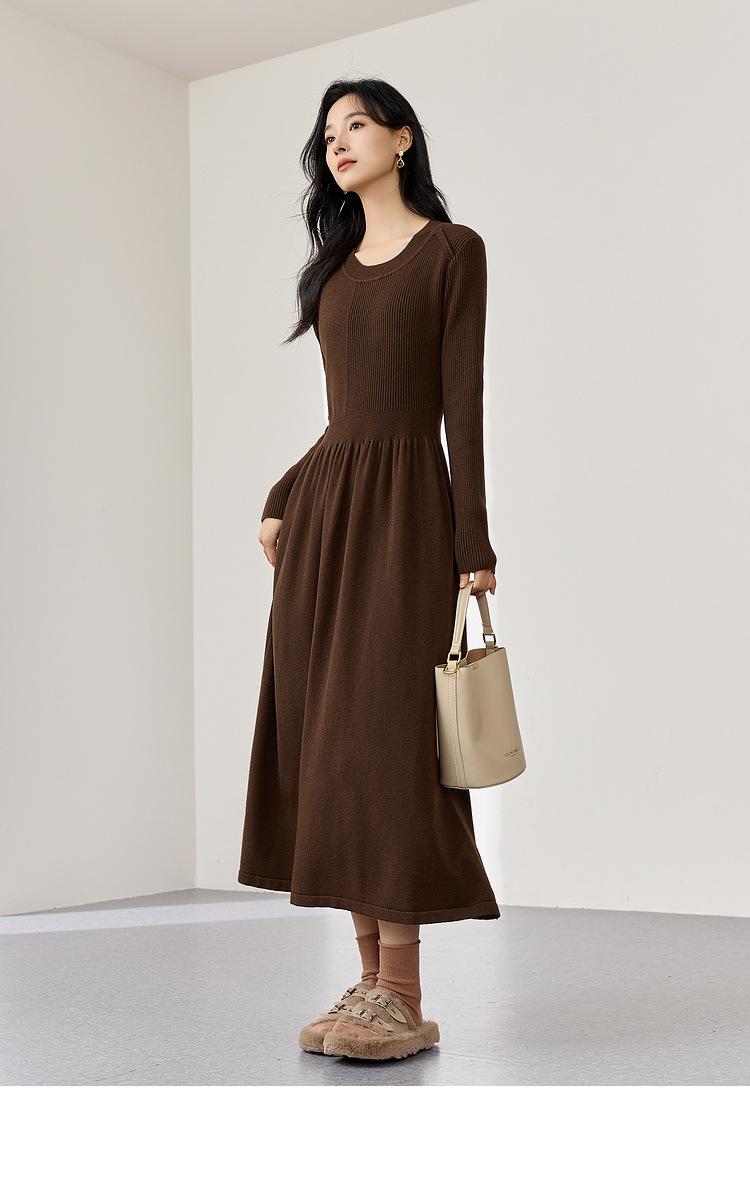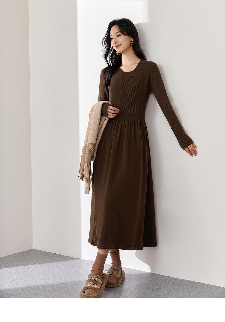 Zhen Xi Nuevo Vestido Suéter de Base Casual Holgado de Moda de Cuello Redondo Acanalado de Manga Larga para Mujer DQ290