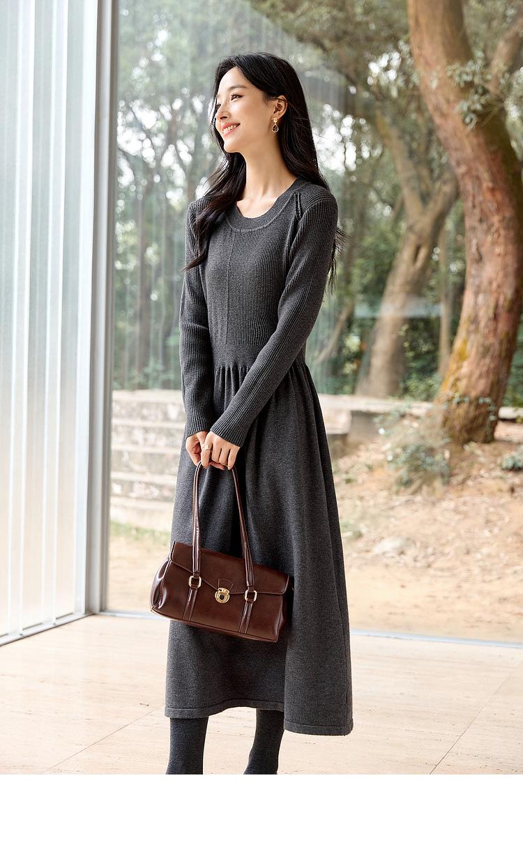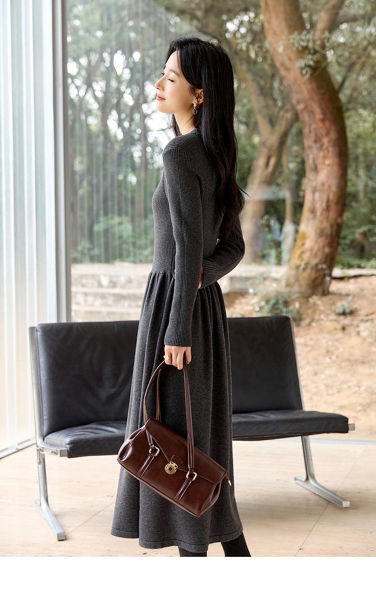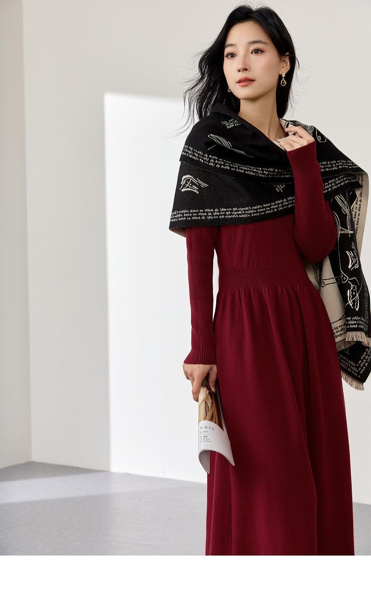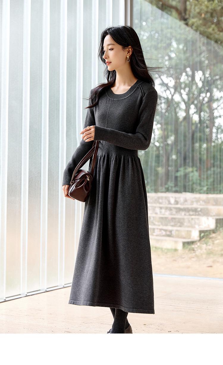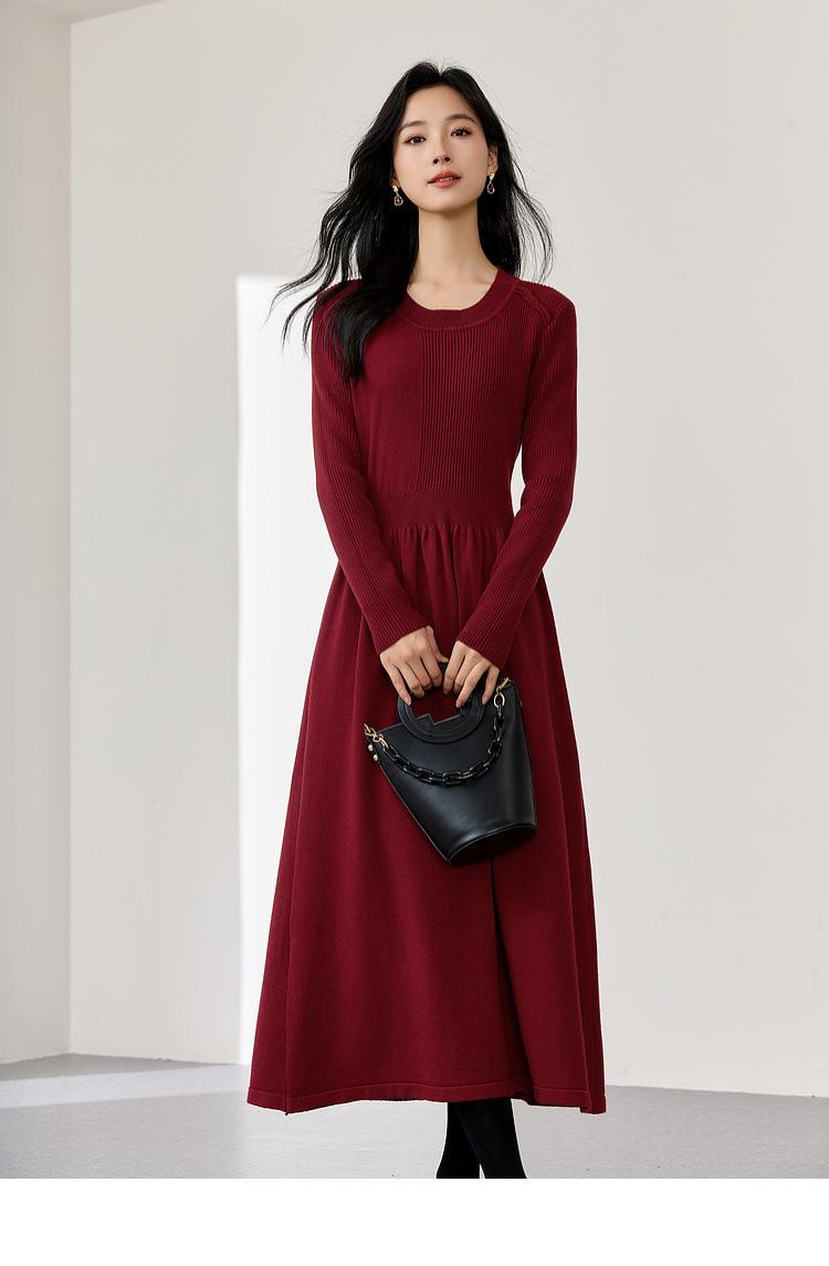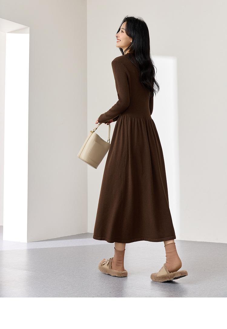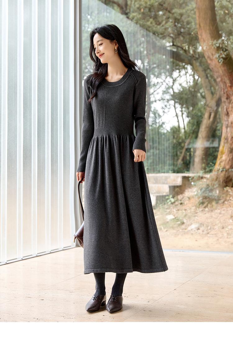Zhen Xi Nuevo Vestido Suéter de Base Casual Holgado de Moda de Cuello Redondo Acanalado de Manga Larga para Mujer DQ290