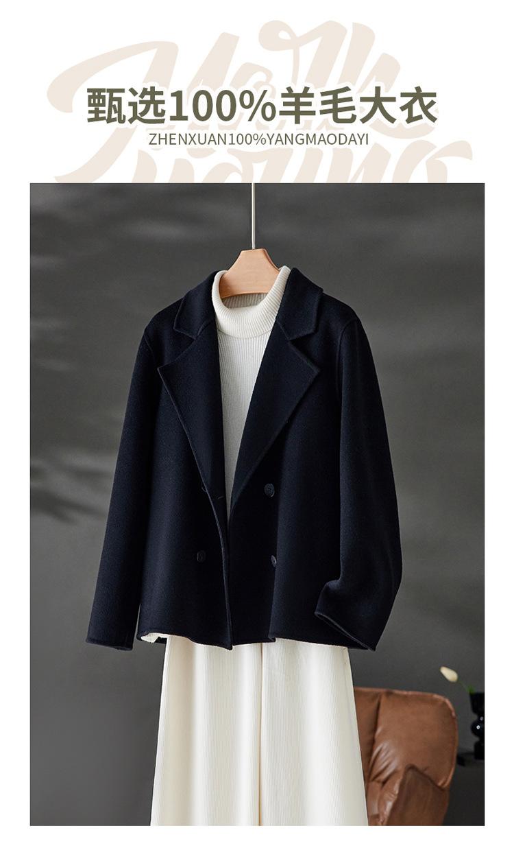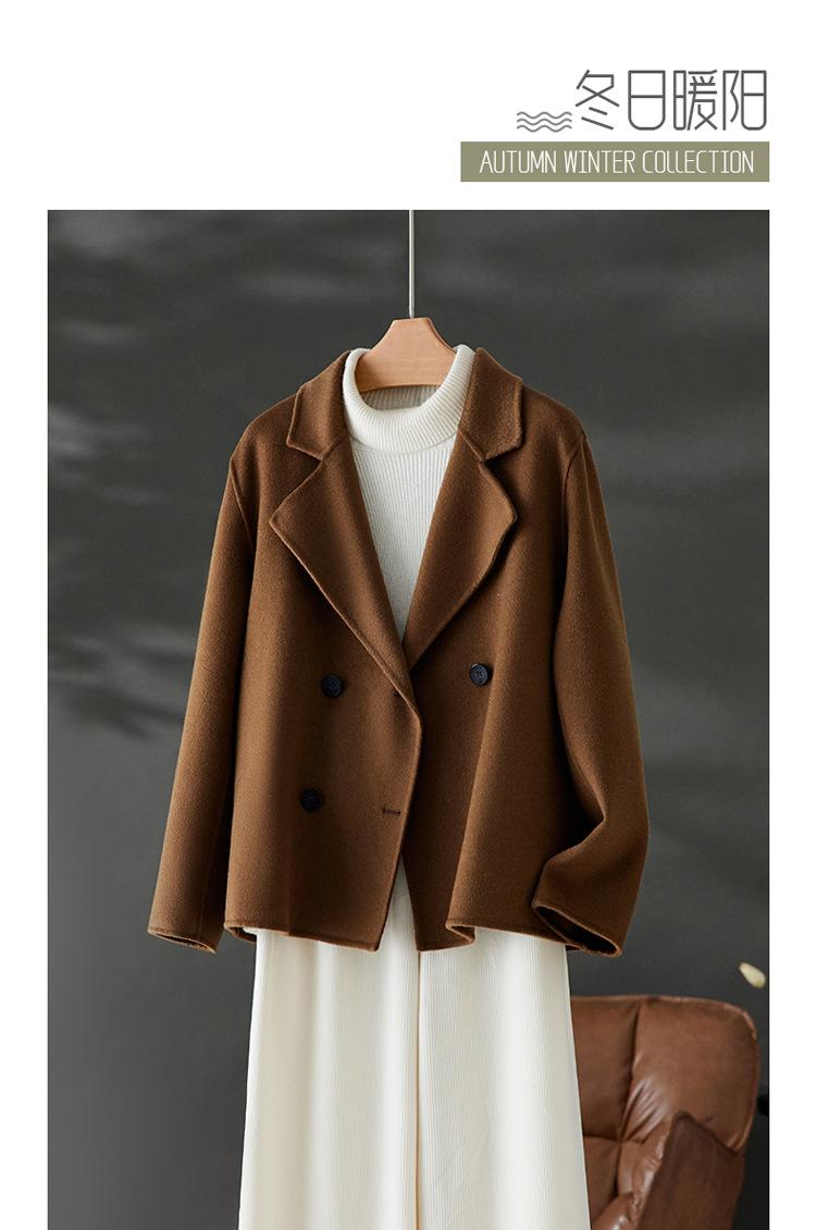 Abrigo de cachemira de doble cara para mujer, traje pequeño de otoño e invierno, abrigo de lana cruzado pequeño, holgado, estilo coreano