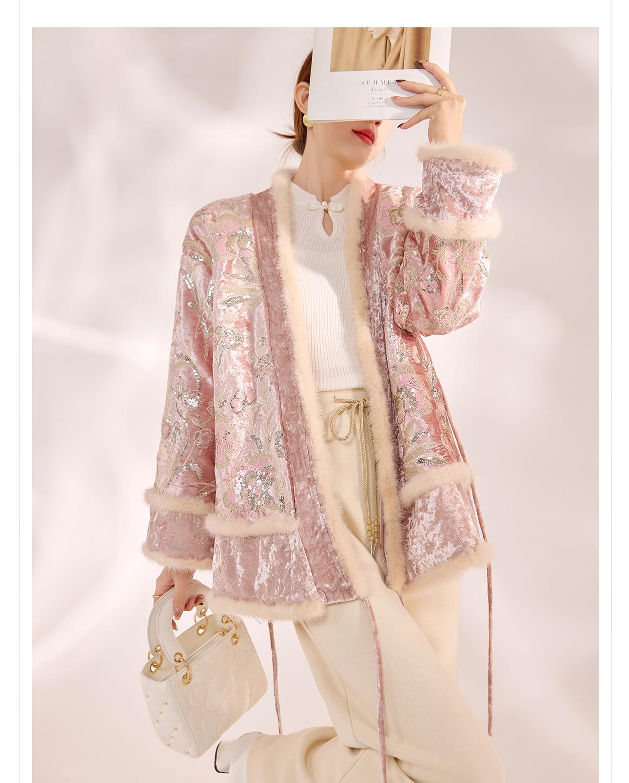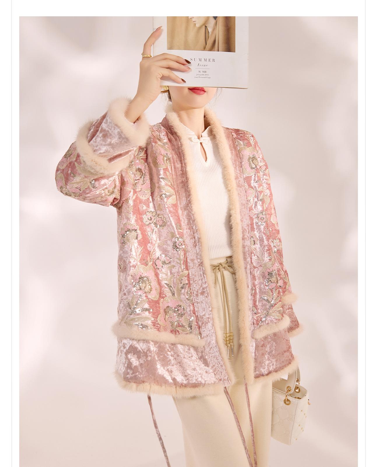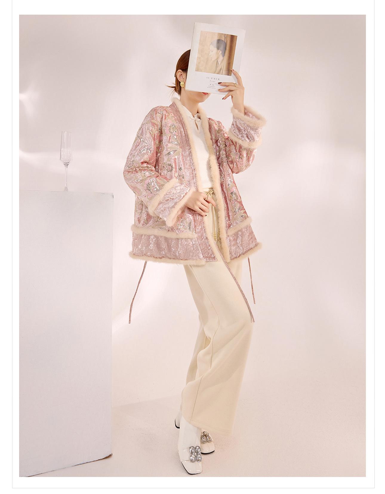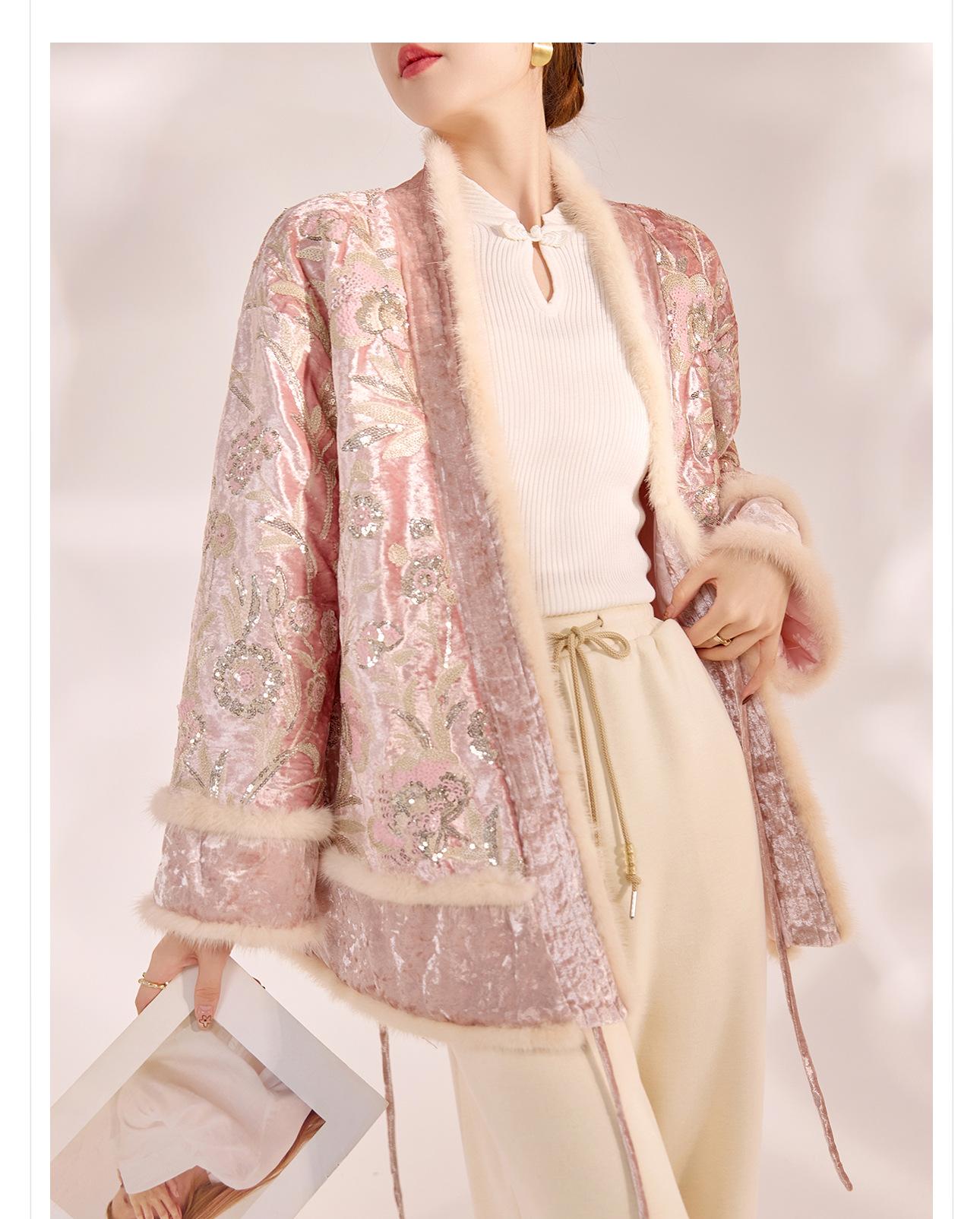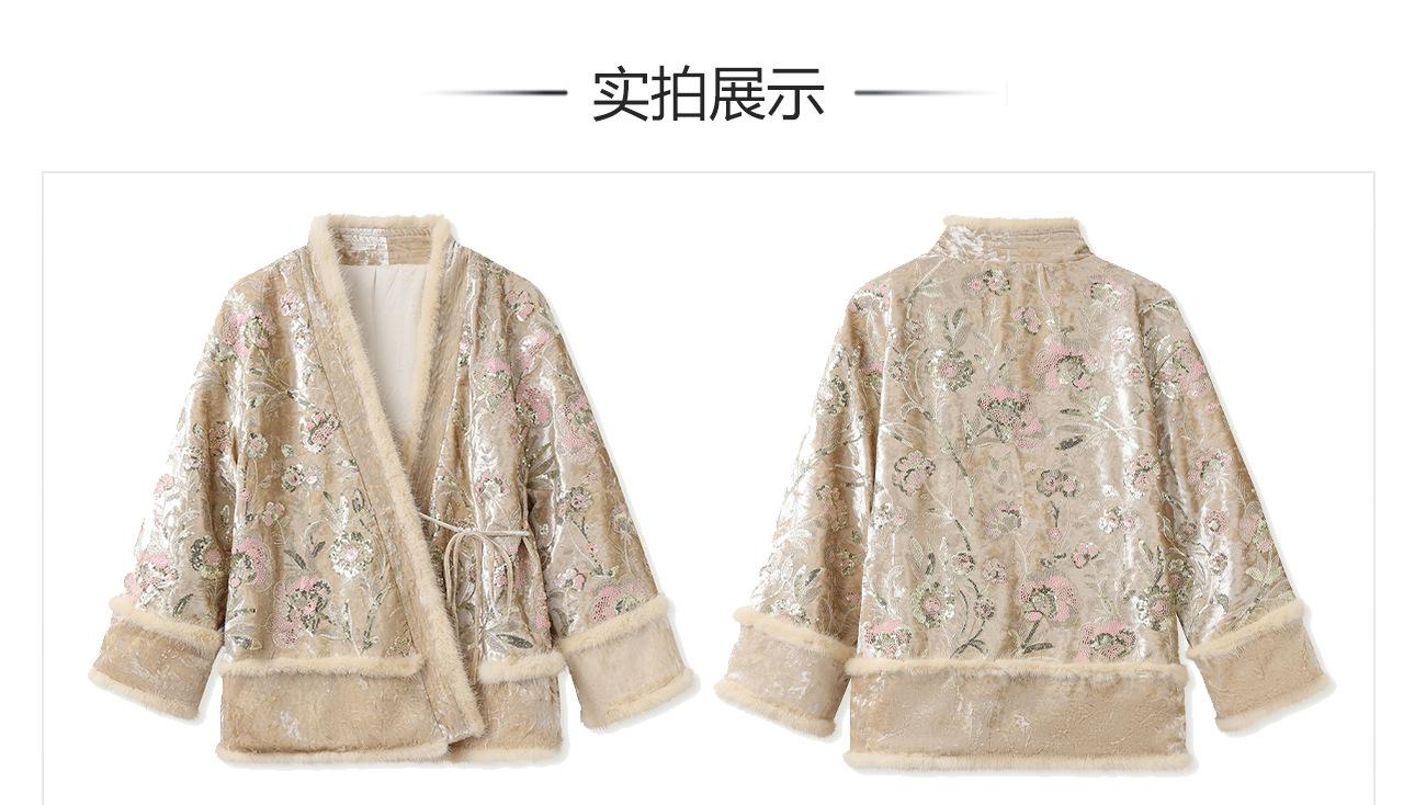 Invierno 2025 Nuevo Estilo Estilo Nacional Lentejuelas Bordadas Diseño de Empalme de Piel Nueva Chaqueta de Algodón Chinoiserie para Mujer Mx128