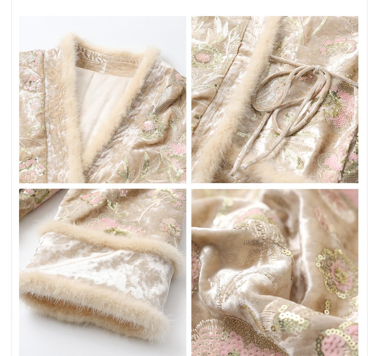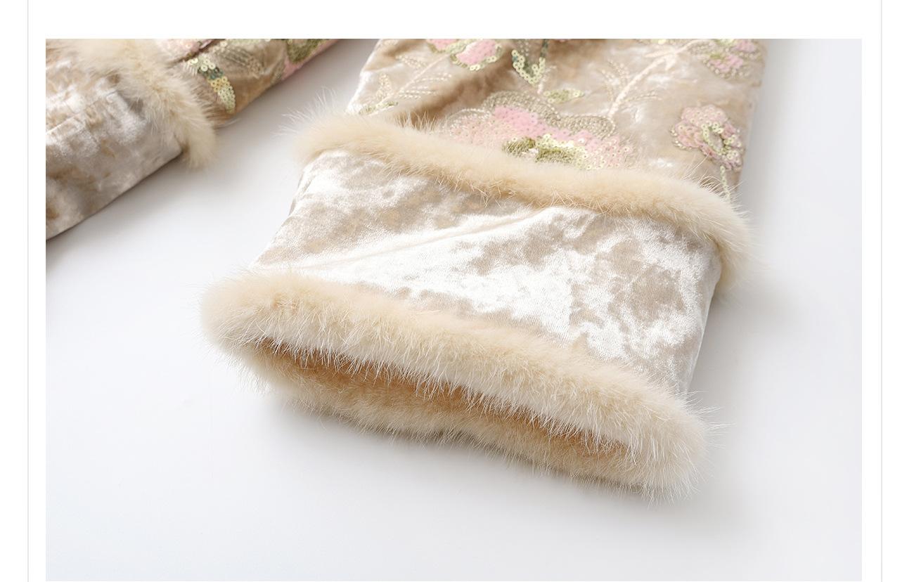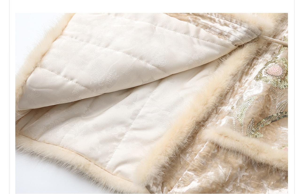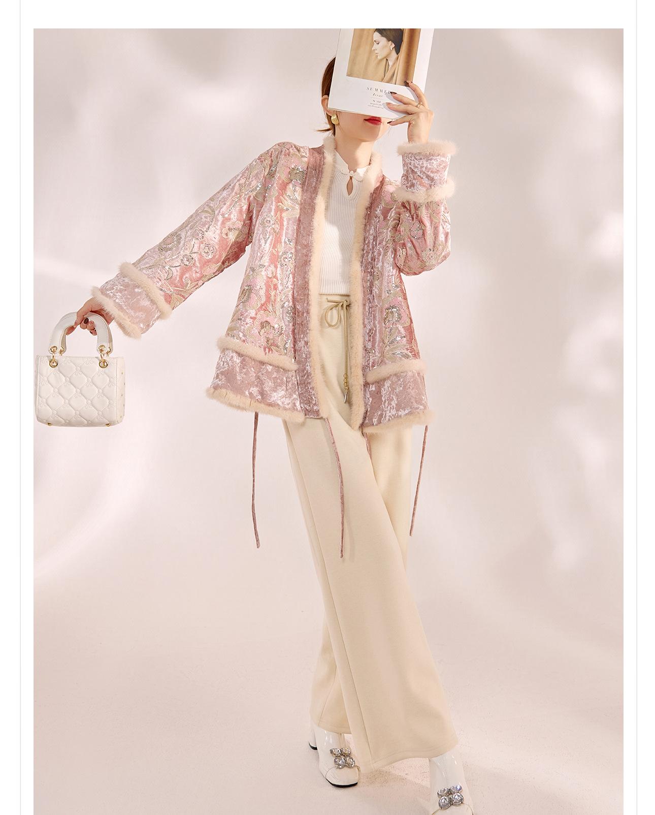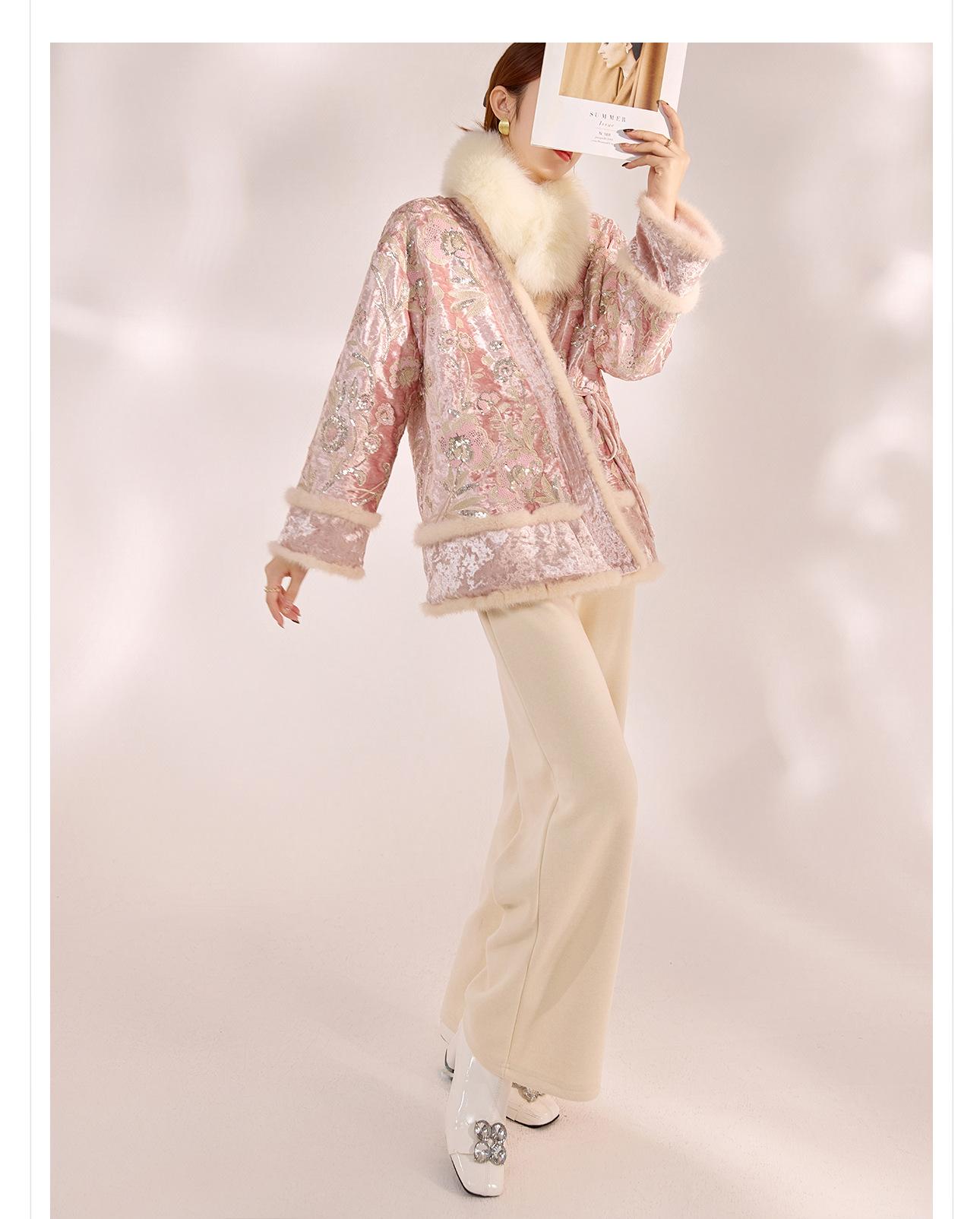 Invierno 2025 Nuevo Estilo Estilo Nacional Lentejuelas Bordadas Diseño de Empalme de Piel Nueva Chaqueta de Algodón Chinoiserie para Mujer Mx128