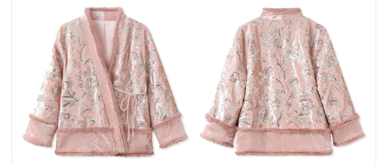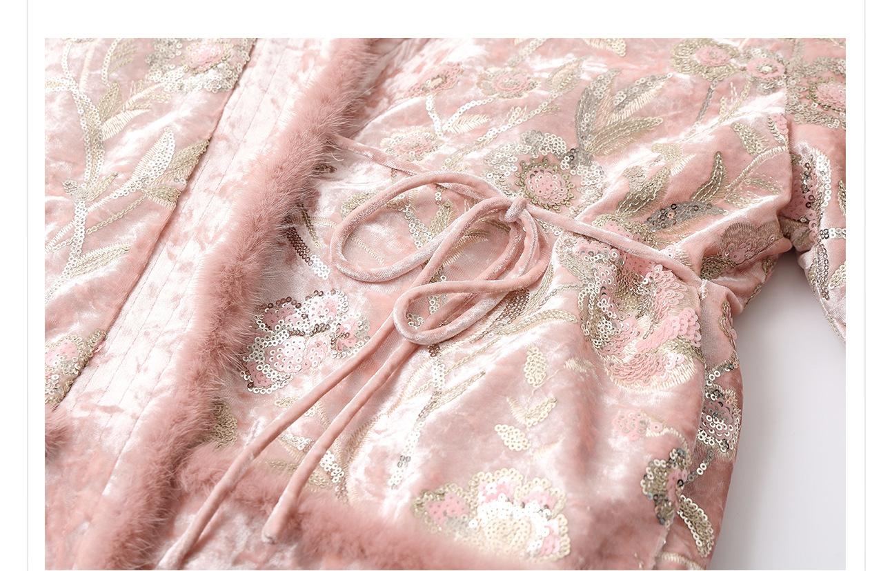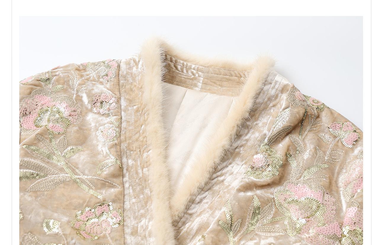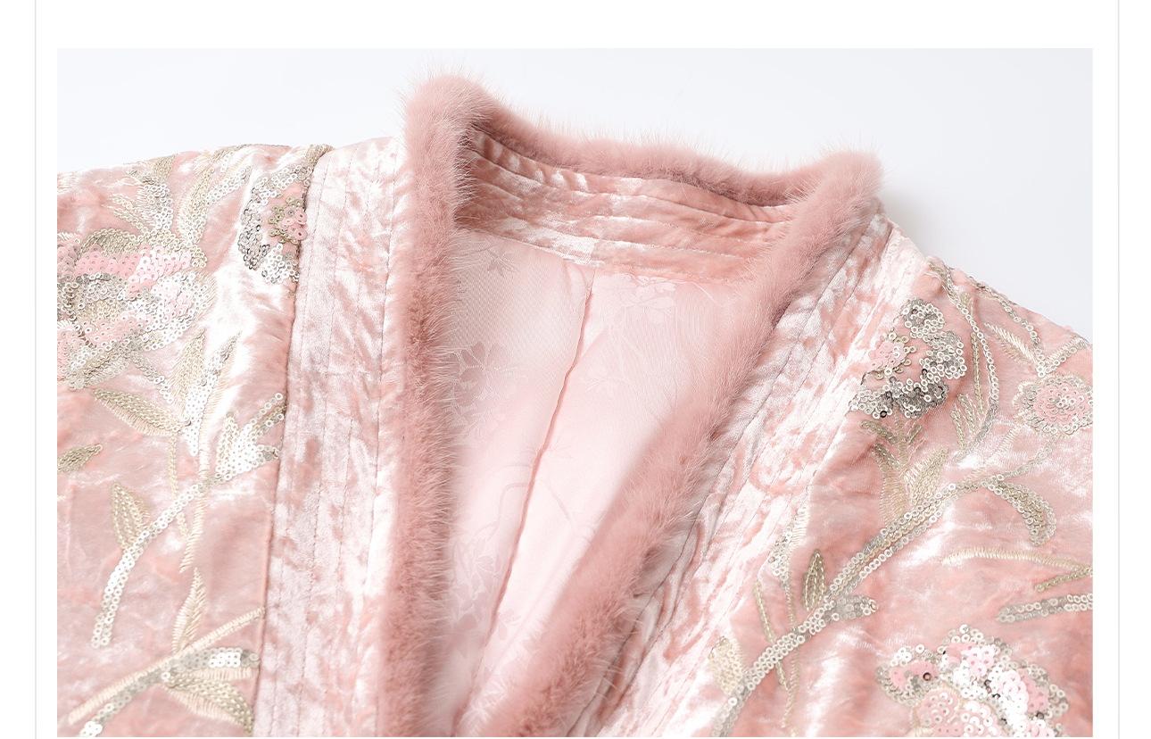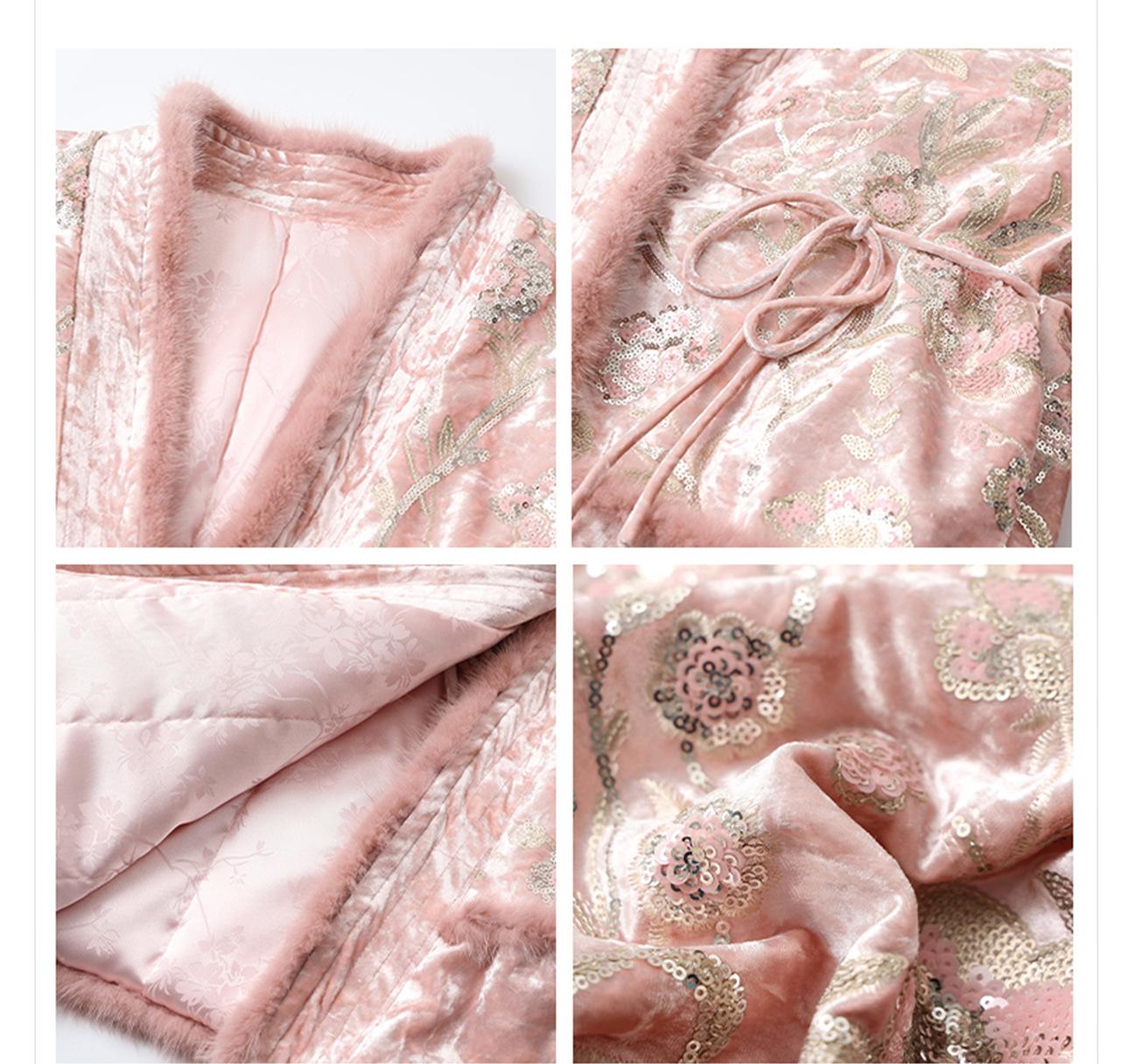 Invierno 2025 Nuevo Estilo Estilo Nacional Lentejuelas Bordadas Diseño de Empalme de Piel Nueva Chaqueta de Algodón Chinoiserie para Mujer Mx128