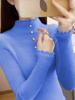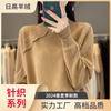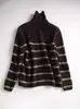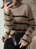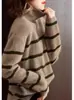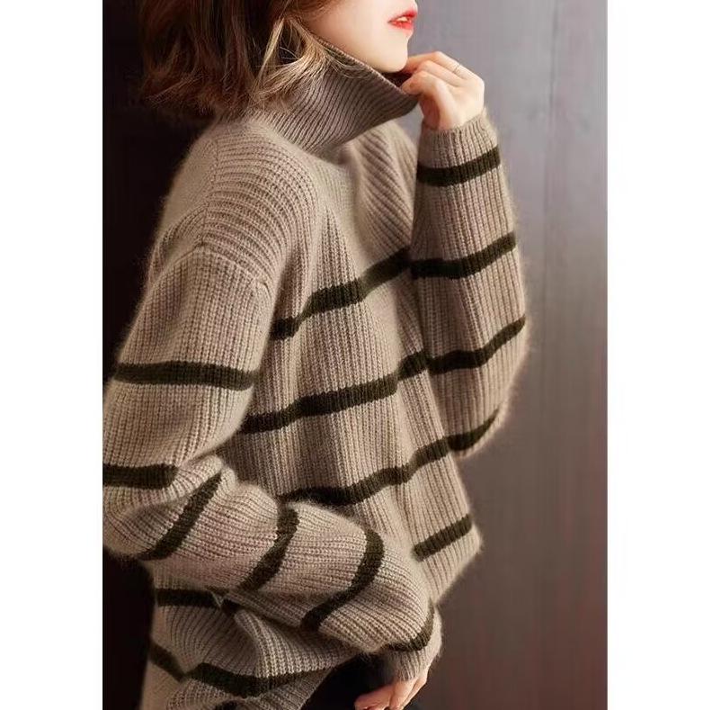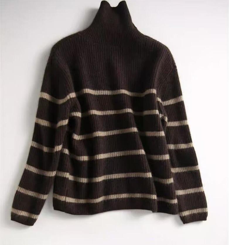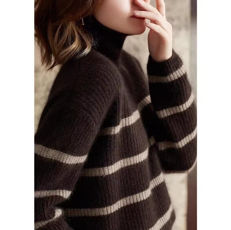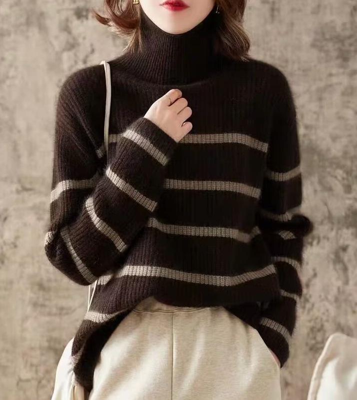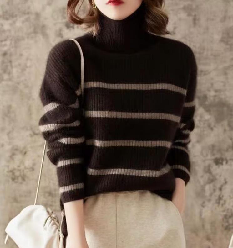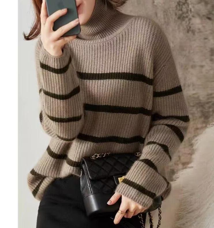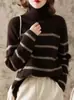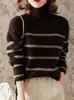 Suéter de punto de cuello alto elegante y holgado para mujer, otoño e invierno 2024, nuevo jersey retro de alta gama con contraste de color, suéter grueso de moda