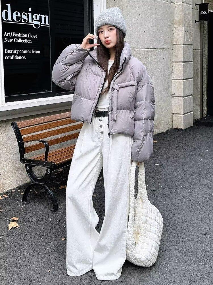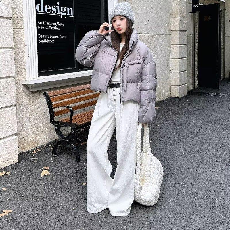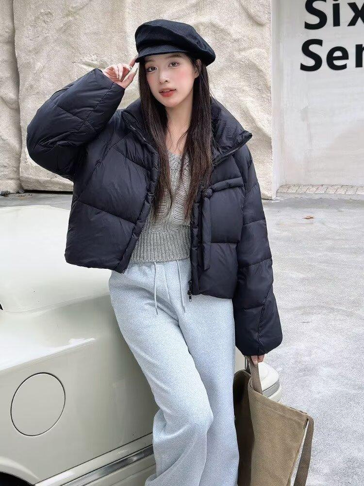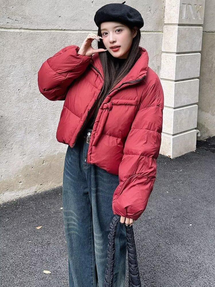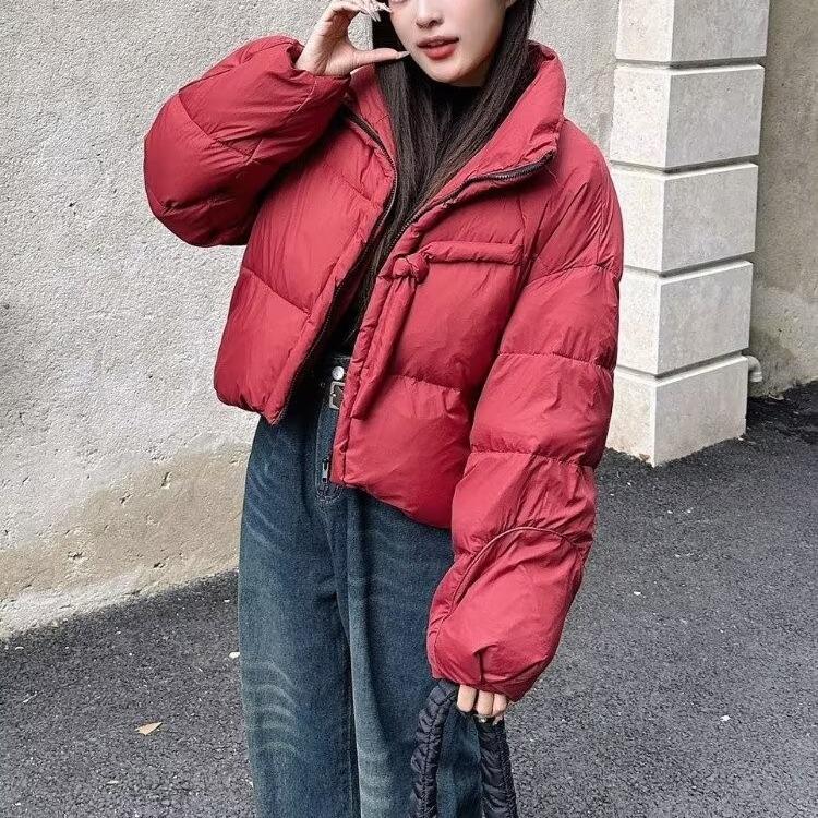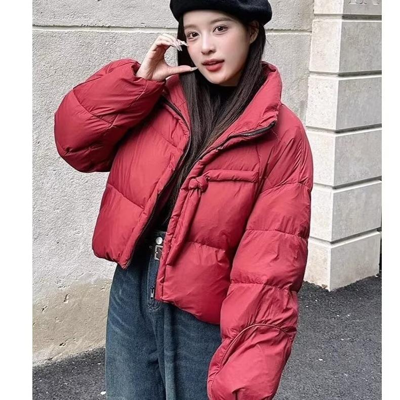 Chaqueta corta acolchada de algodón roja estilo Hong Kong para mujer, otoño e invierno 2024, nueva chaqueta cálida de pan pequeño, tendencia de chaqueta acolchada de algodón