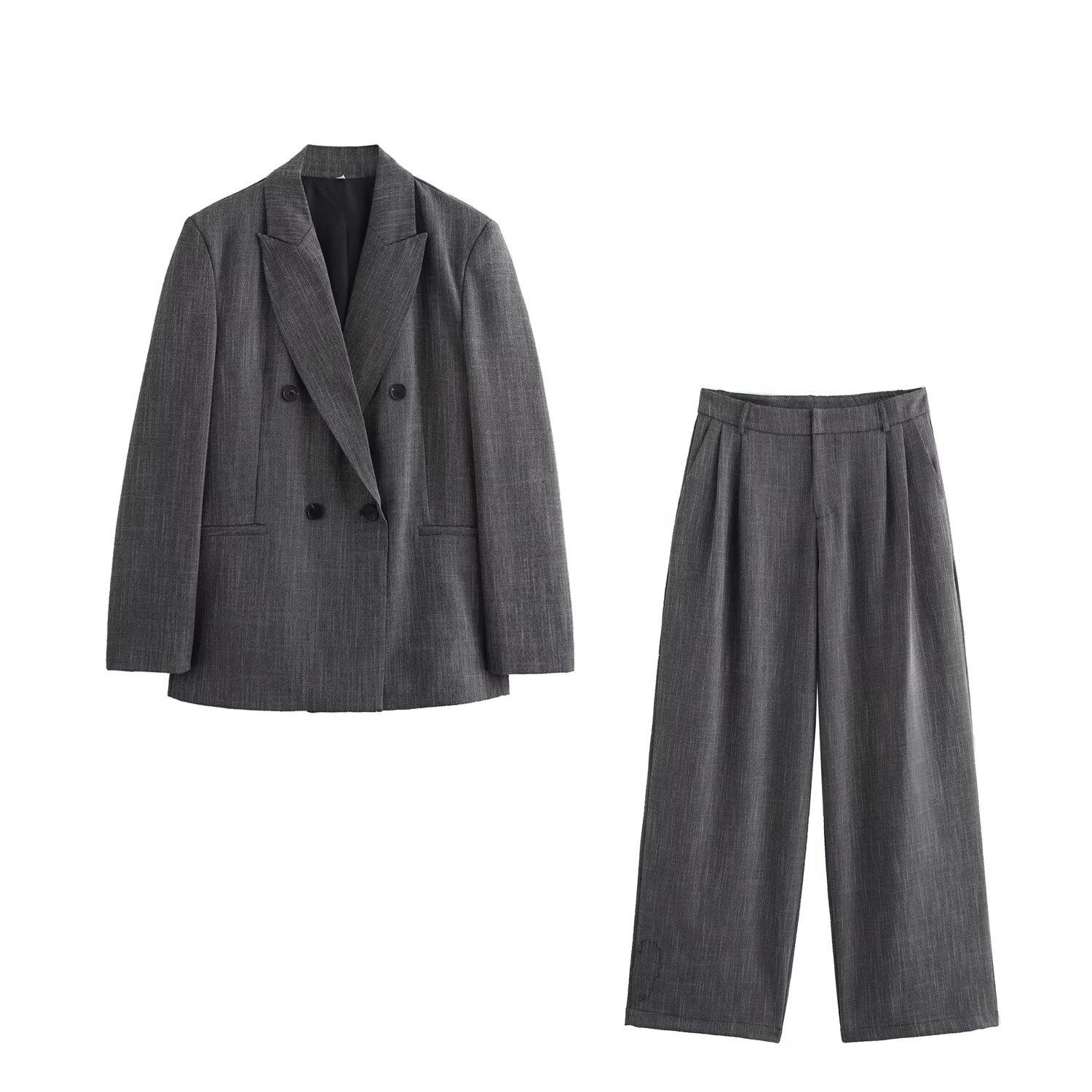 Chaqueta de traje de estilo europeo y americano para mujer, otoño e invierno 2024, con pantalones anchos plisados, estilo europeo y americano, comercio exterior transfronterizo de Amazon