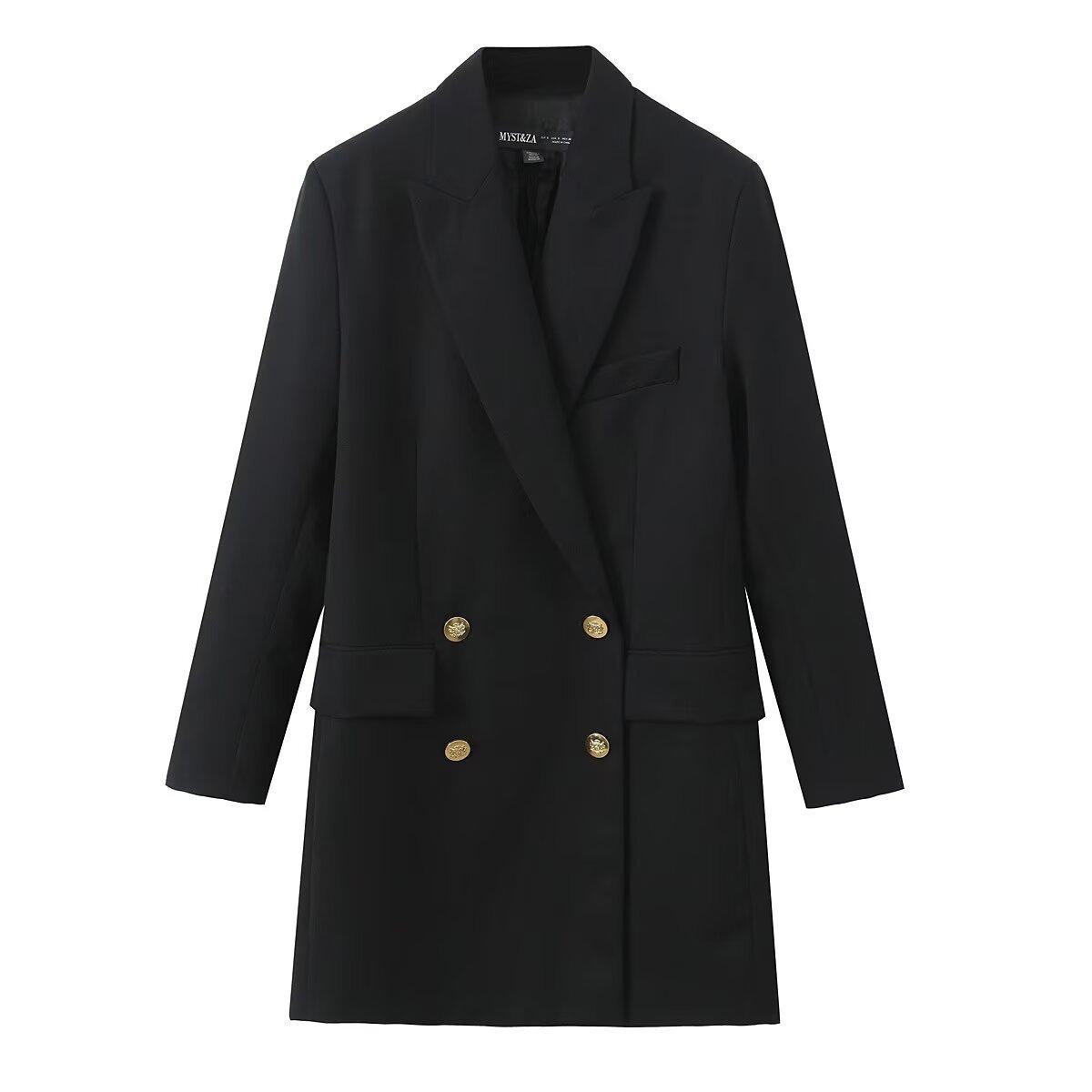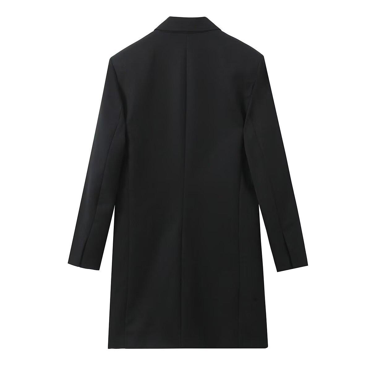 Nuevo Abrigo de Traje de Mujer Europeo y Americano Transfronterizo, Sencillo, a la Moda, de Doble Botonadura, Holgado, Casual, Combinable con Todo, Largo Medio, Entallado