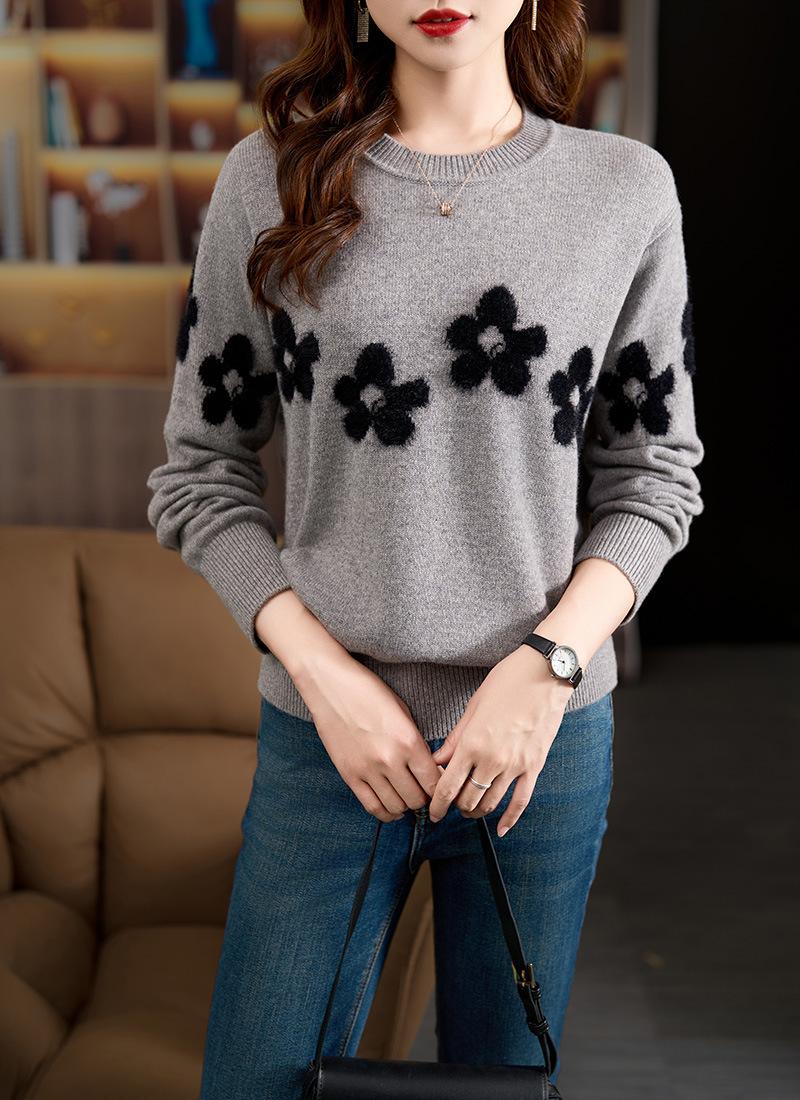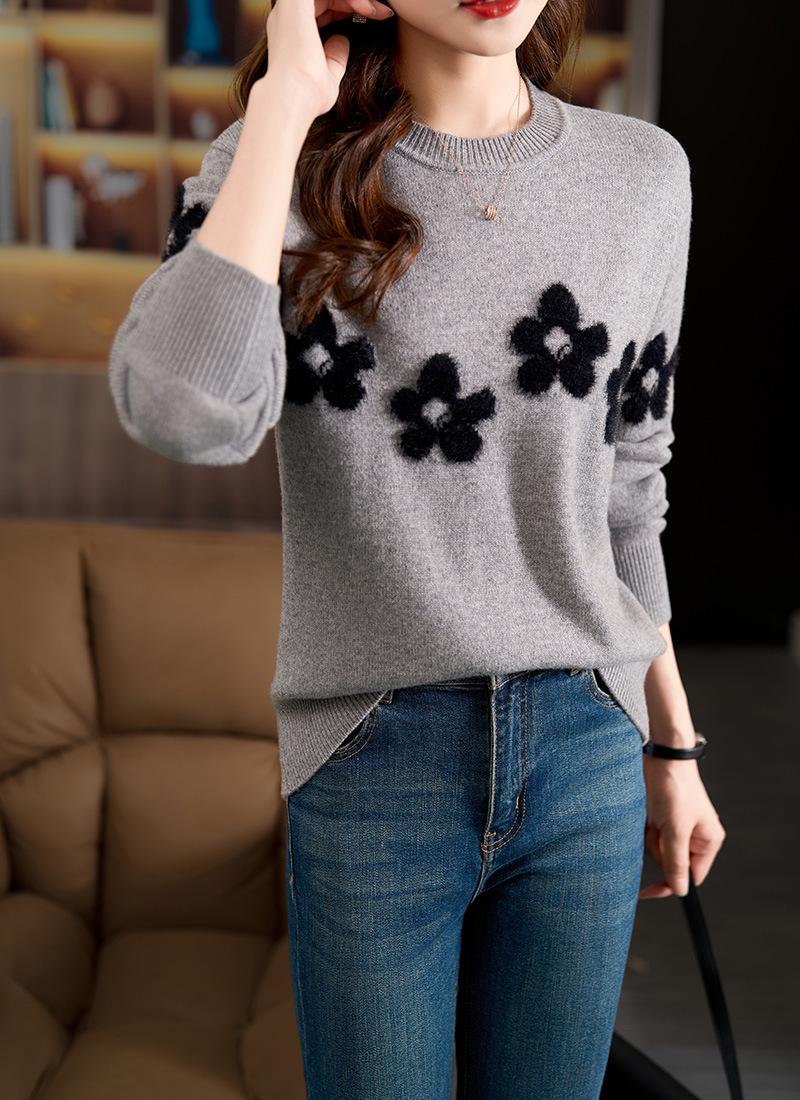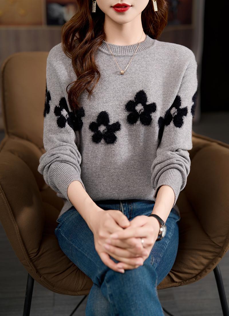Compra Suéter Floral de Alta Gama para Mujer, Otoño e Invierno 2025 Nuevo Outerwear Elegante, Top de Punto Holgado con Capa Base al por mayor en Joom.pro