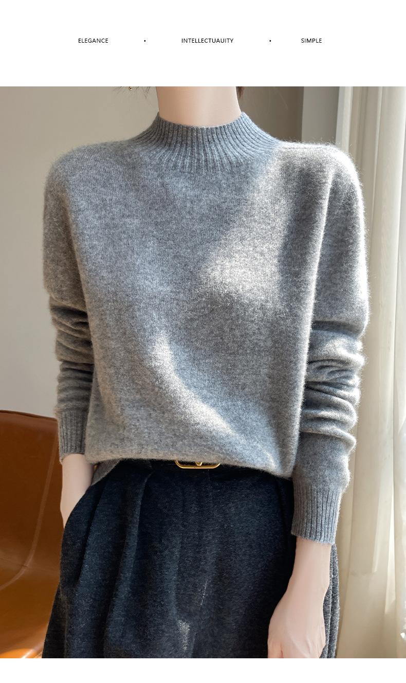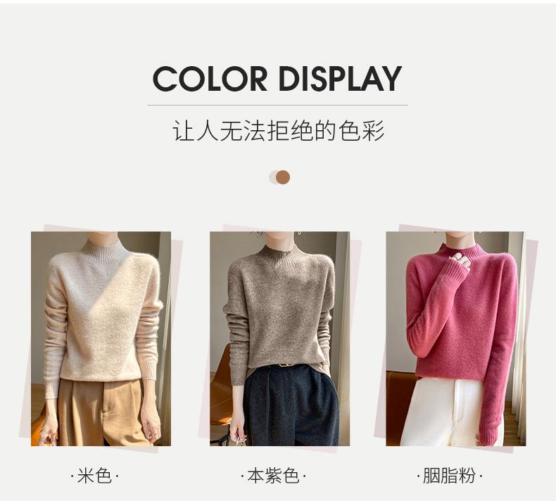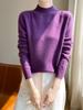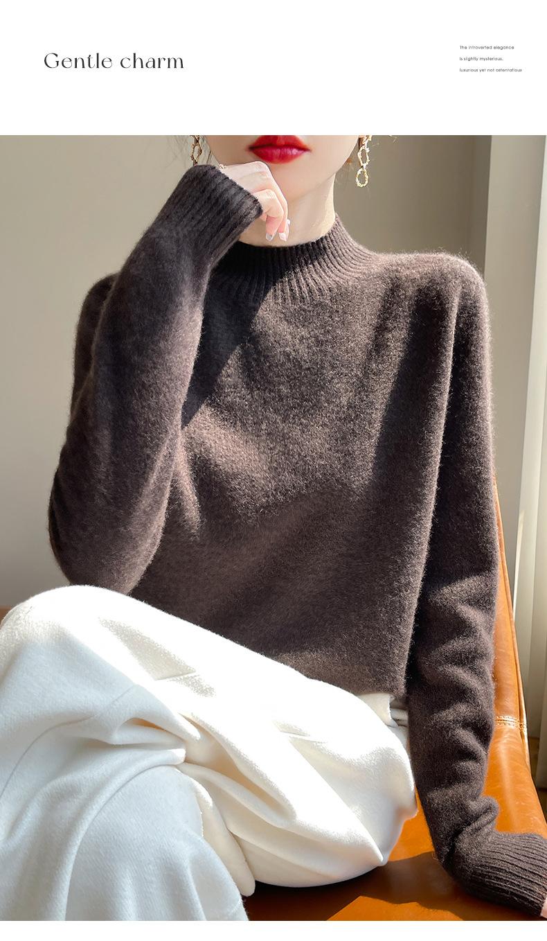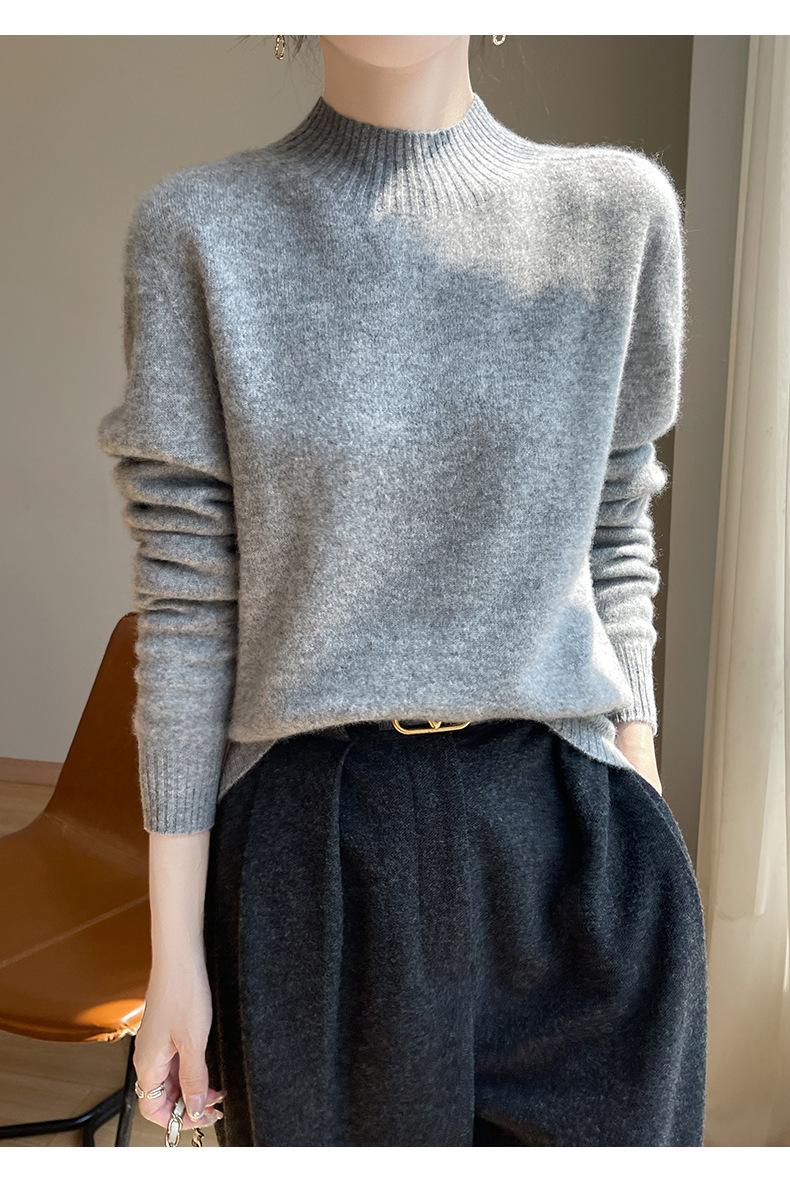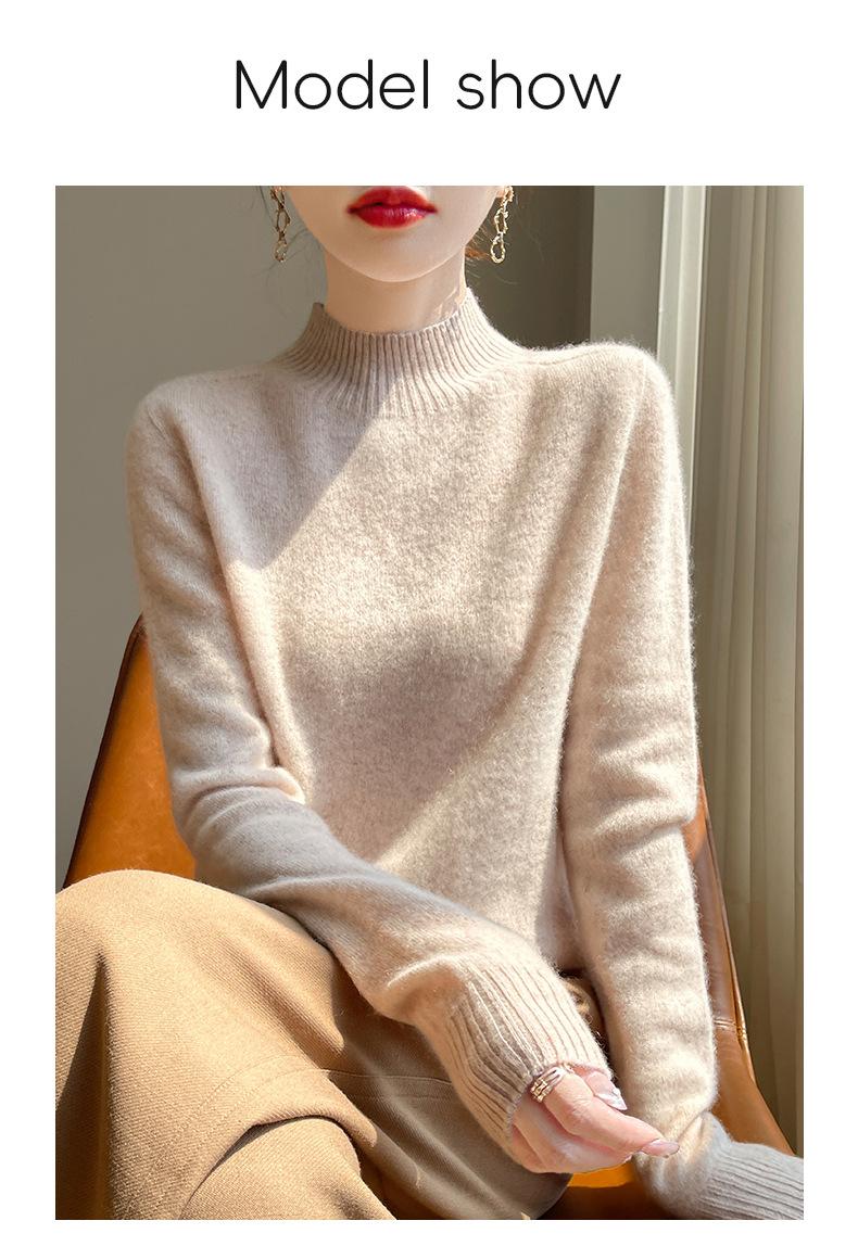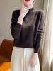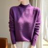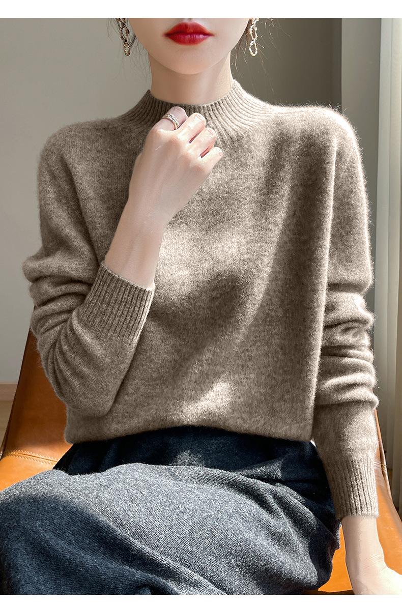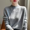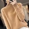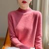 Ropa de primera línea de otoño e invierno, suéter 100% de lana pura, suéter de mujer de cuello medio alto, suéter de manga larga, suéter suelto, abrigo base de cachemira