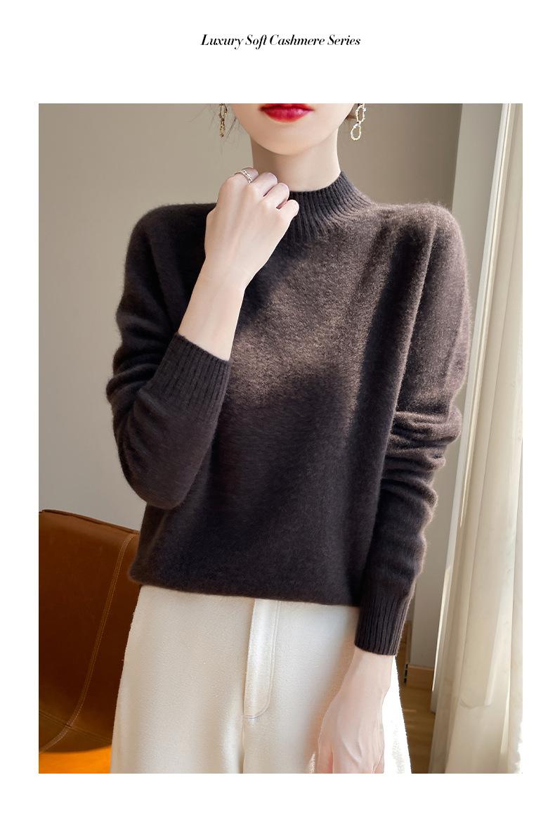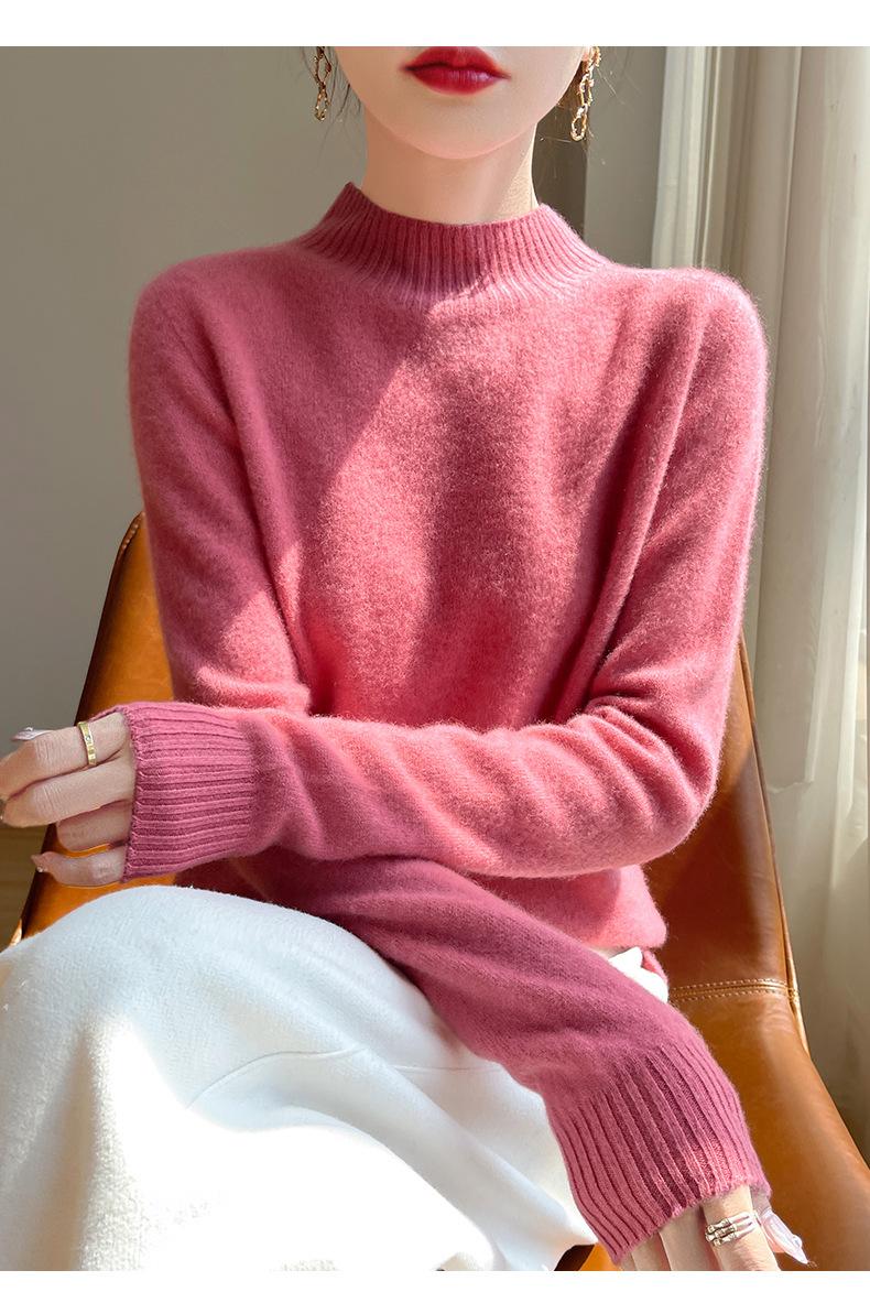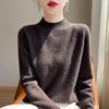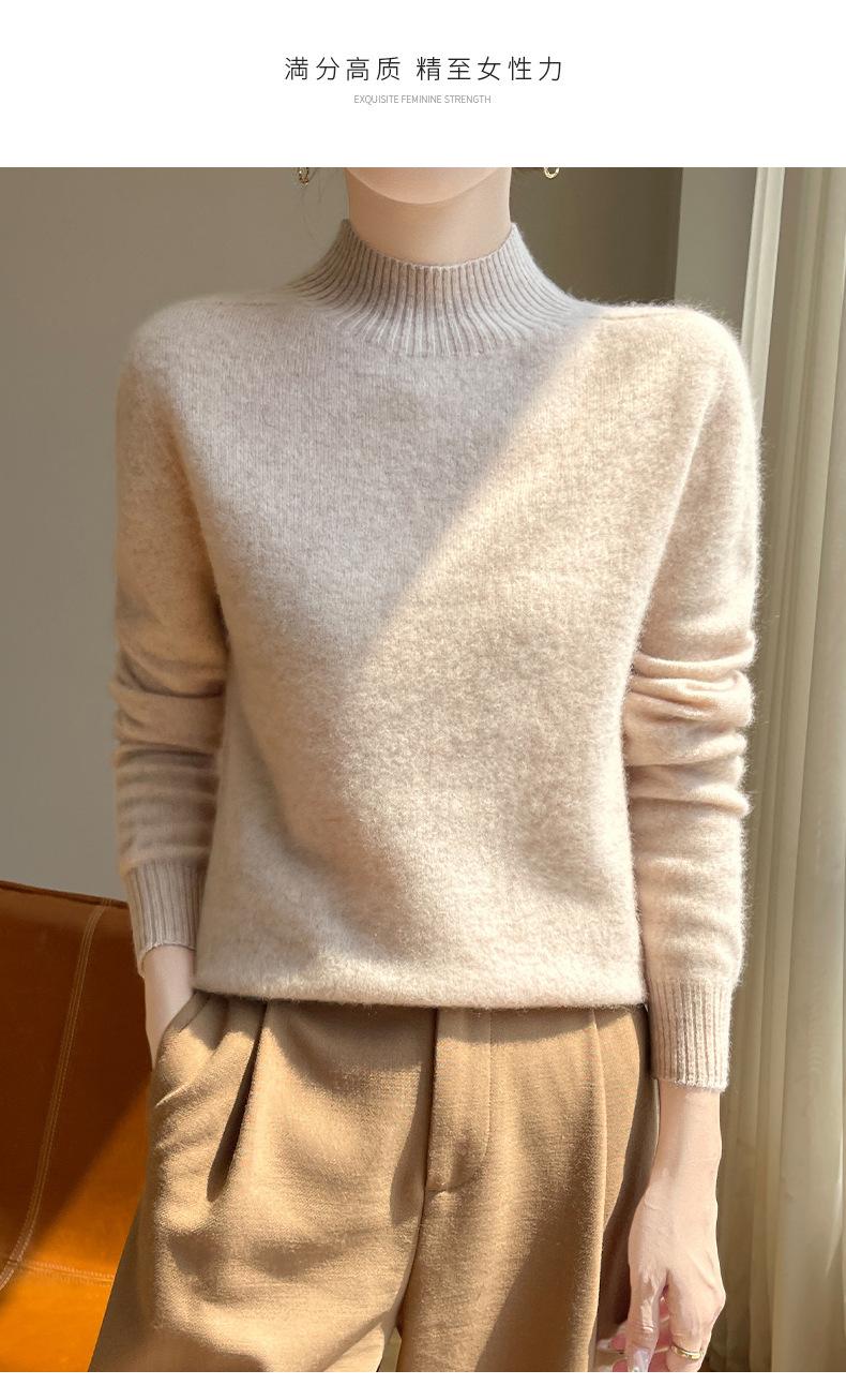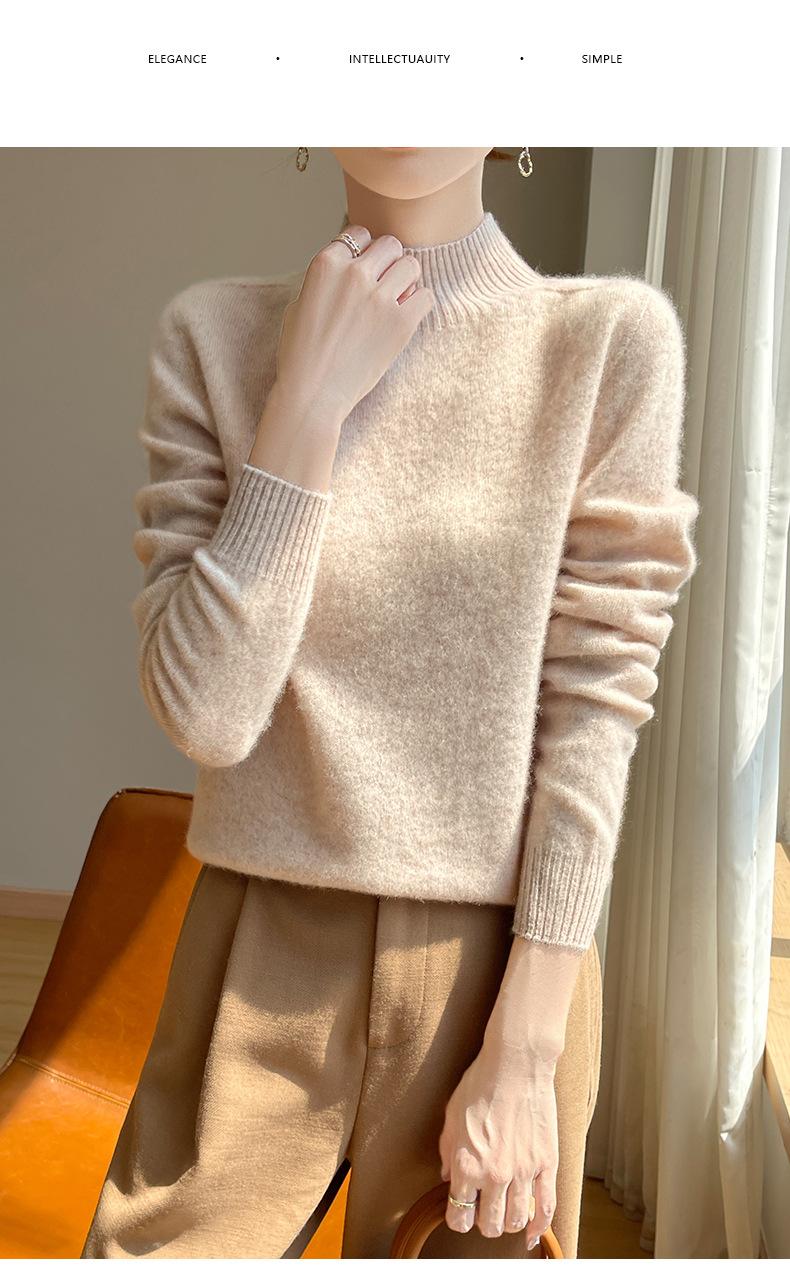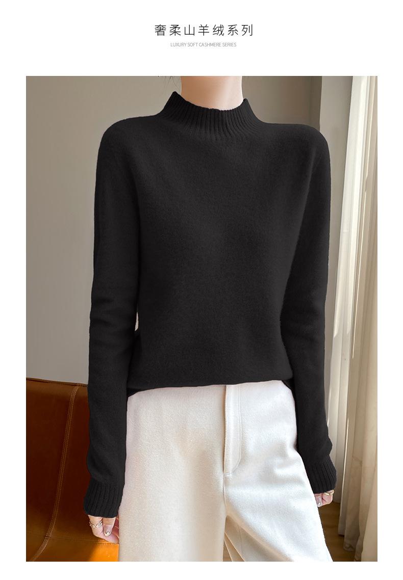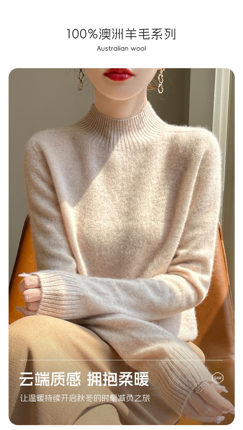 Ropa de primera línea de otoño e invierno, suéter 100% de lana pura, suéter de mujer de cuello medio alto, suéter de manga larga, suéter suelto, abrigo base de cachemira