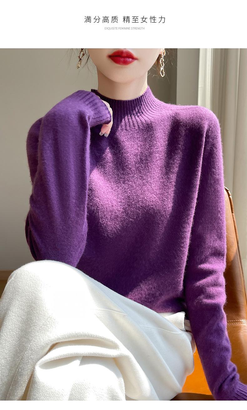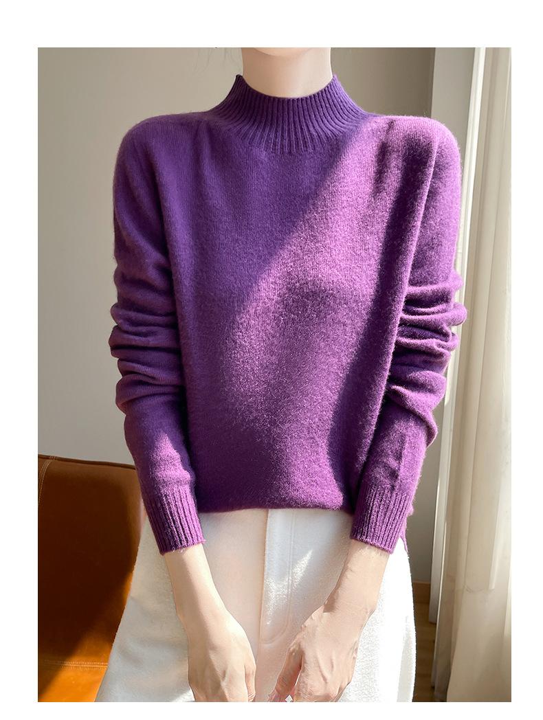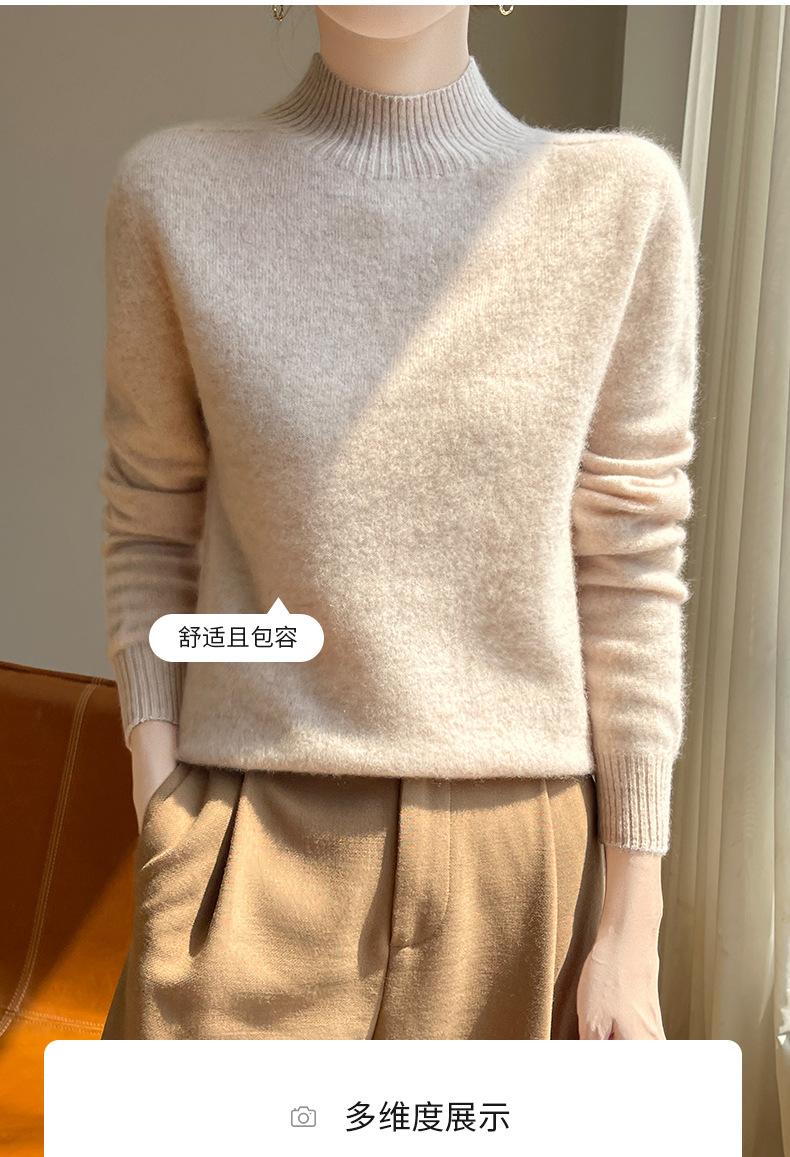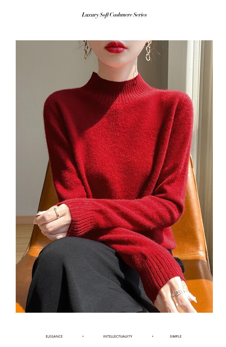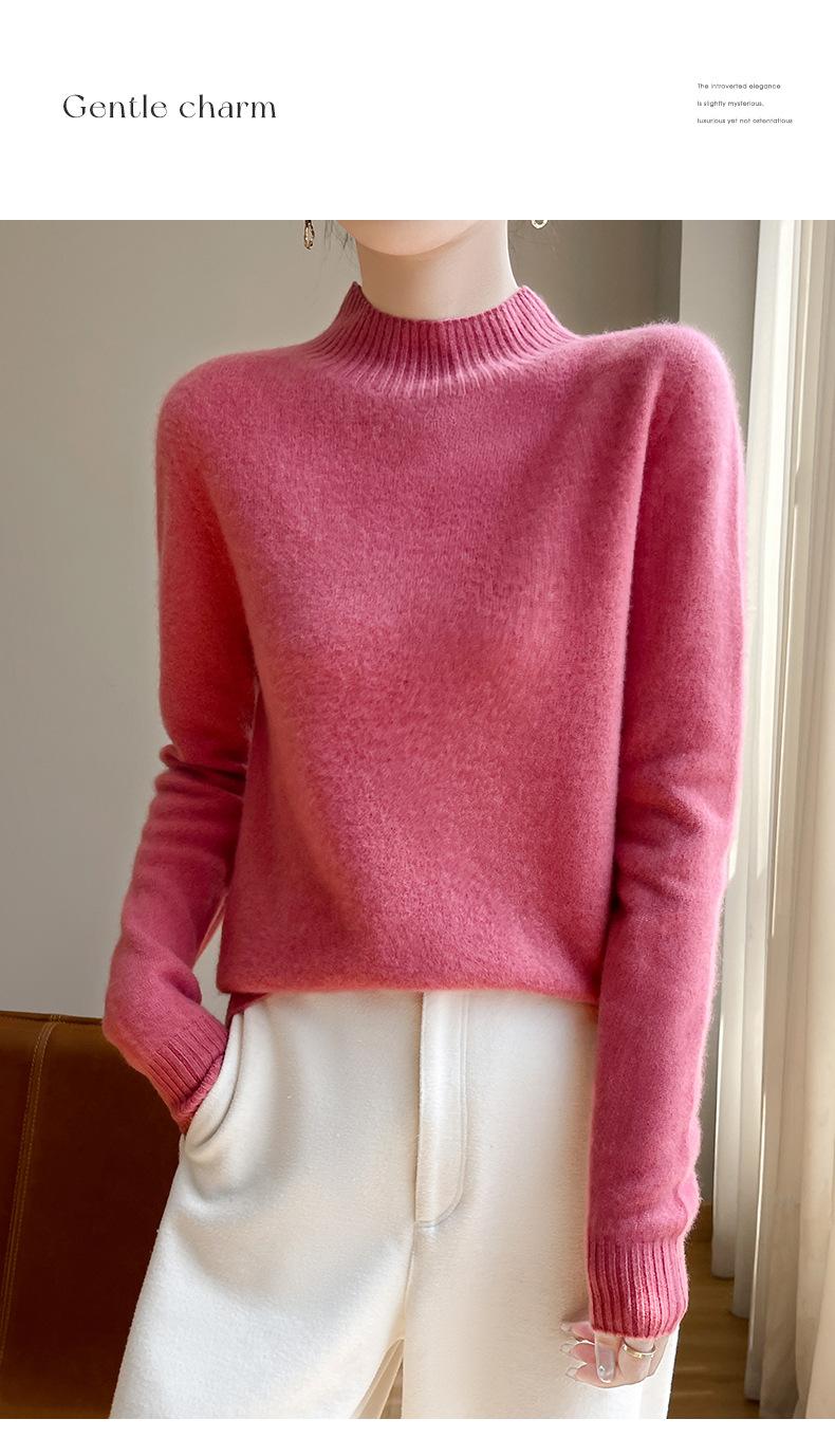 Ropa de primera línea de otoño e invierno, suéter 100% de lana pura, suéter de mujer de cuello medio alto, suéter de manga larga, suéter suelto, abrigo base de cachemira