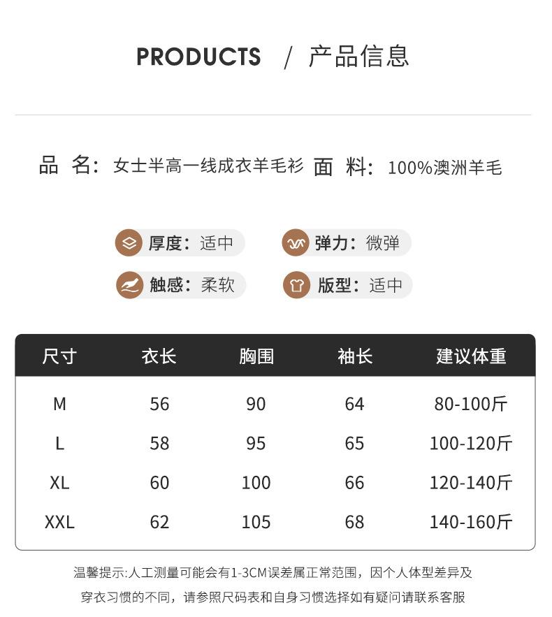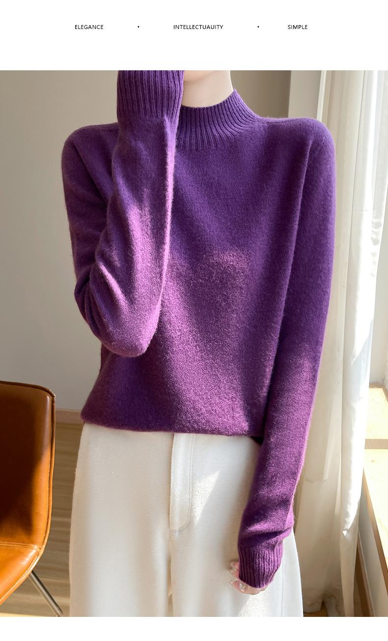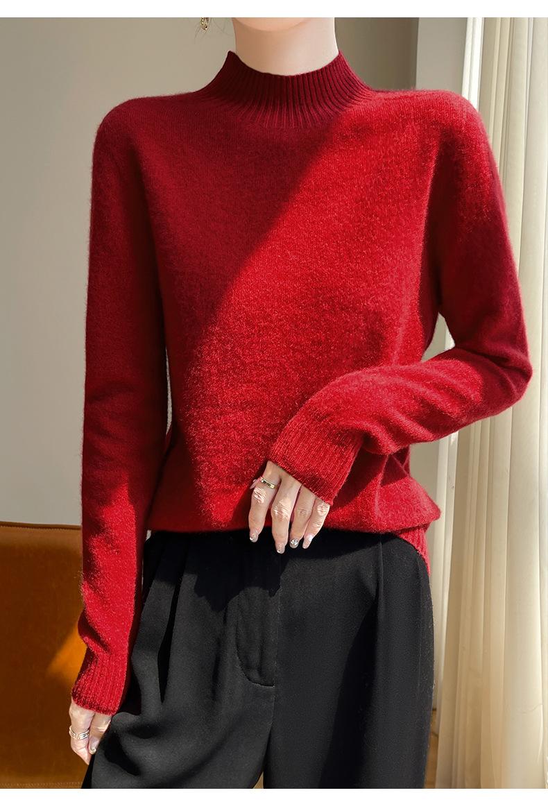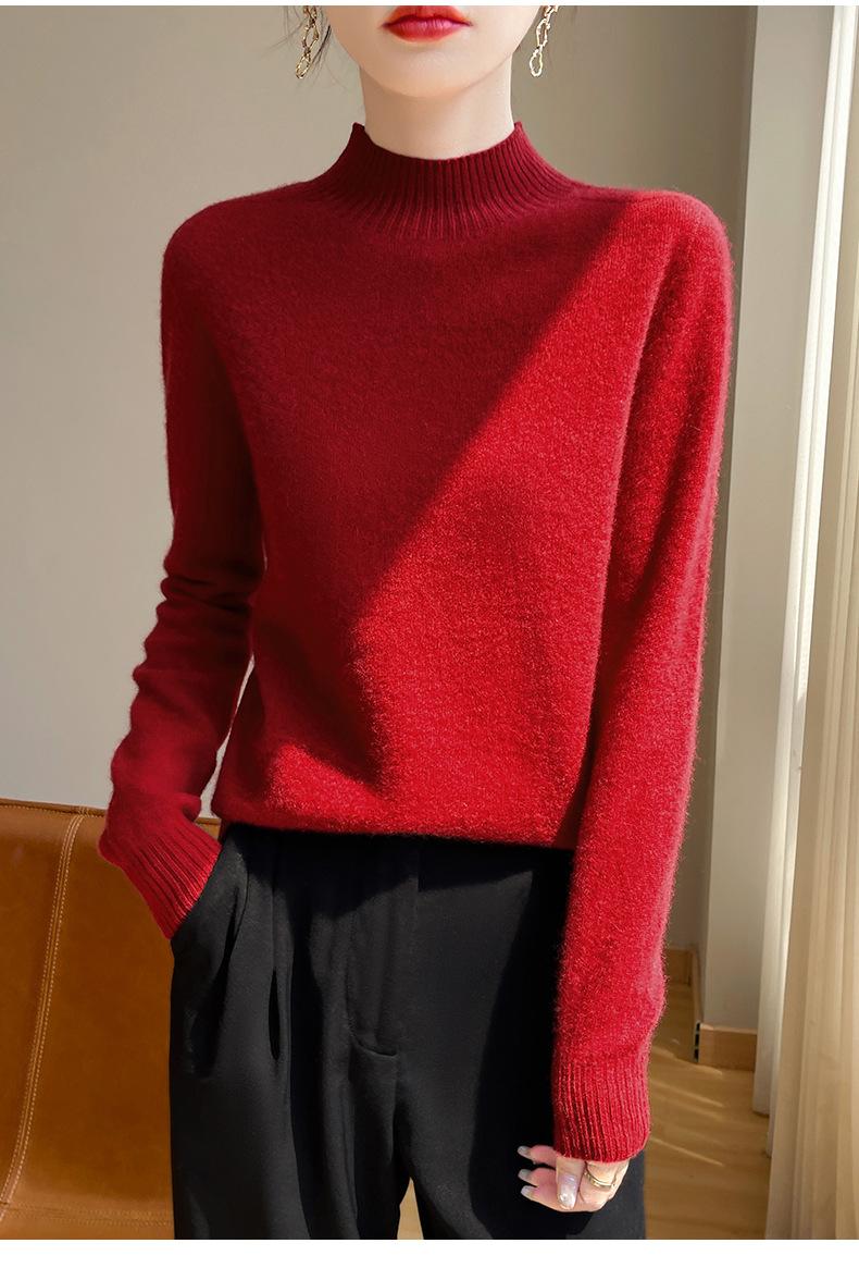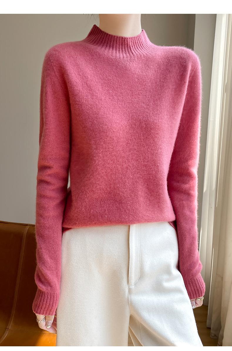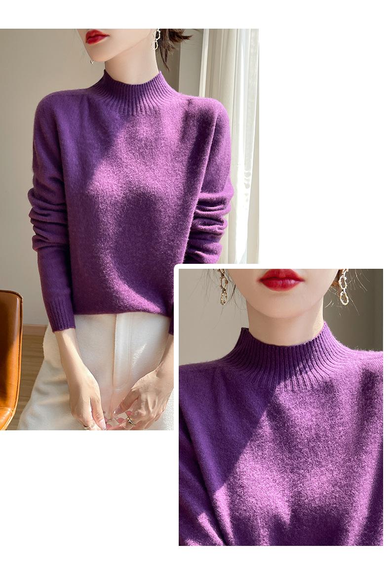 Ropa de primera línea de otoño e invierno, suéter 100% de lana pura, suéter de mujer de cuello medio alto, suéter de manga larga, suéter suelto, abrigo base de cachemira