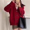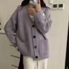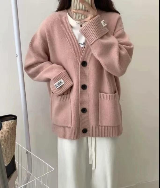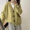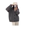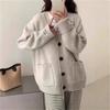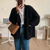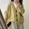 Chaqueta de punto holgada de estilo coreano para mujer, suéter tipo cárdigan suave y encerado con cuello en V de alta calidad y mangas rizadas, para otoño e invierno.