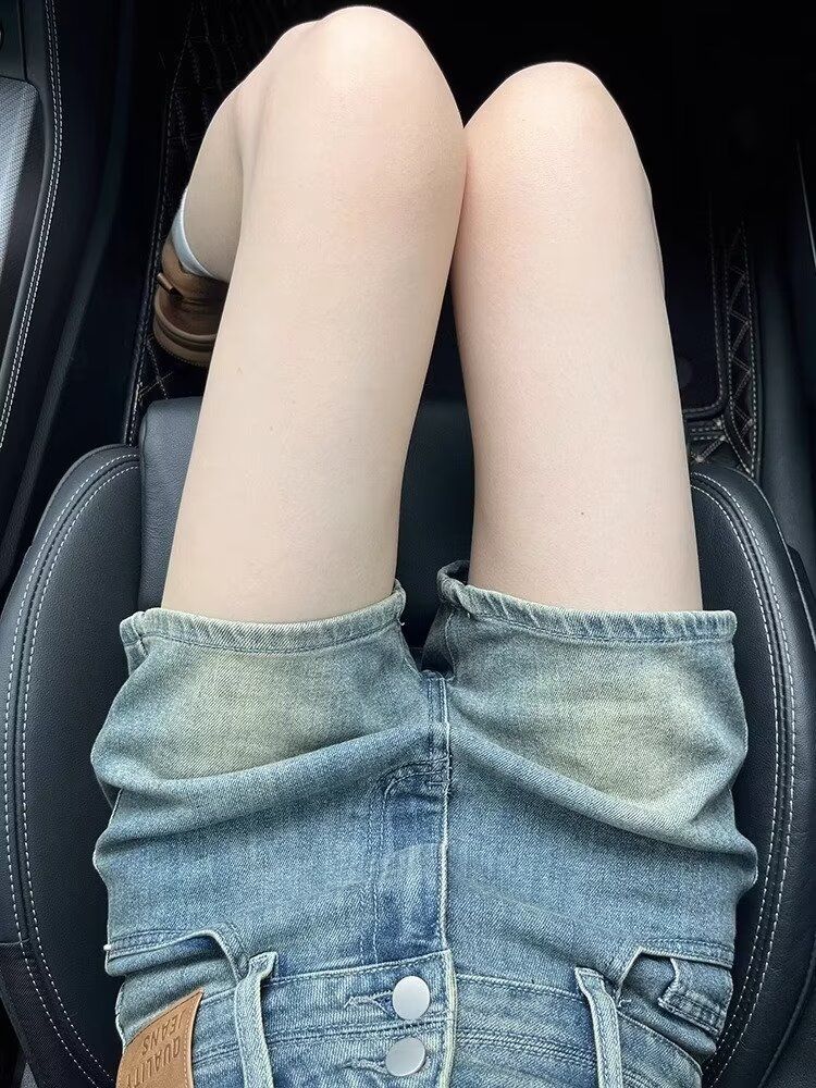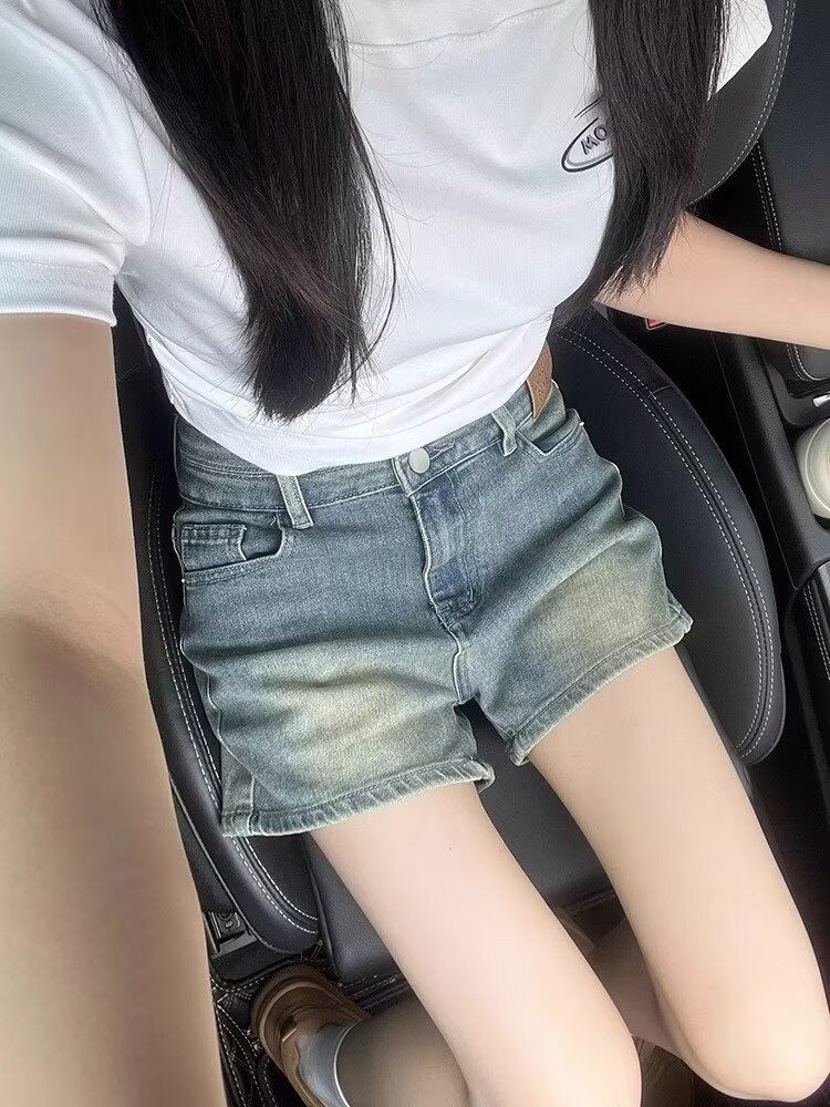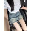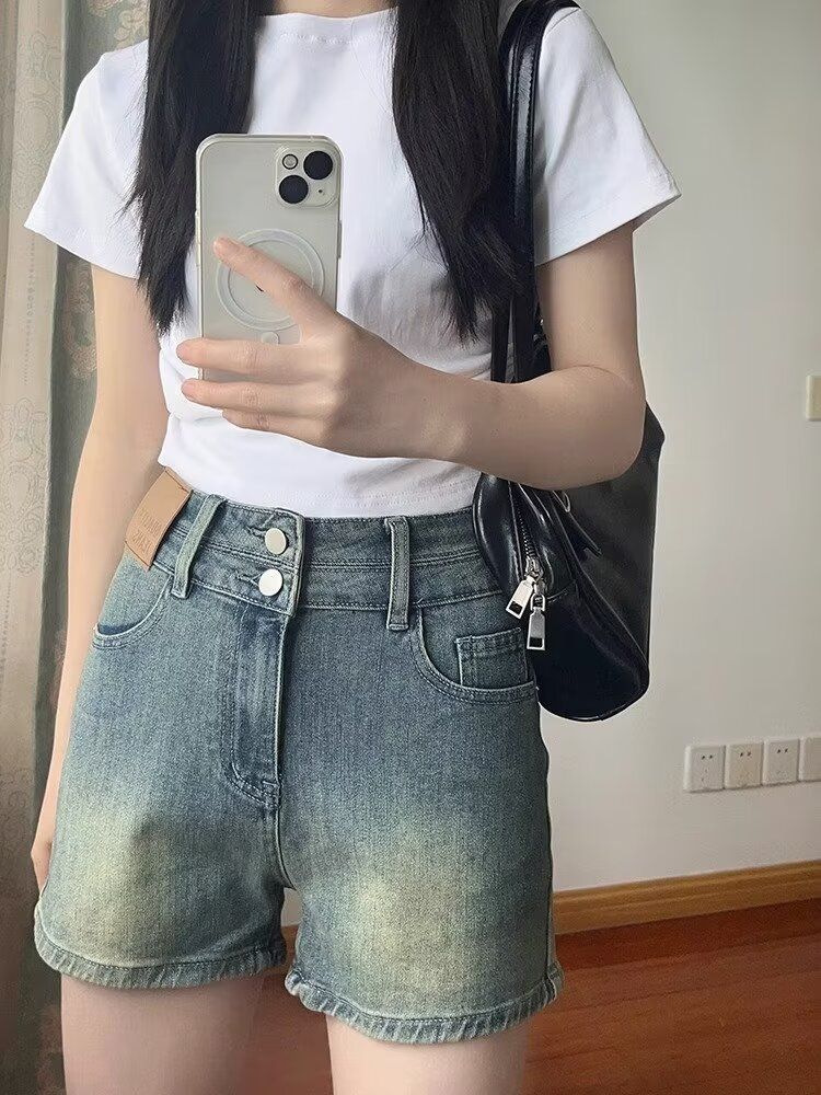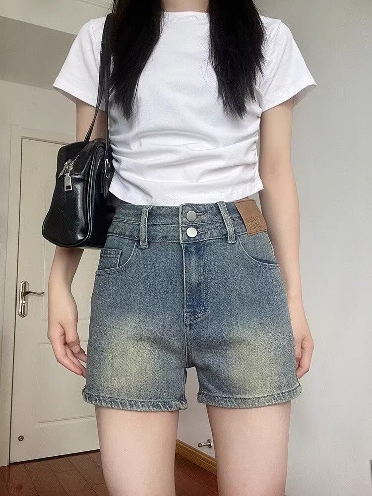 Pantalones cortos vaqueros de cintura alta para mujer, novedad de verano 2024, estilo americano, retro, ajustados, adelgazantes, de corte A