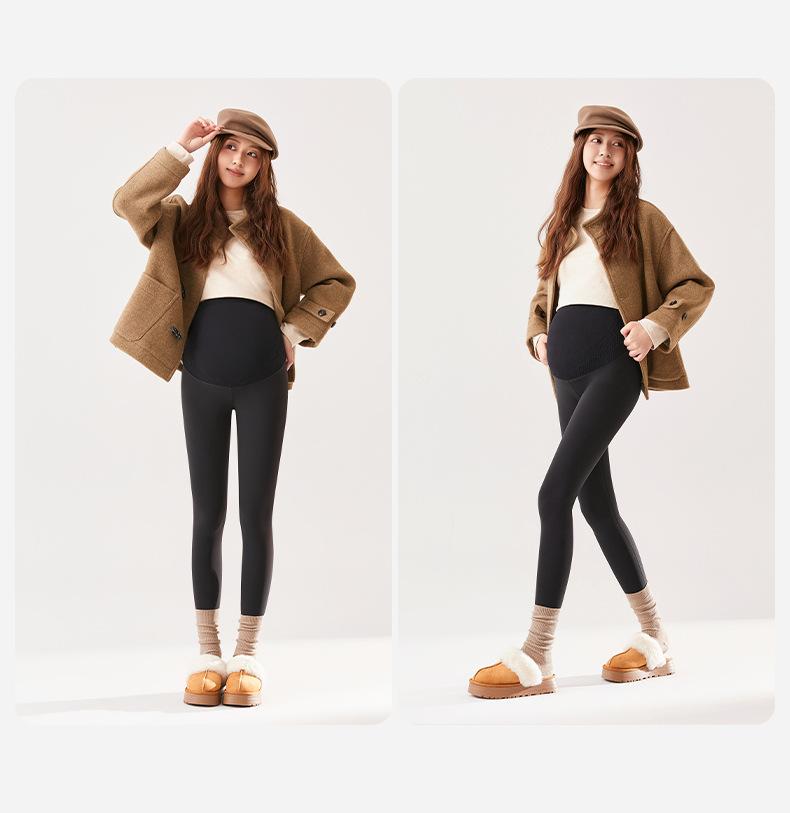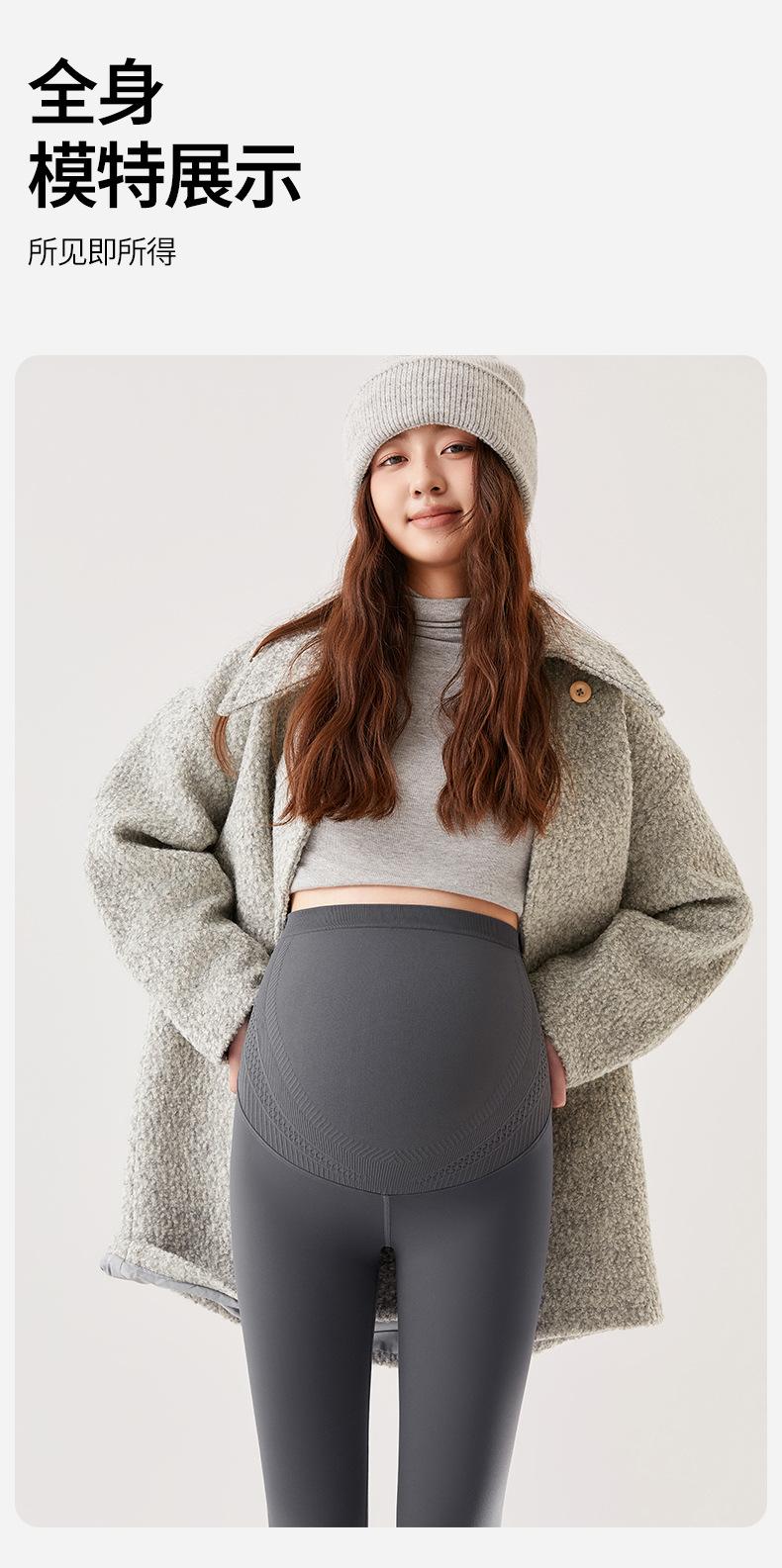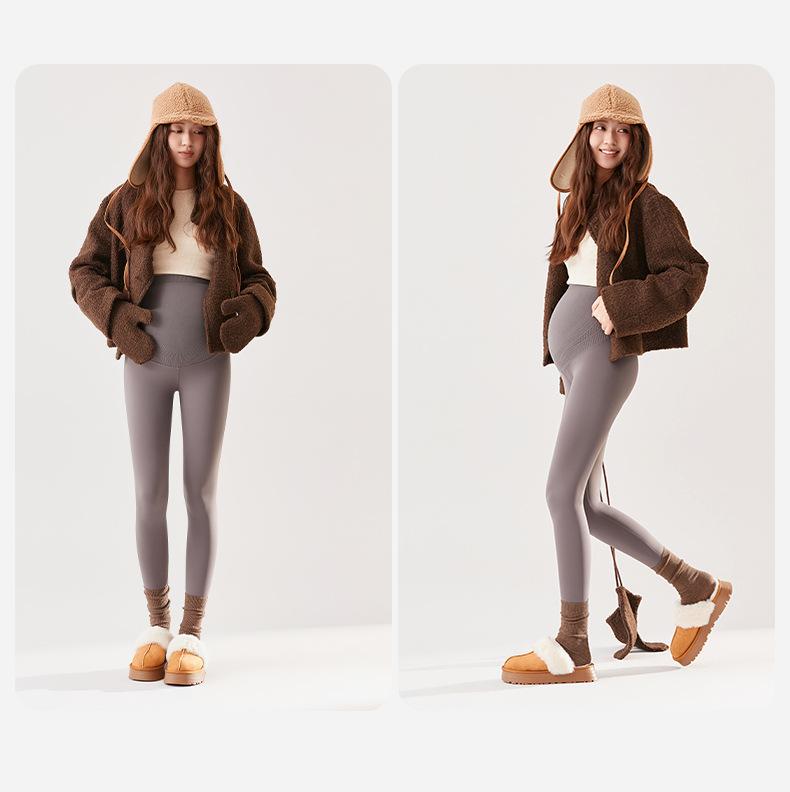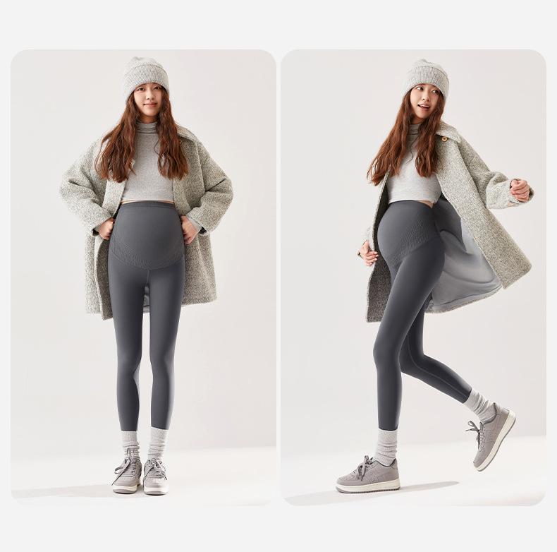 Leggings gruesos y cálidos para embarazadas de otoño e invierno, nuevos pantalones de tiburón con forro polar, pantalones de yoga de talla grande y alta elasticidad.