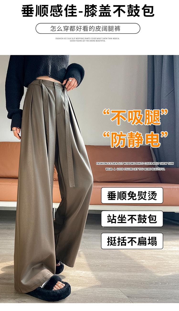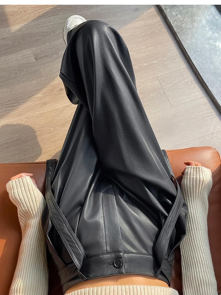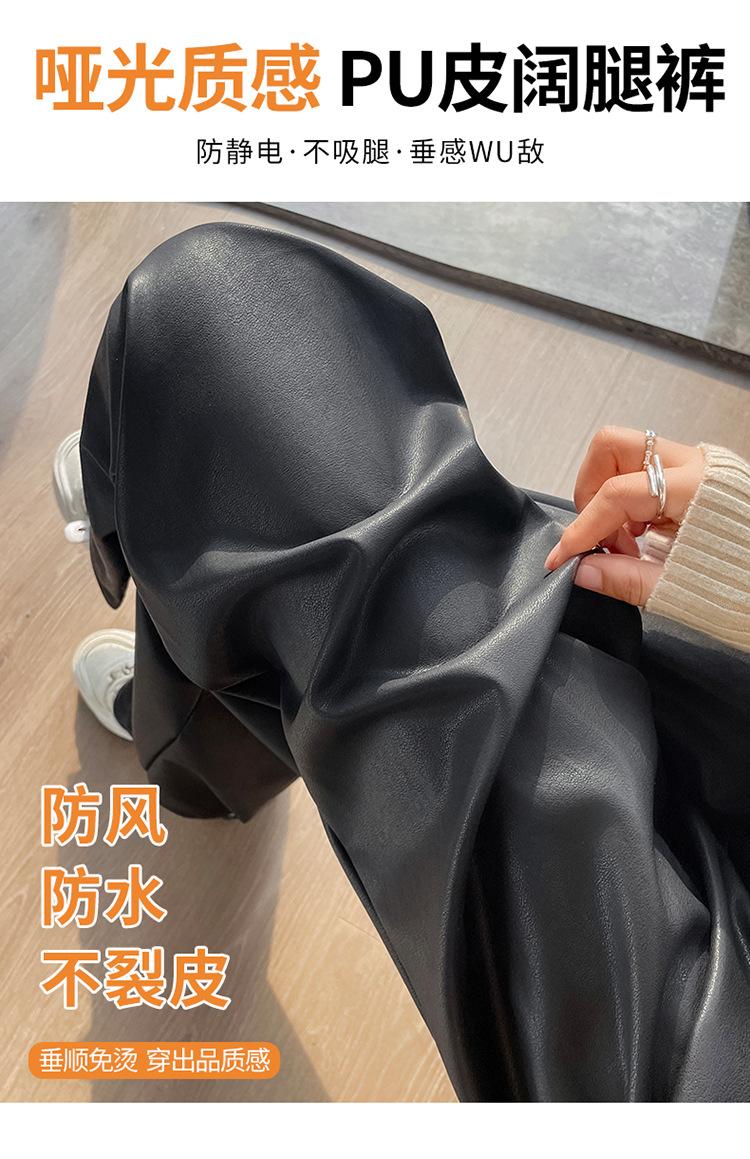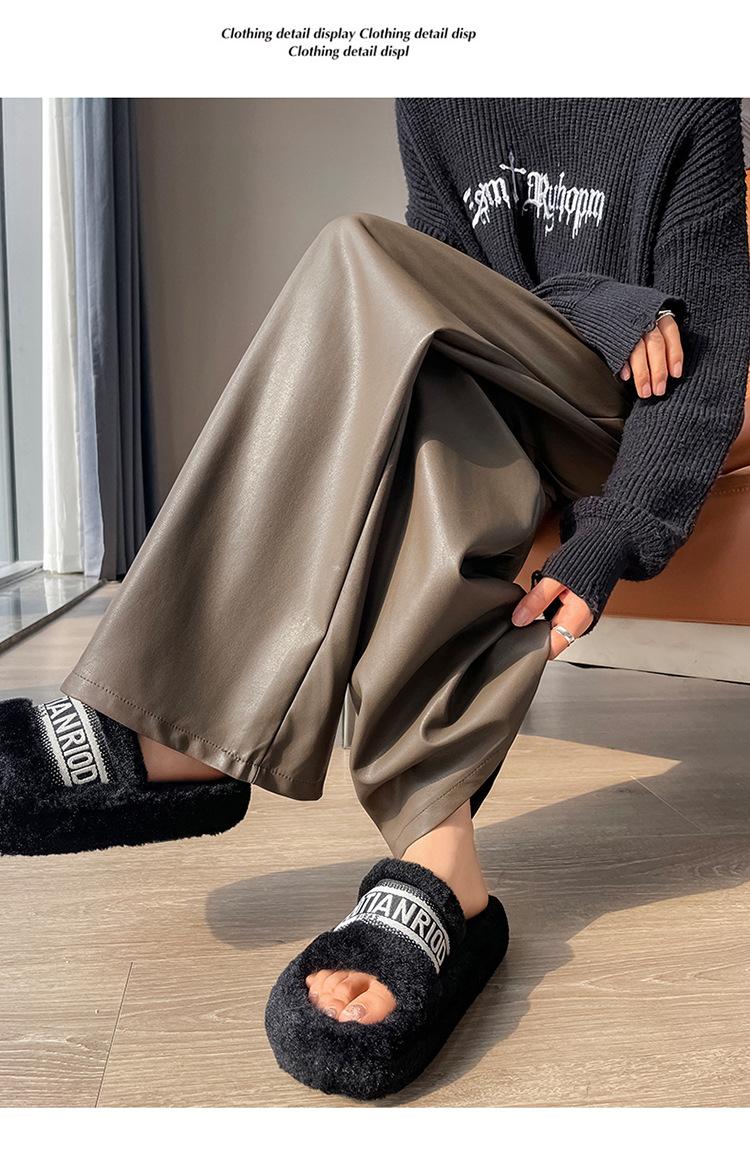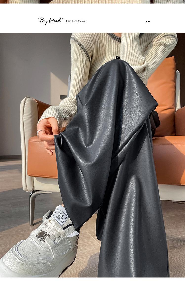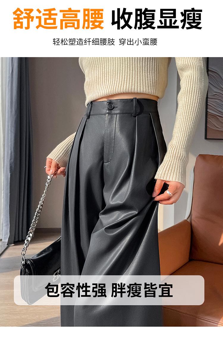 Compra Pantalones de cuero suave populares en Xiaohongshu, clásicos negros para mujer, otoño e invierno 2025, nuevos pantalones de cuero PU adelgazantes de cintura alta y pierna ancha al por mayor en Joom.pro