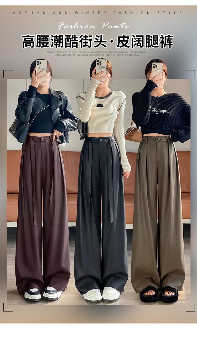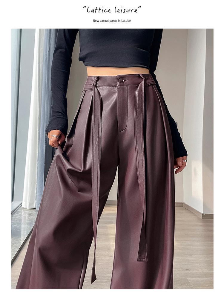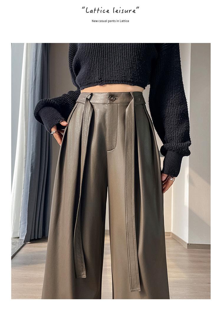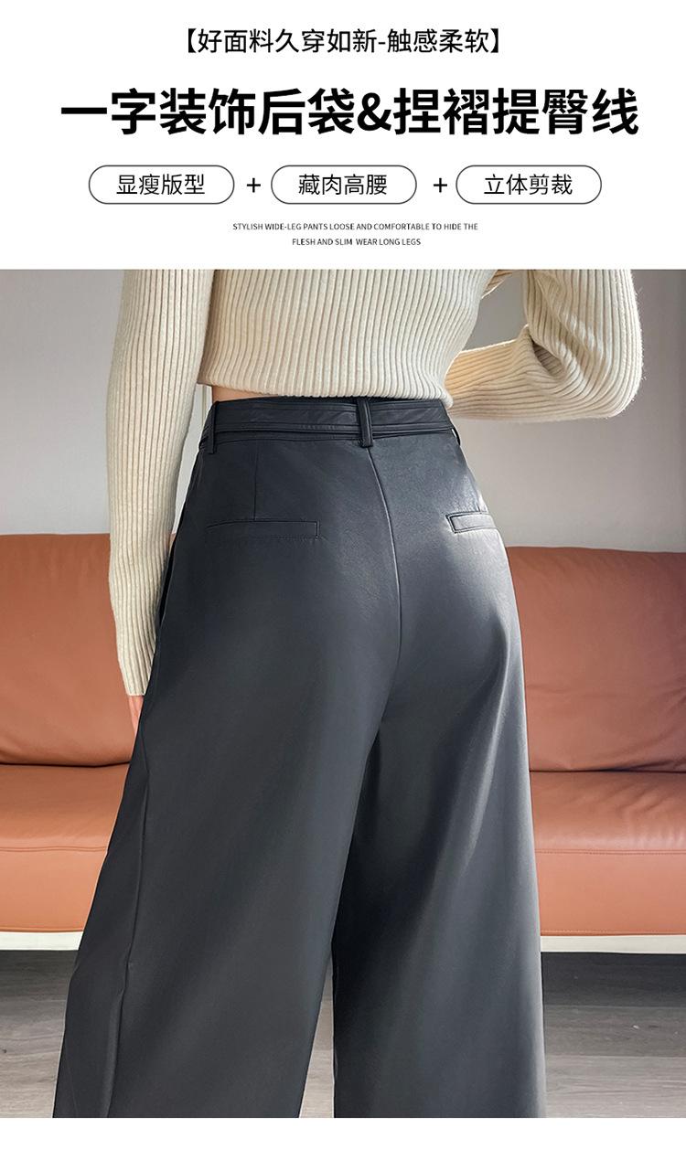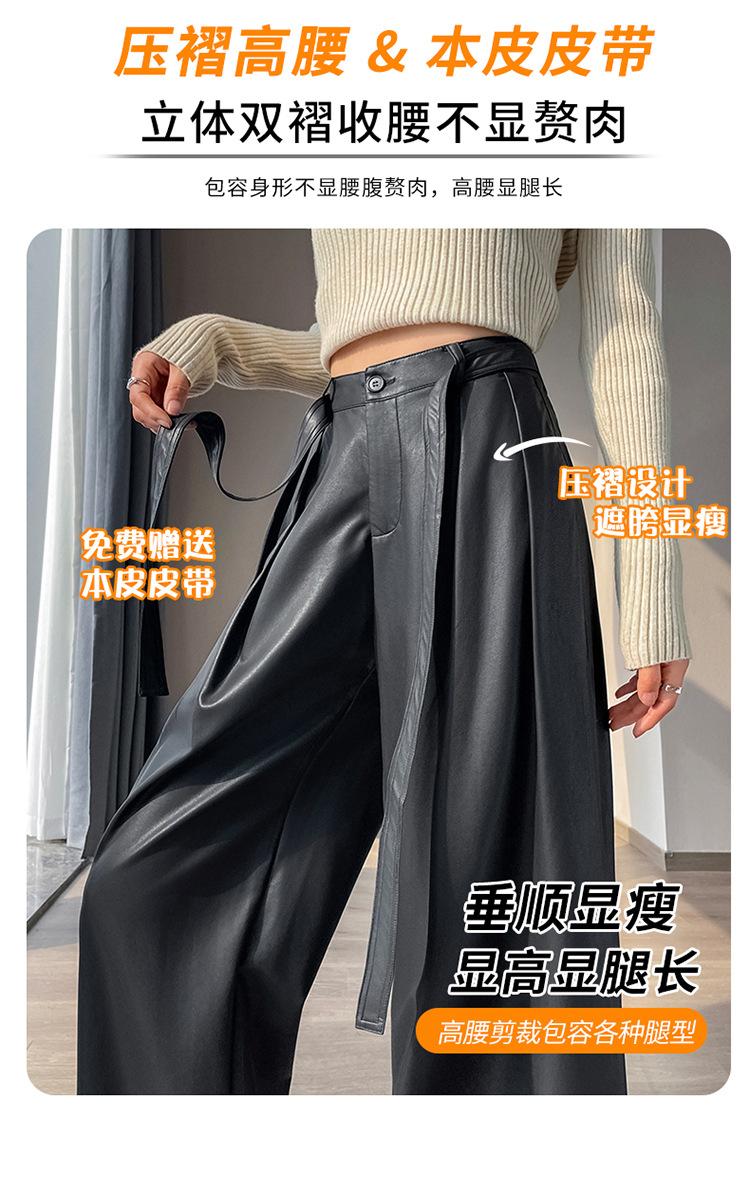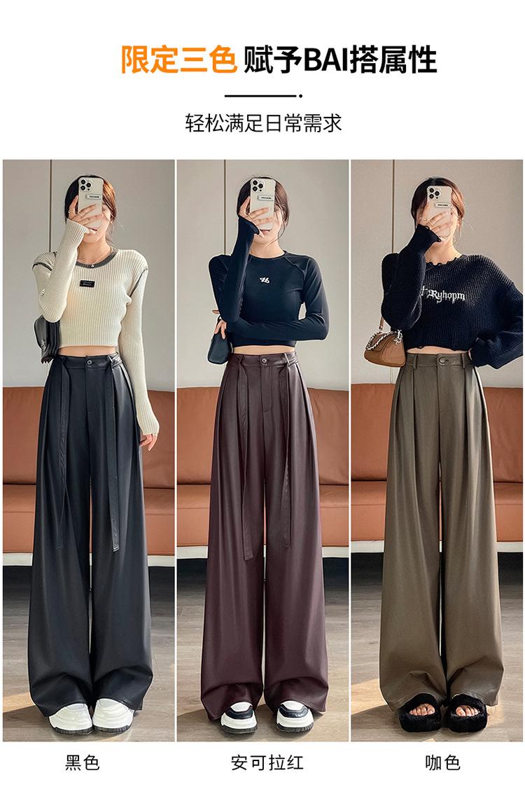 Compra Pantalones de cuero suave populares en Xiaohongshu, clásicos negros para mujer, otoño e invierno 2025, nuevos pantalones de cuero PU adelgazantes de cintura alta y pierna ancha al por mayor en Joom.pro