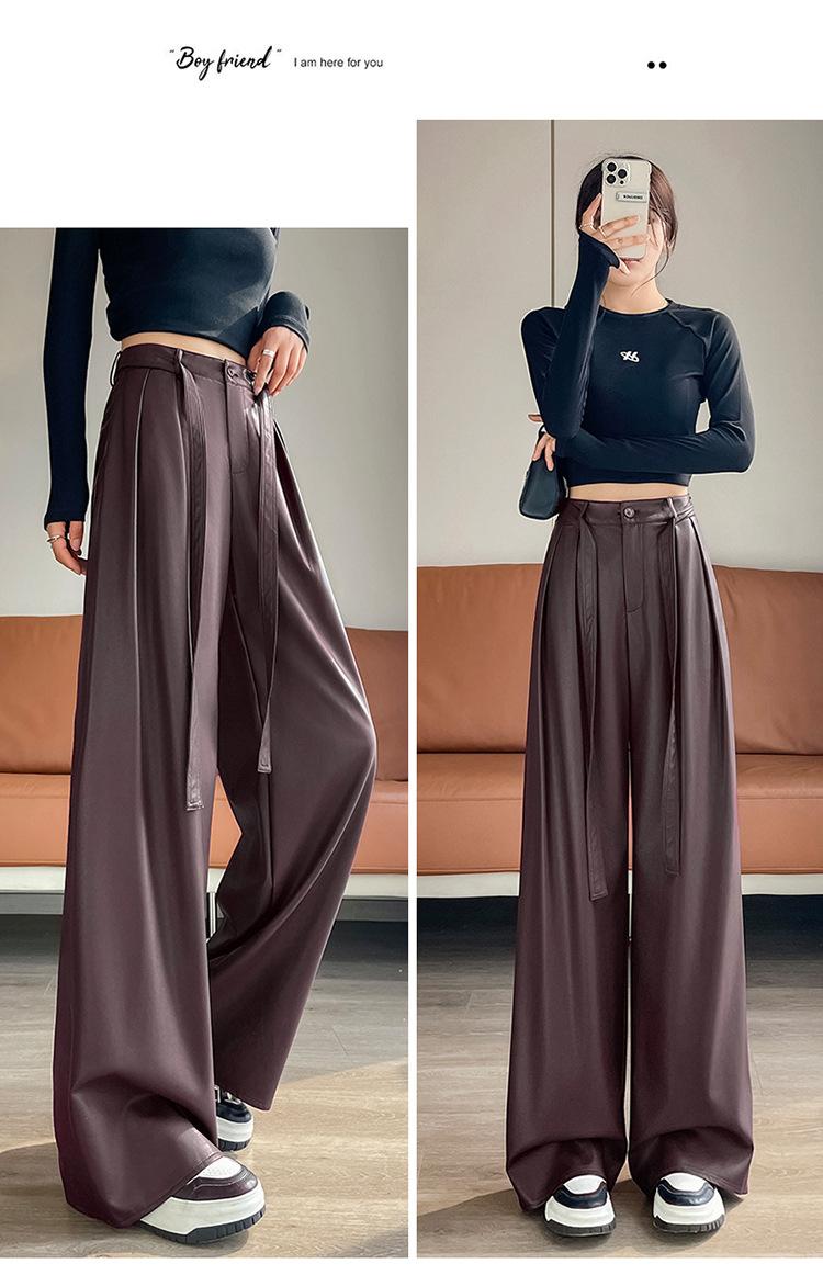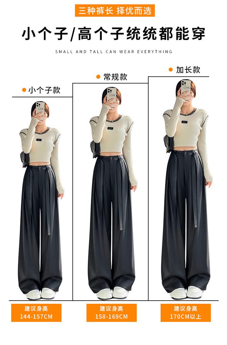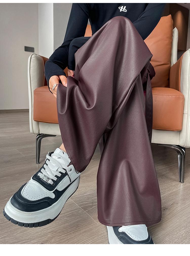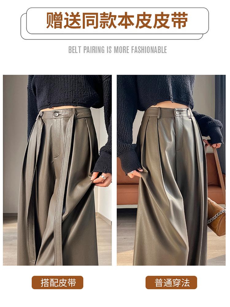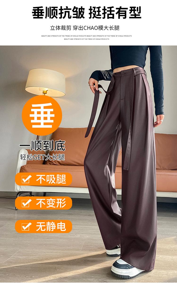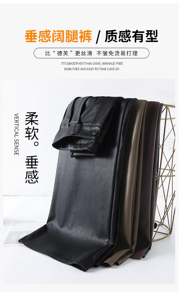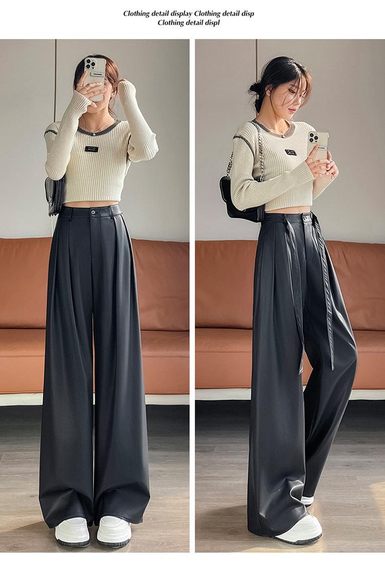 Compra Pantalones de cuero suave populares en Xiaohongshu, clásicos negros para mujer, otoño e invierno 2025, nuevos pantalones de cuero PU adelgazantes de cintura alta y pierna ancha al por mayor en Joom.pro