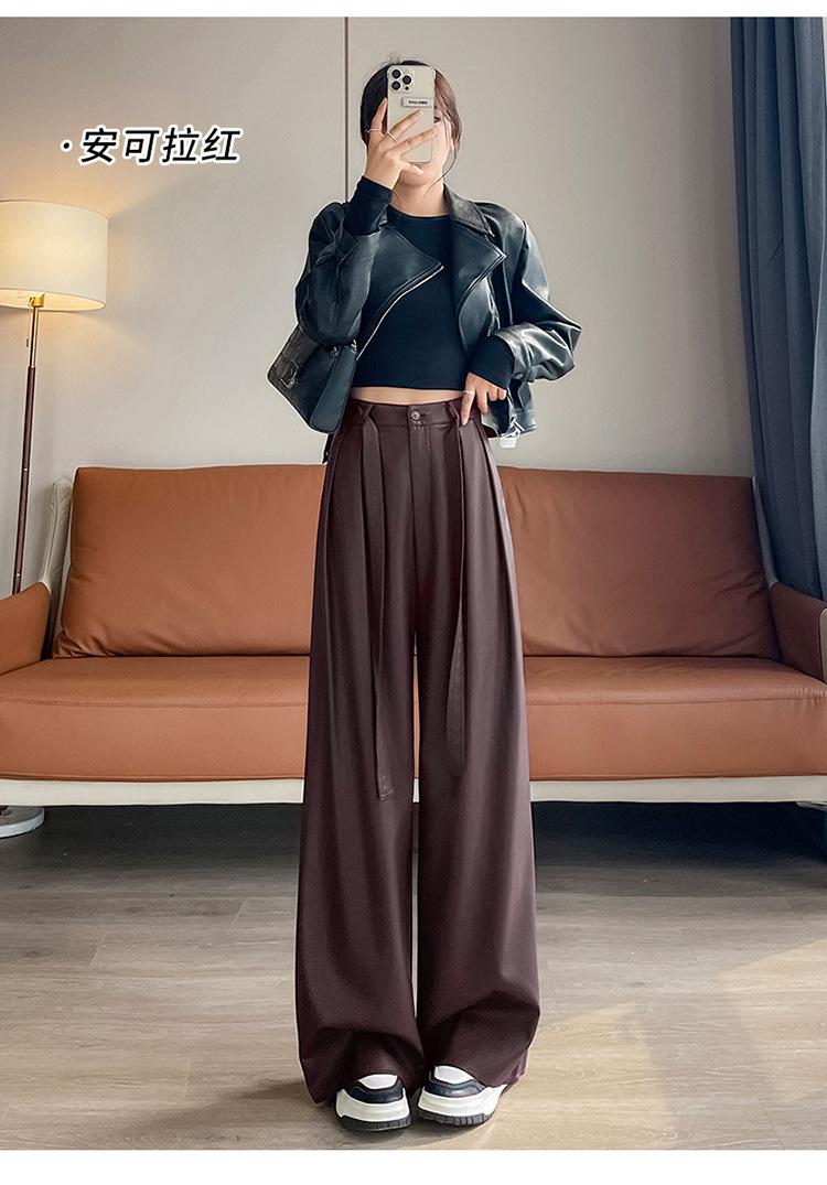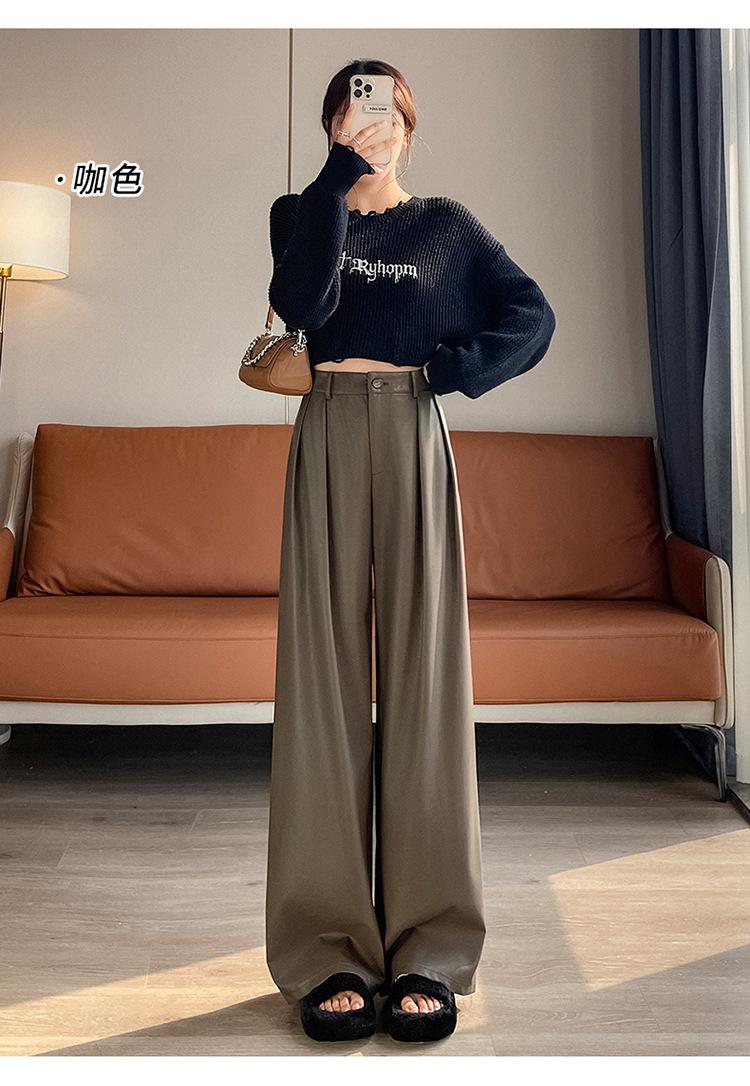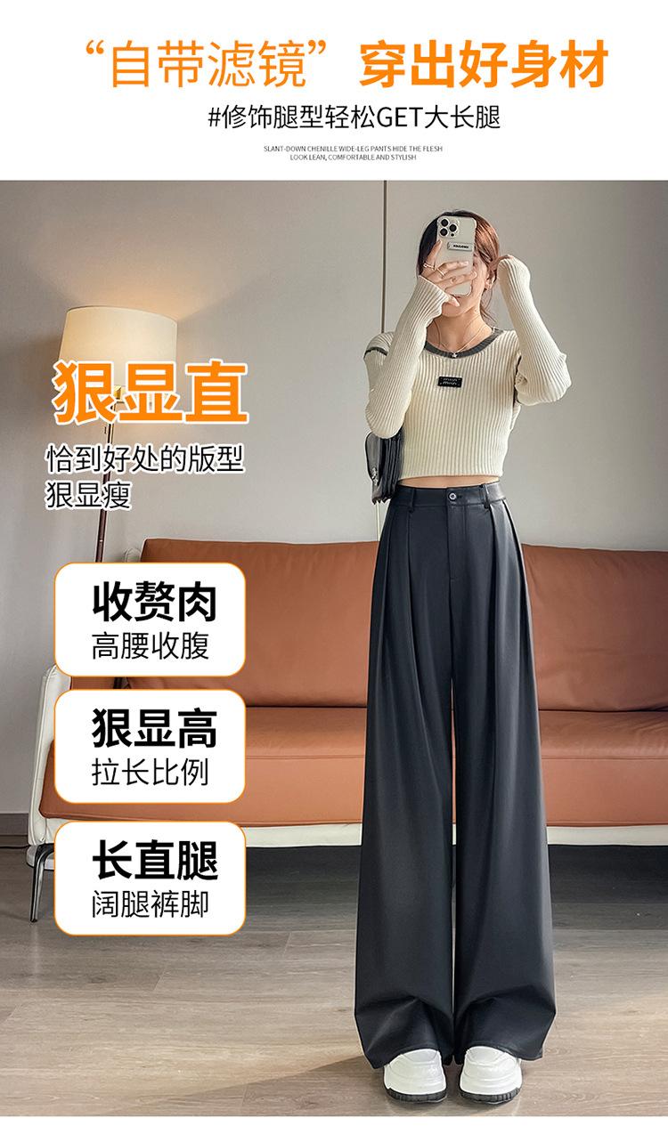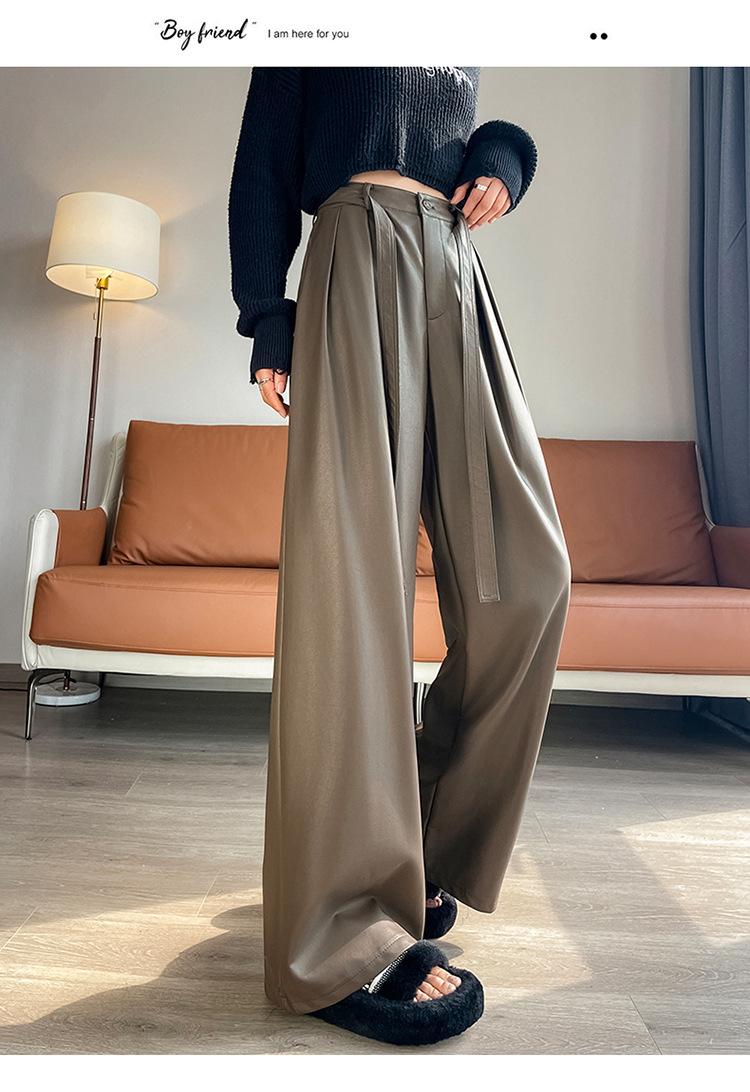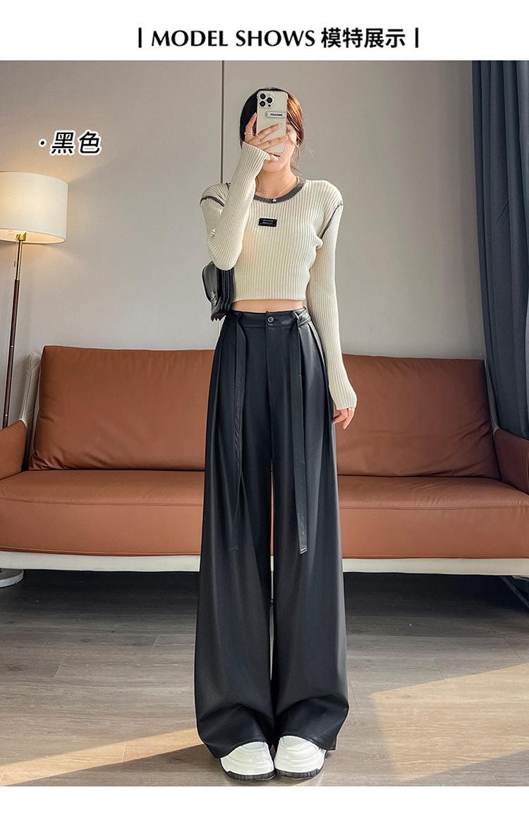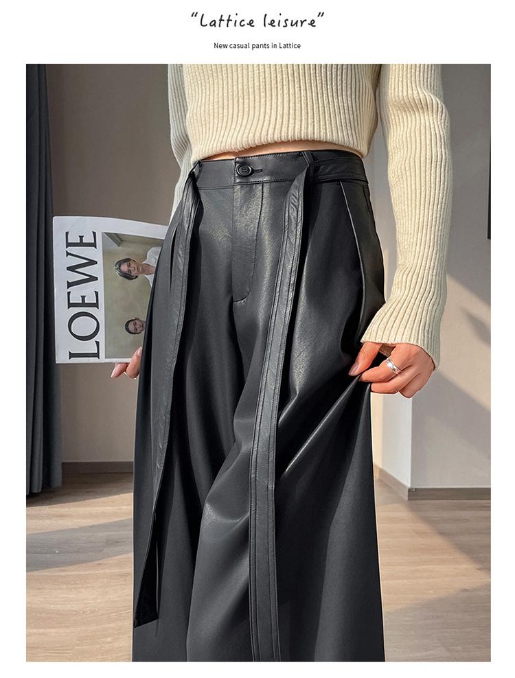 Compra Pantalones de cuero suave populares en Xiaohongshu, clásicos negros para mujer, otoño e invierno 2025, nuevos pantalones de cuero PU adelgazantes de cintura alta y pierna ancha al por mayor en Joom.pro