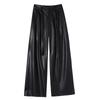 Pantalones de cuero suave populares en Xiaohongshu, clásicos negros para mujer, otoño e invierno 2025, nuevos pantalones de cuero PU adelgazantes de cintura alta y pierna ancha