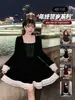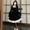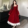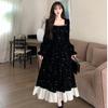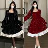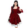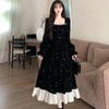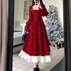 Vestido de noche de talla grande para la reunión anual de Navidad, vestido de terciopelo de manga larga, vestido de tutú de longitud media para mujer de otoño e invierno con gorditas